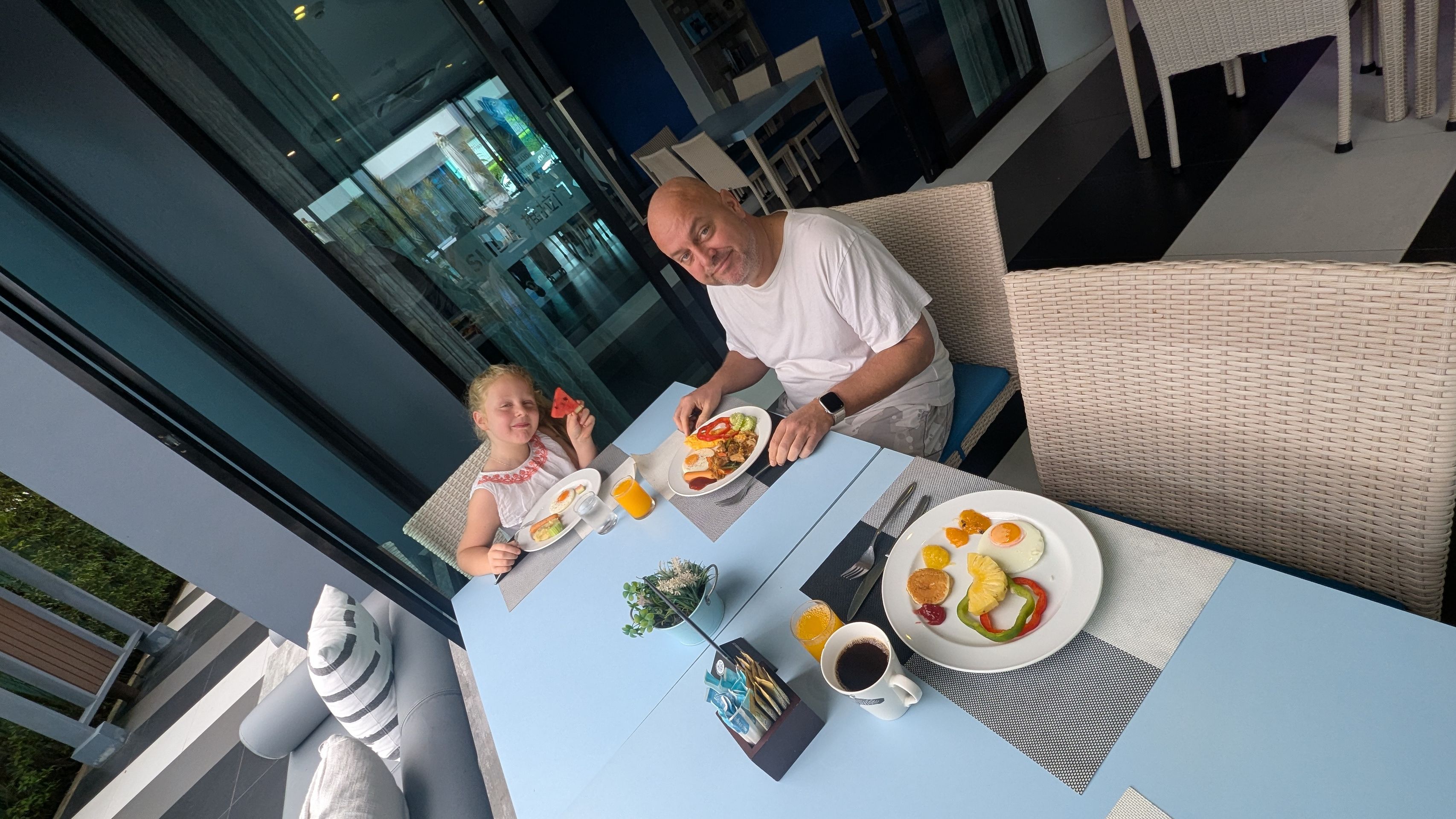 Woke up at 6:40 like a typical work morning but realized that I am on vacation for 3 months now, so I went back to sleep. Mulle woke us up at half past nine and said that we need to go down to breakfast as it will close soon. Really good breakfast and then a quick change for swimming.