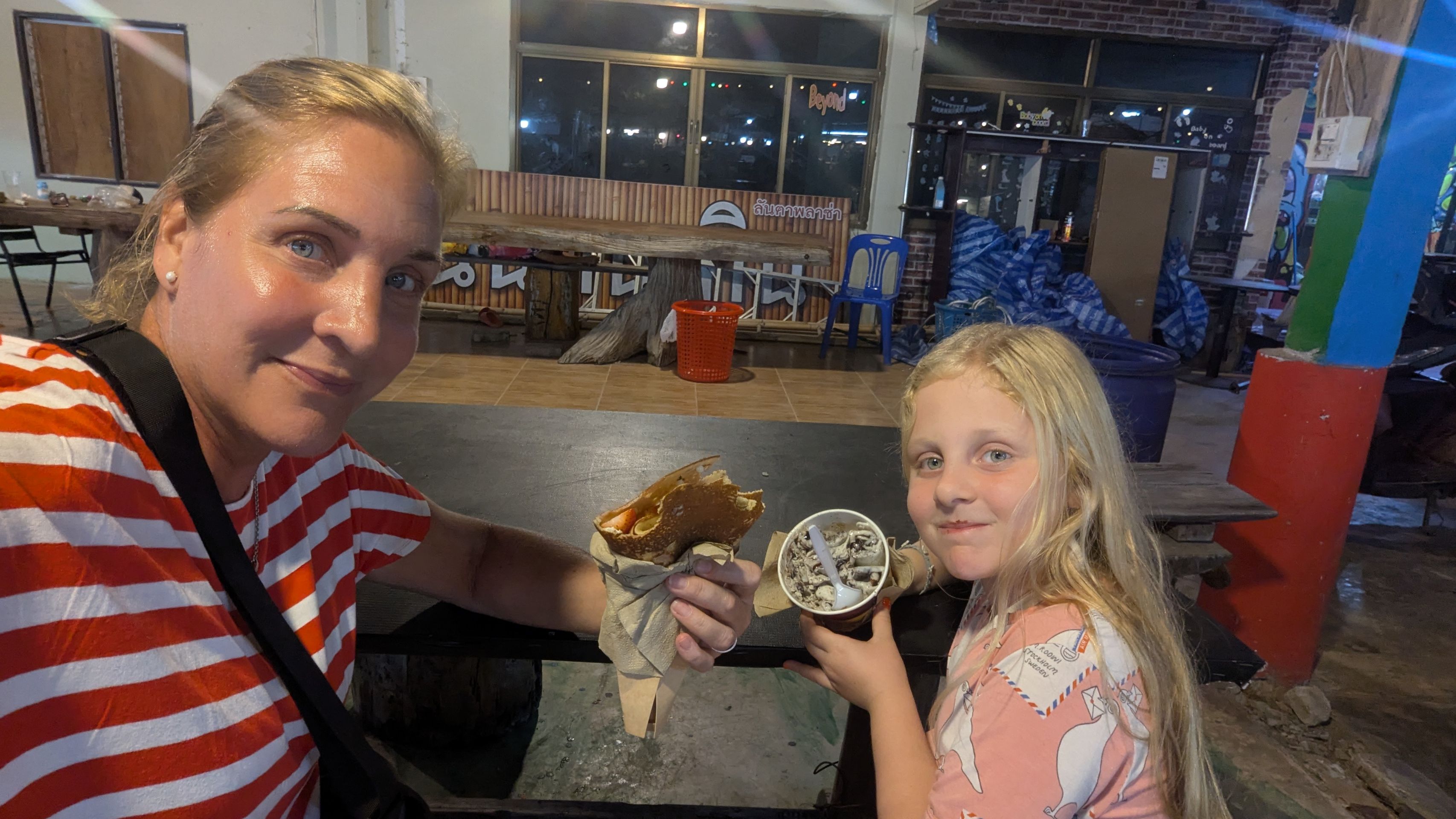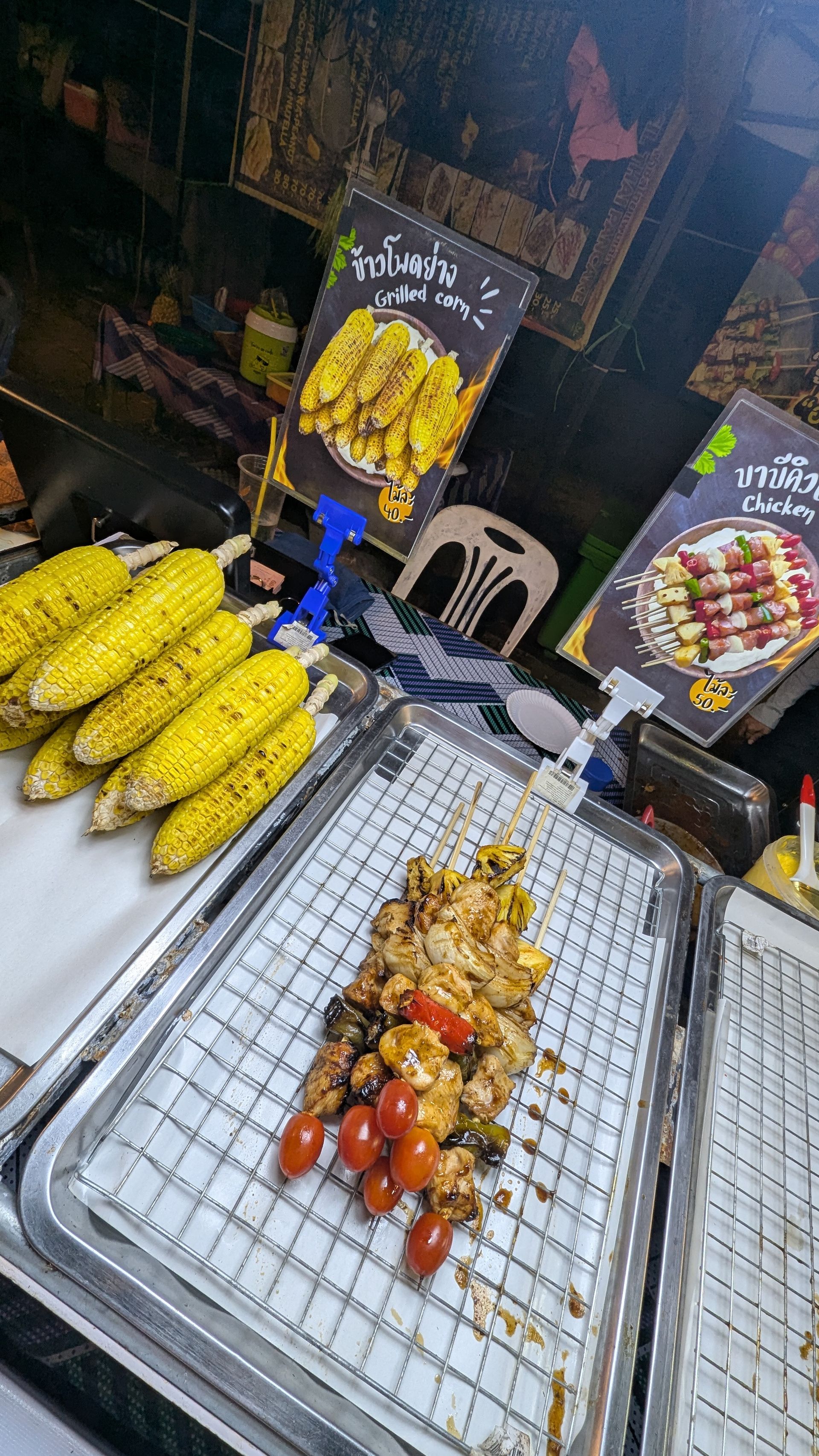 Wir beschlossen, in der Walking Street zu Abend zu essen, und Mulle stieß zufällig auf einen indischen Imbissstand, den er schon lange gesucht hatte, und setzte sich zum Essen hin. Lawa und ich suchten weiter nach etwas zu essen und aßen schließlich Maiskolben und Crêpes.