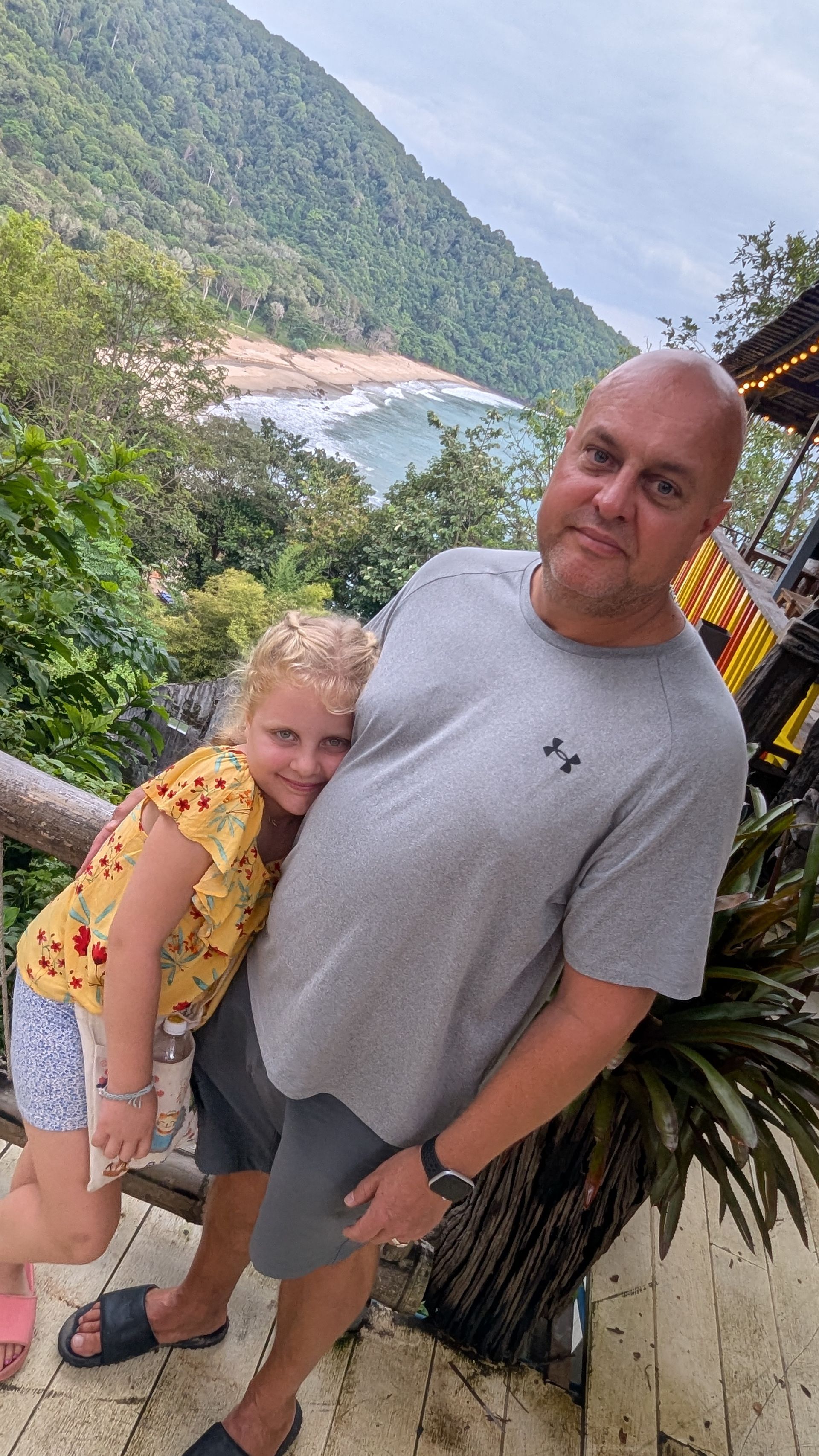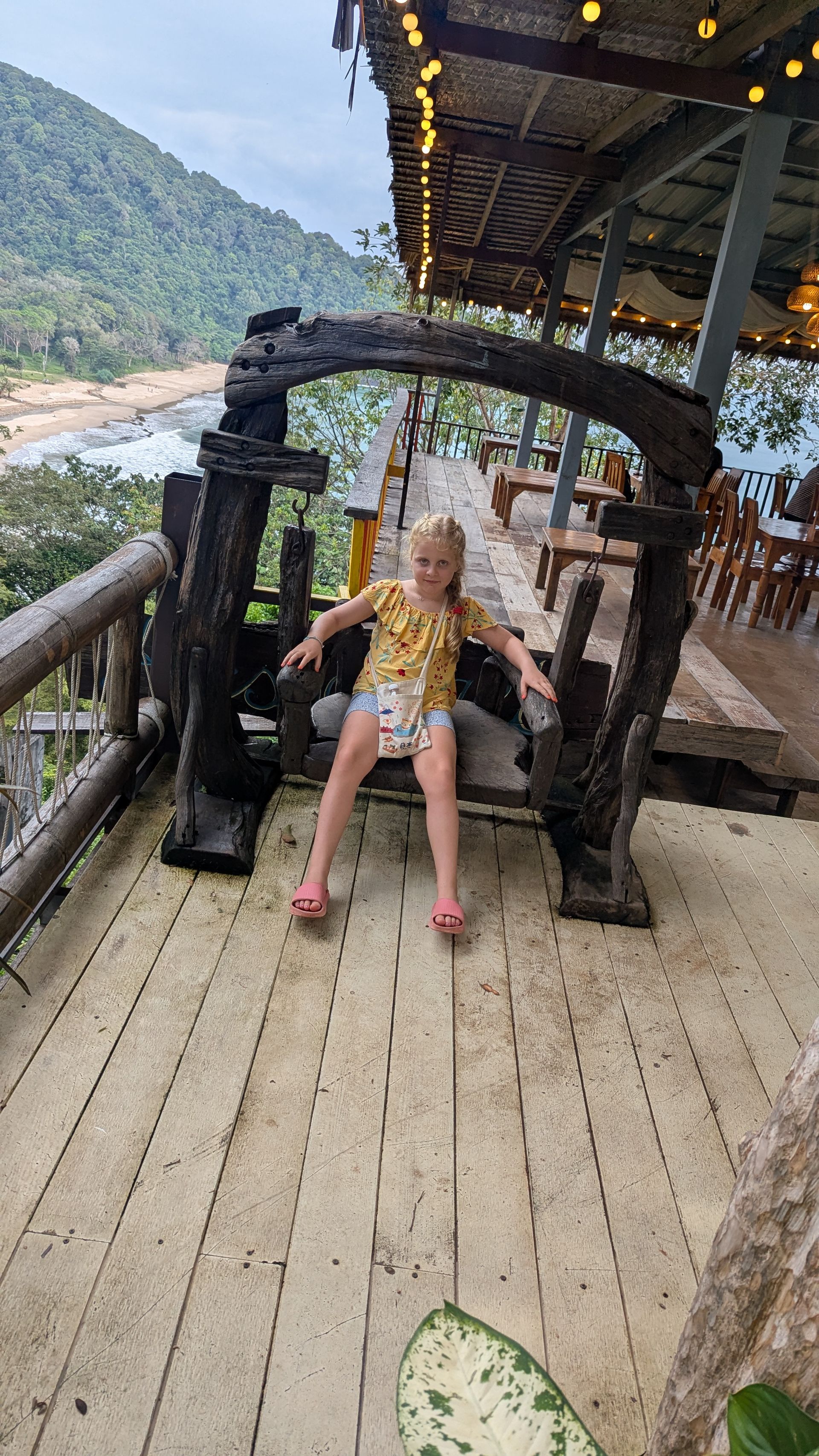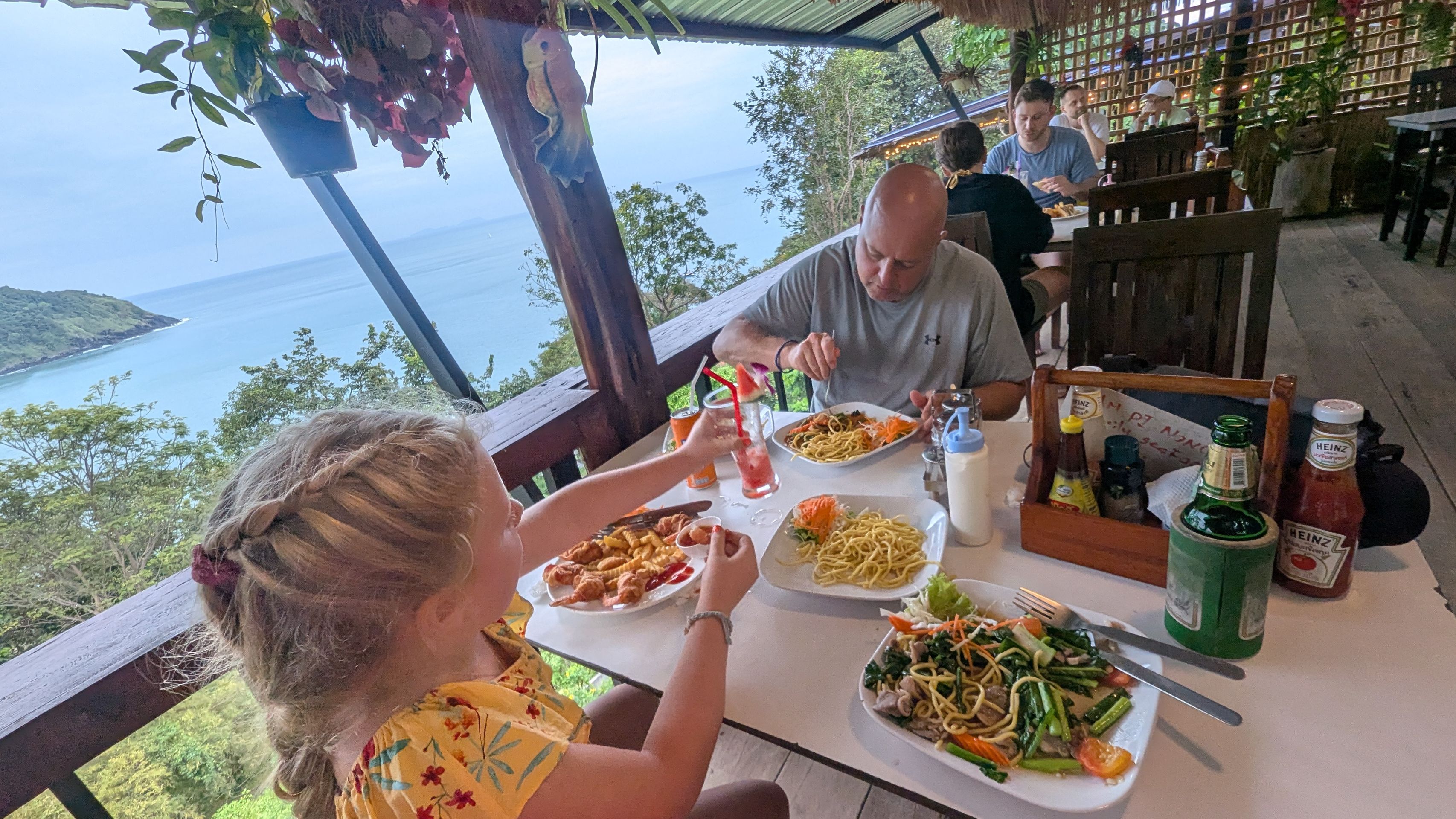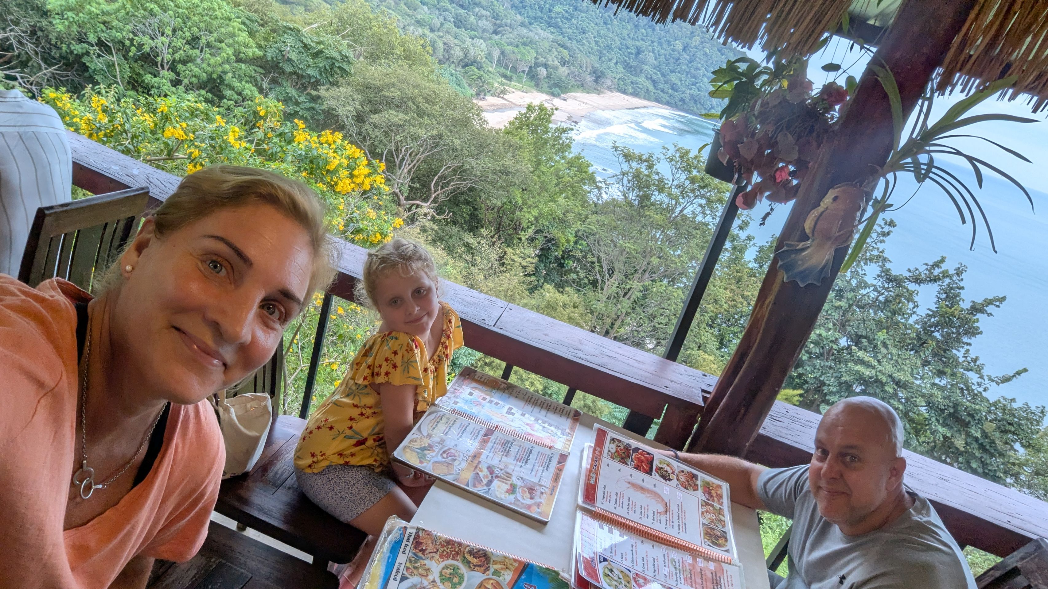 Als Lawa von der Schule nach Hause kam, sprangen wir ins Auto und fuhren Richtung Süden. Leider fingen wir an zu regnen, aber wir erreichten immerhin den Bamboo Beach, den Strand, an dem Lawa endlich war. Wir fanden ein Restaurant mit schöner Aussicht und aßen dort zu Abend, aber das Essen war nichts Besonderes.