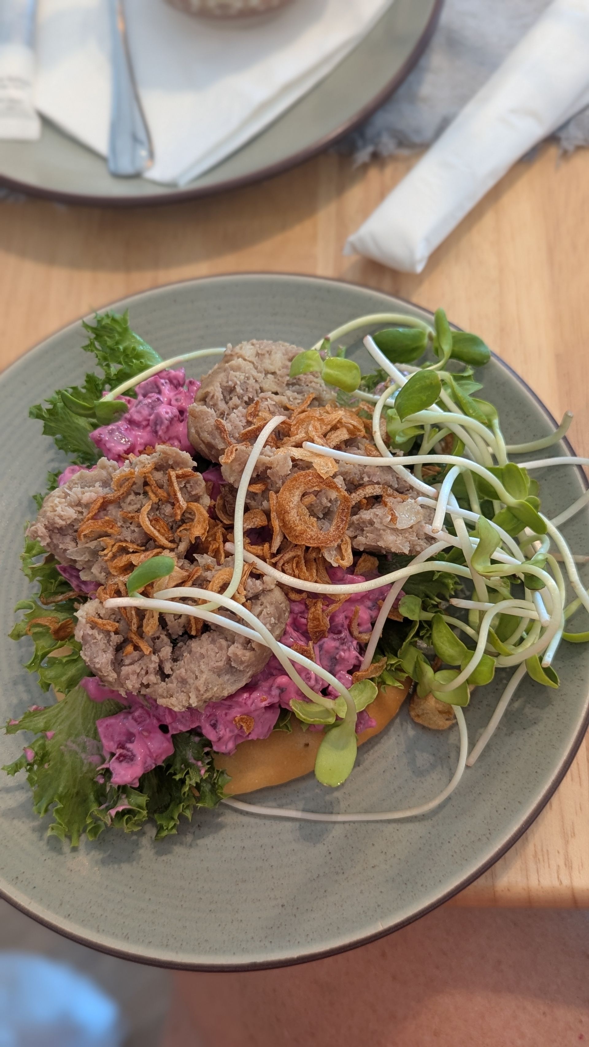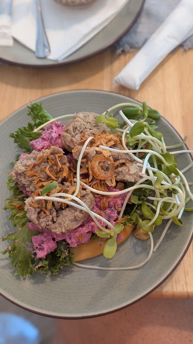 Dann sind wir bis zum Fika gelaufen, um dort zu frühstücken: ein Fleischbällchen-Sandwich mit Rote-Bete-Salat. Wir haben uns auch kurz mit dem Besitzer unterhalten, der uns erzählte, dass heute Abend dort eine Vernissage mit Fotokunstausstellung stattfinden würde. Diesen Samstag beginnt die Schwedenwoche, die – trotz ihres Namens – nicht schwedisch ist, sondern die fünf ethnischen Gruppen der Insel zusammenbringt. Sie findet an dem Strand statt, wo einst alles begann. Seitdem hat sich die Insel natürlich im Süden stark weiterentwickelt.