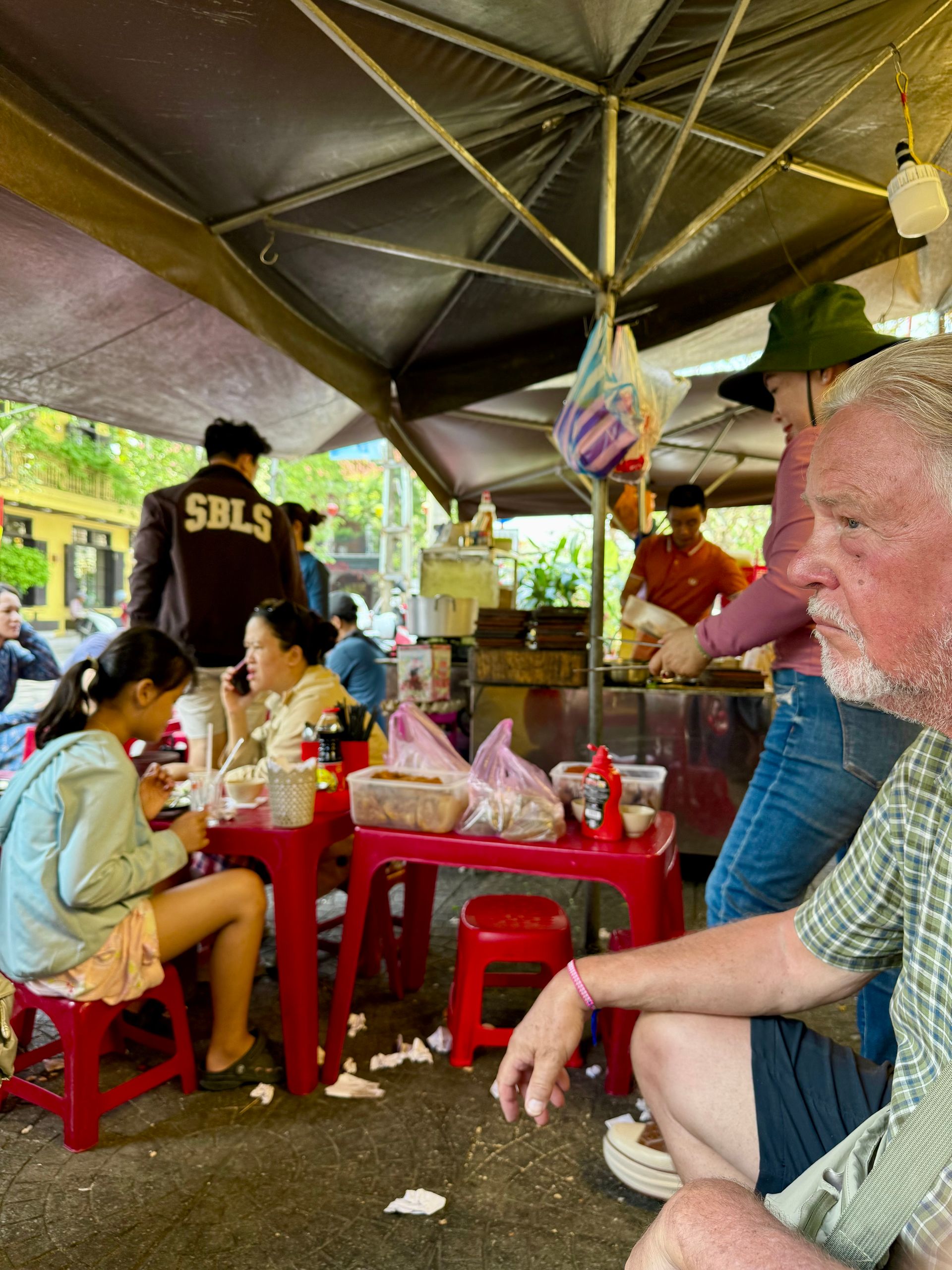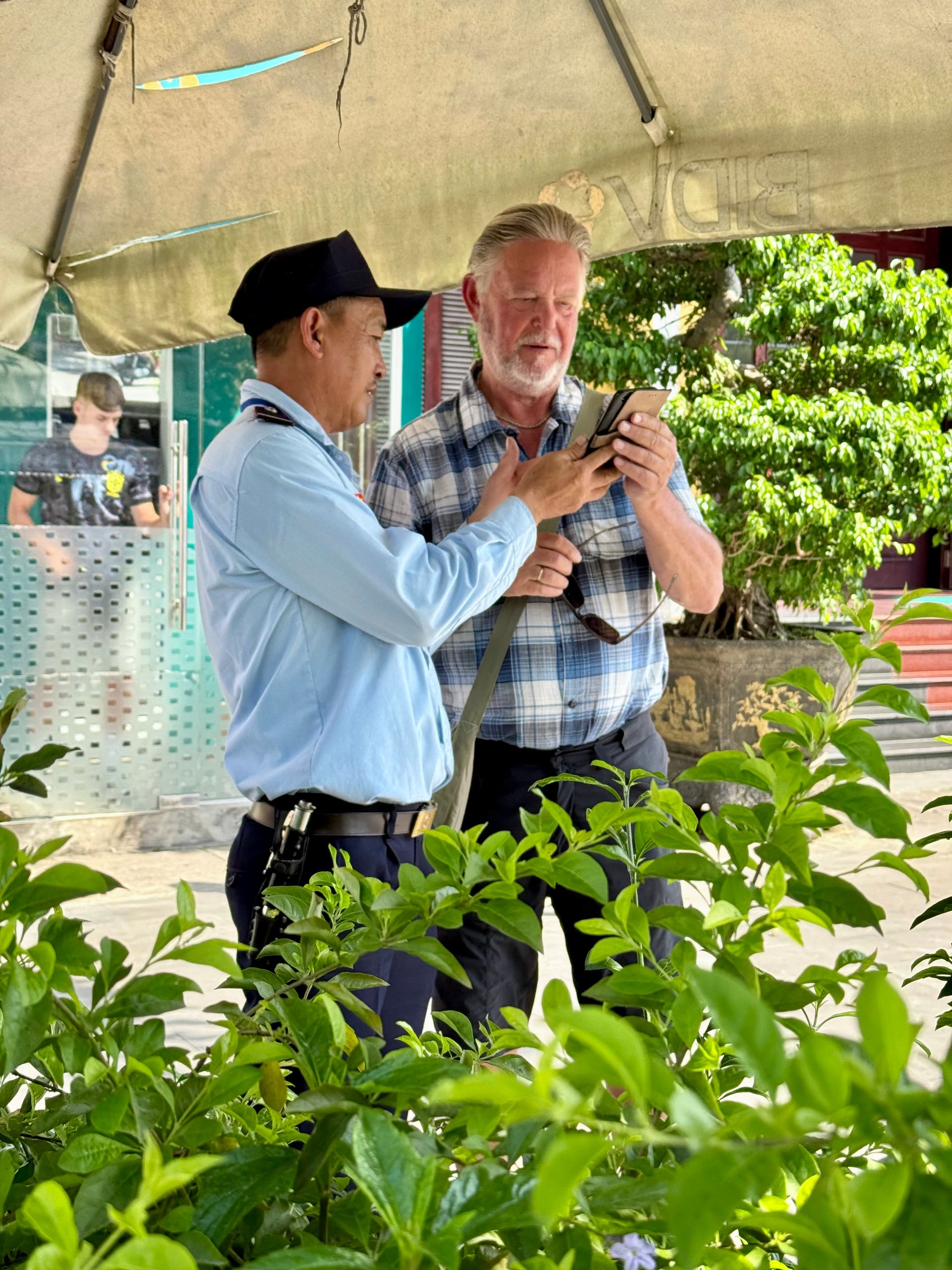 Diesmal fanden wir unser Frühstück in dem kleinen Lokal, in dem wir am Vortag etwas Kaltes getrunken hatten. Köstlicher kalter vietnamesischer Kaffee mit Milch, Brot und Marmelade und einem Pfannkuchen. Wir kamen mit einer Frau aus Griechenland ins Gespräch. Sie ist Anwältin in Athen, wurde jedoch auf Kreta geboren und ist dort aufgewachsen. Es ist so aufregend, die Geschichten anderer Leute zu hören – sehr bereichernd, und ein großer Teil davon besteht darin, auf einer Reise zu sein. Durch Zufall kam ein anderes Paar und ließ sich nieder – sie kamen aus Victoria, Australien, also gab es plötzlich auch mit ihnen Gesprächsstoff. Ein wirklich angenehmer Morgen.