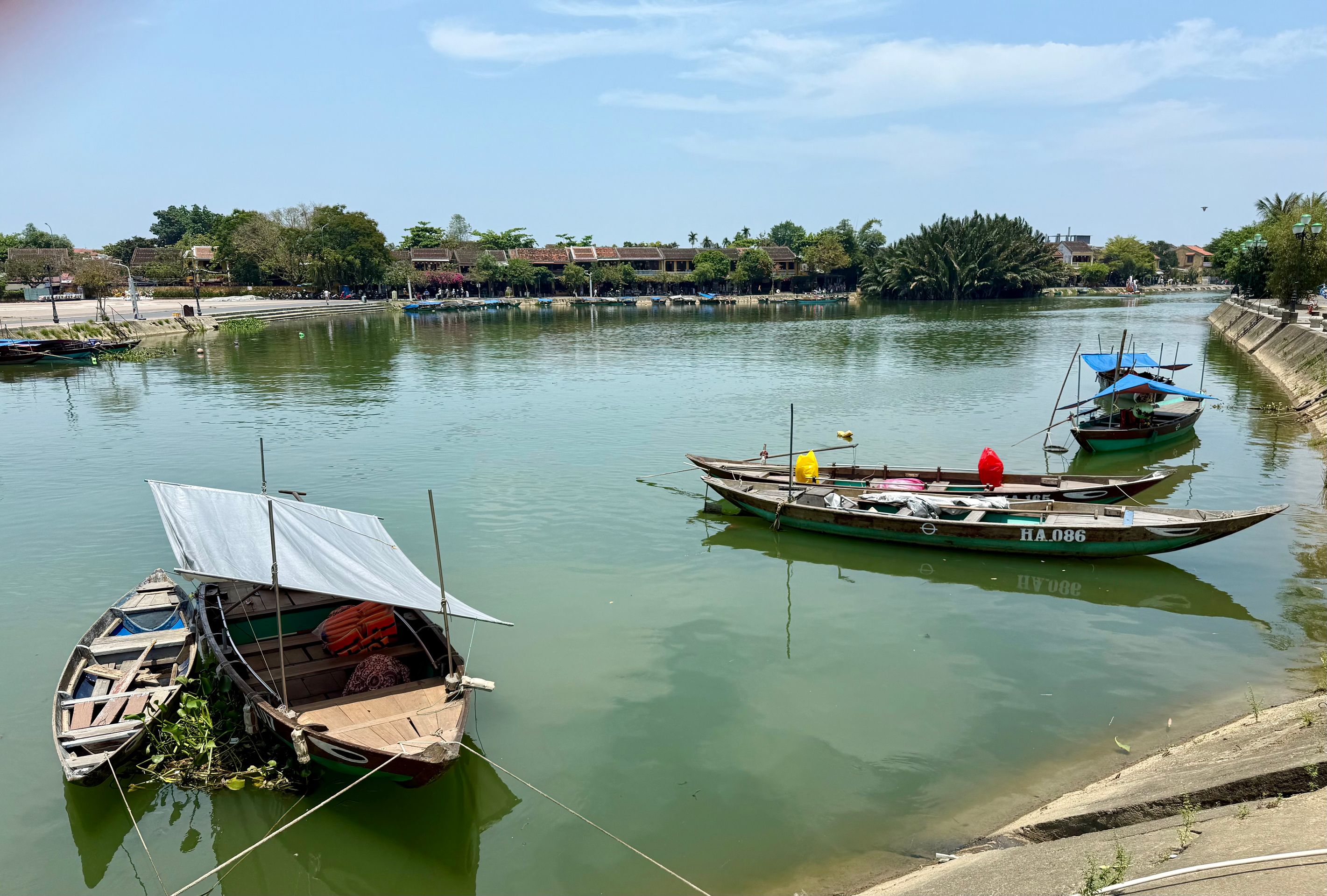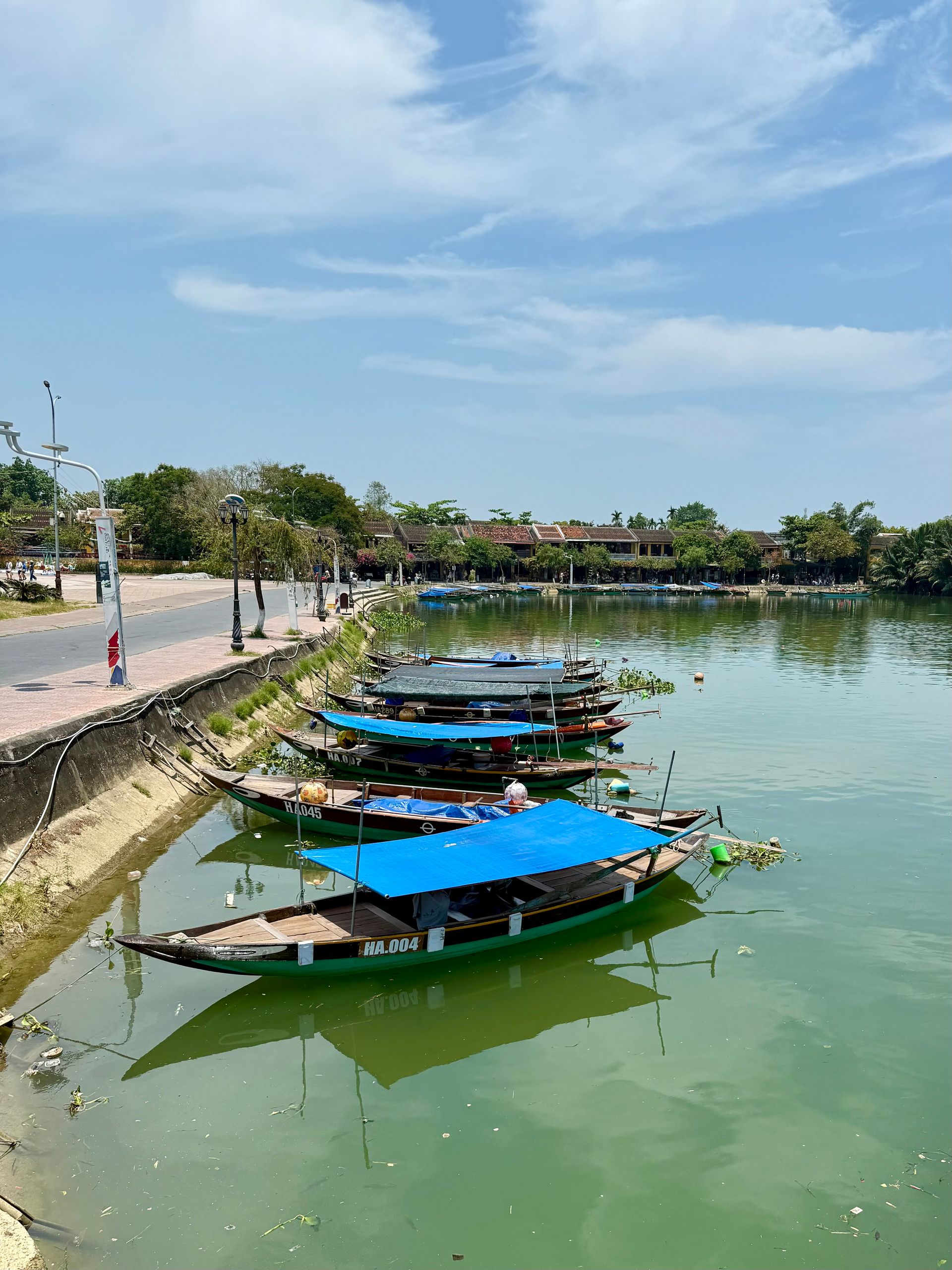Wir hatten im Voraus vereinbart, dass wir länger als ein paar Tage in Hoi An bleiben würden. Wir hatten nur die erste Nacht vorgebucht, denn das machen echte Backpacker nun mal 😂 Als wir merkten, wie lecker das ist, fragten wir nach einer Verlängerung um 5 Nächte – ups, das ging nicht gleich. Naja, egal – ab zu den anderen Hotels – die hatten auch keine Zimmer mehr frei. Etwas verwirrt beschwerten wir uns bei der Rezeptionistin unseres Hotels über unsere missliche Lage und mit großer Freundlichkeit und Einfallsreichtum gelang es ihr, für die gewünschten fünf Tage eine Unterkunft für uns zu finden. Zwar musste eines der Paare nach zwei Nächten das Zimmer wechseln, dafür bekamen sie aber den schönsten Blick auf Meer und Fluss. Dann war es ruhig.