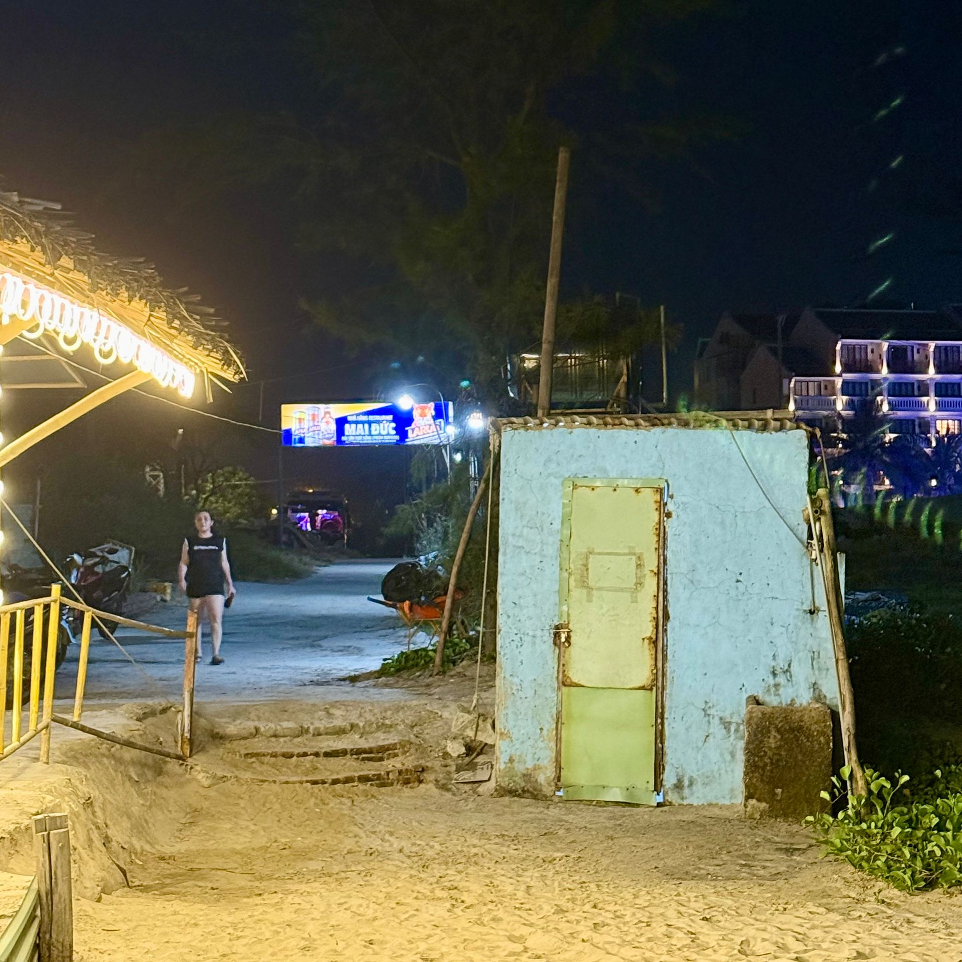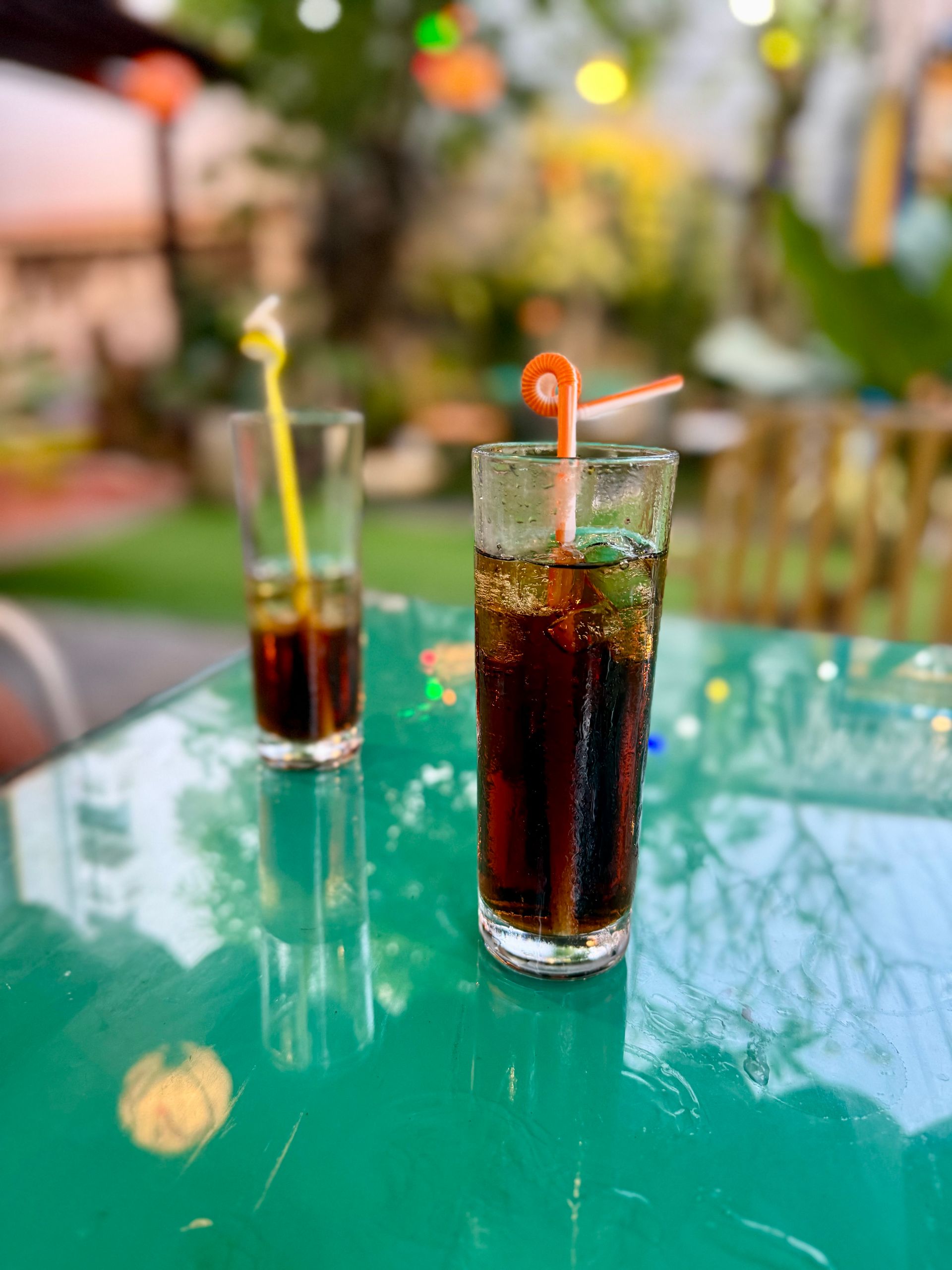 Als wir fast mit dem Essen fertig waren, begann es zu regnen – ein warmer, sanfter Regen. Wir gingen in unser Lieblingsrestaurant, setzten uns unter das Halbdach und tranken einen Gutenachtdrink. Ich habe eine Vorliebe für Mai Thai entwickelt.
