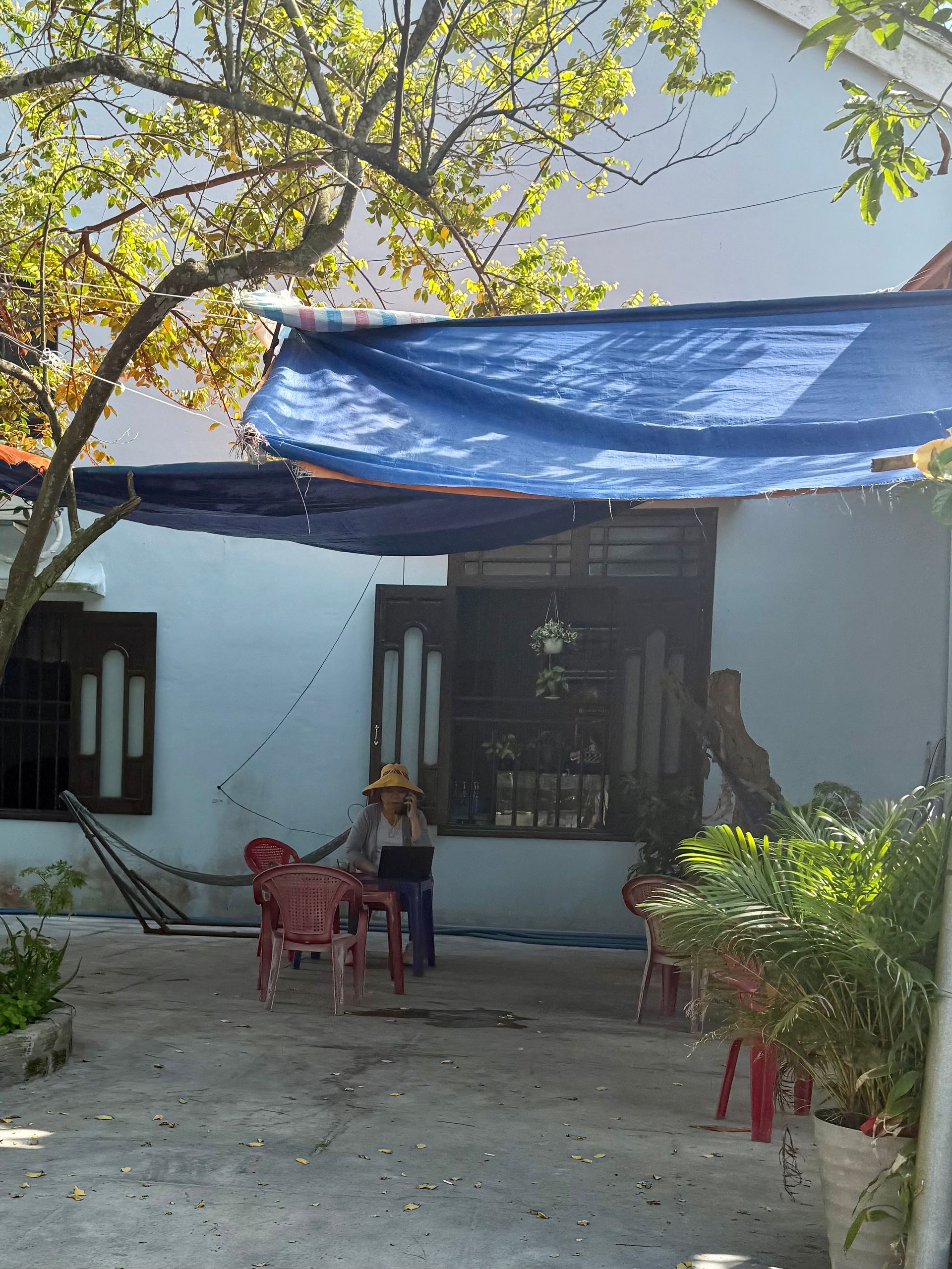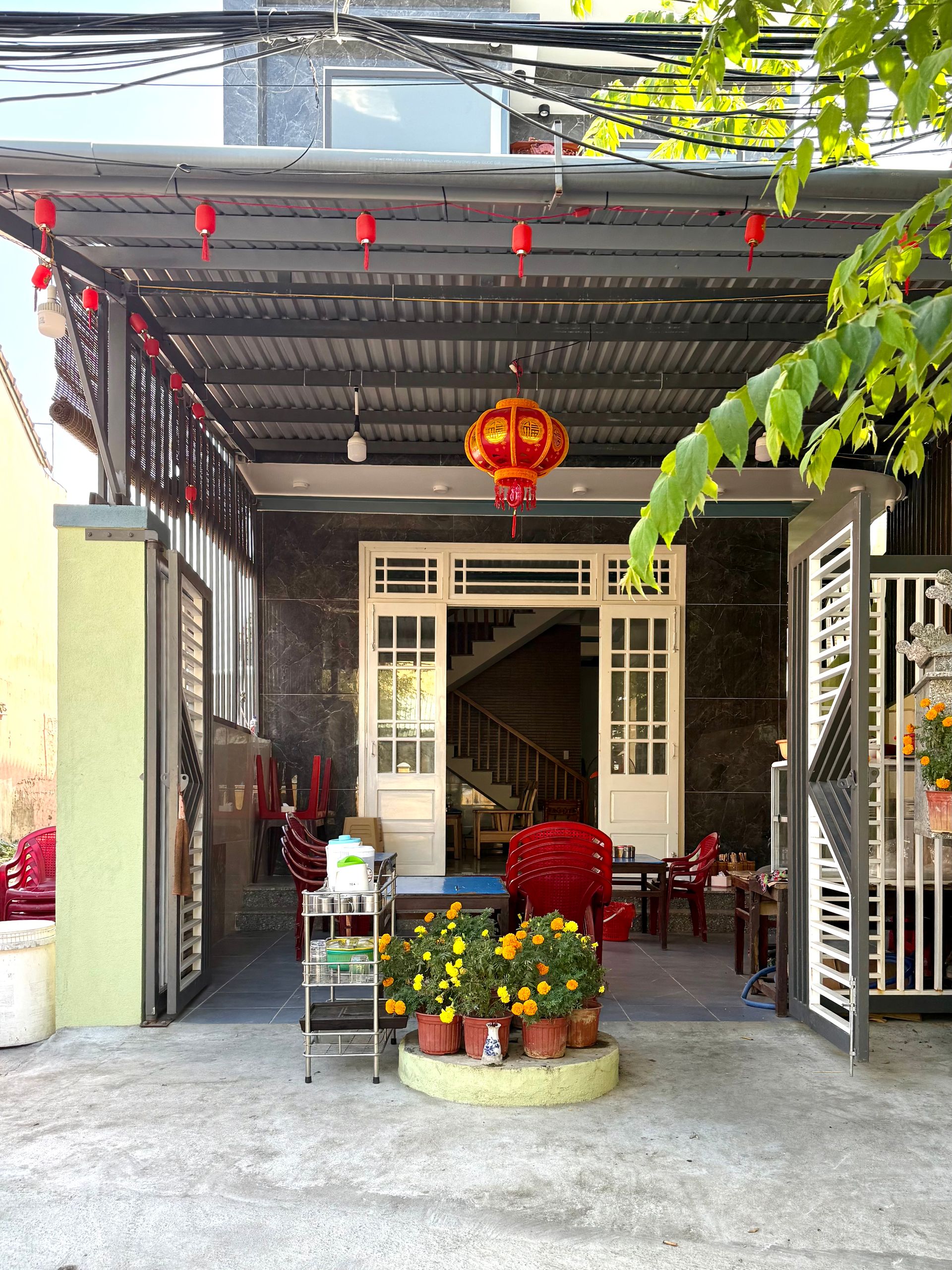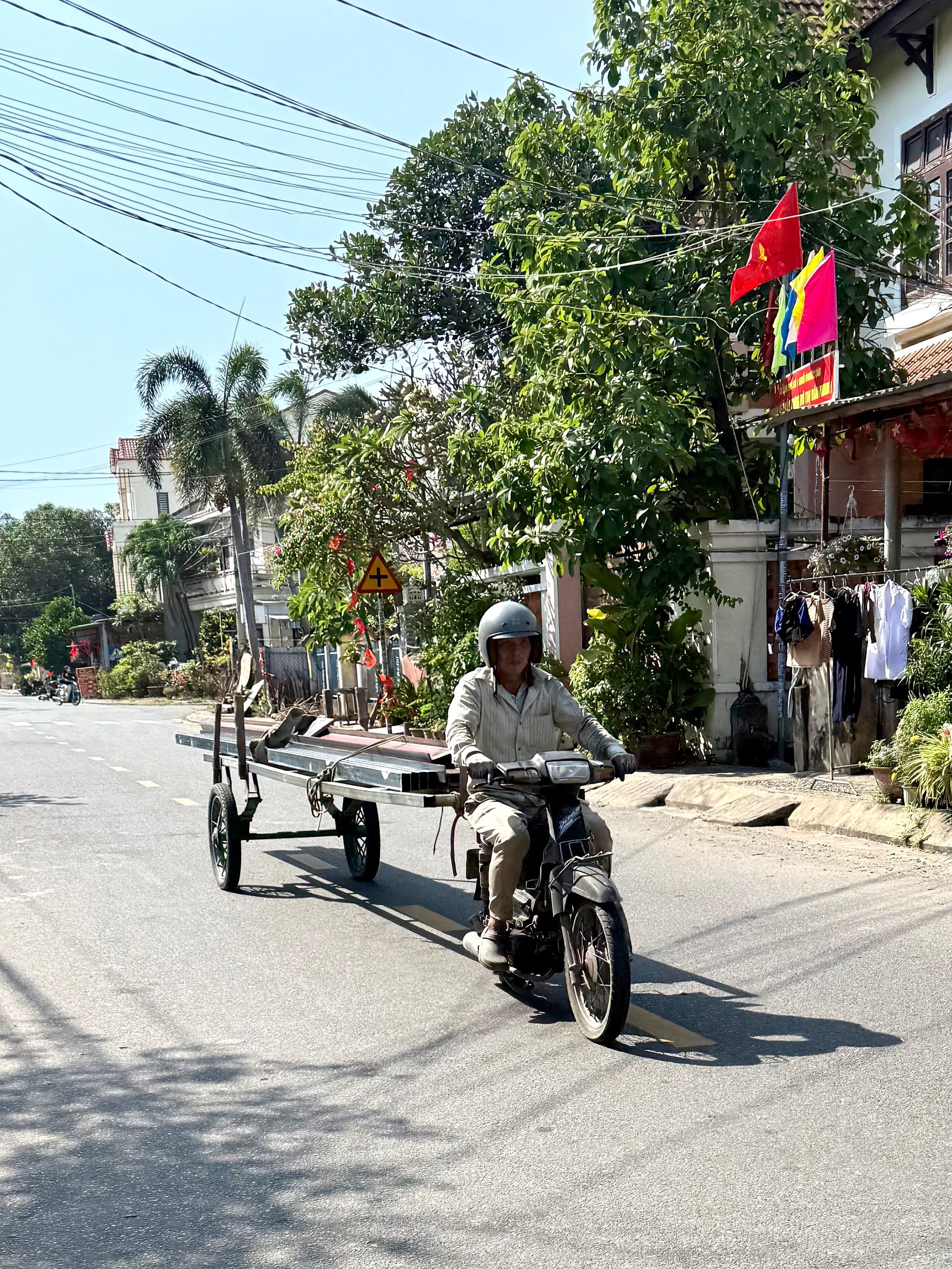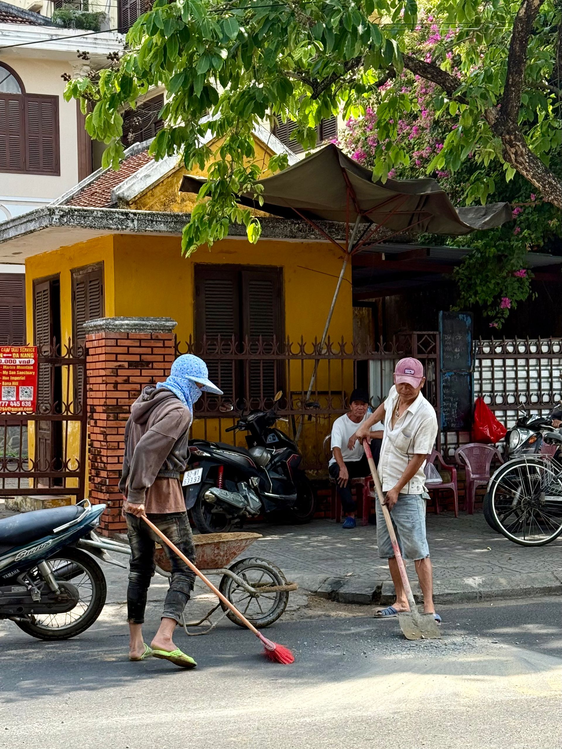 Obwohl Hoi An eine Stadt mit ziemlich vielen Touristen ist, fühlt es sich dort, wo wir leben, ziemlich authentisch an, liegt aber auch etwas abseits der Stadt selbst. Es ist ziemlich ruhig und still hier mit Cafés, in denen die Einheimischen (Männer) bei einer Tasse Kaffee/Bier oder einer Pfeife Tabak abhängen – ich weiß nicht, wie viel Spaß das macht 😜 Die Frauen hingegen sind mehr oder weniger gleichzeitig mit Einkaufen, Kindern und Garten beschäftigt.