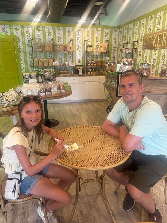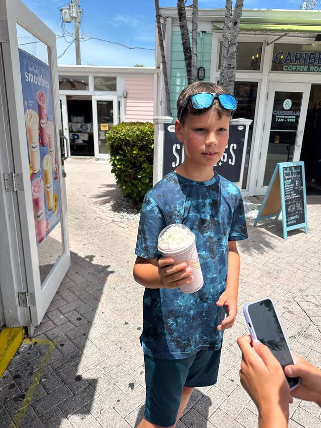 Heute sind wir nach Key West gefahren, der am weitesten entfernten Insel der Florida Keys, nur 150 km von Kuba entfernt. Sie ist bekannt für ihren köstlichen Key Lime Pie, den wir probiert haben. Vincent hat sich stattdessen einen Milchshake gegönnt. Es ist ein kleines, gemütliches, aber lebhaftes Städtchen zum Bummeln. Alte Gebäude (u. a. Hemingways Haus) wechseln sich mit Souvenirläden und Pubs mit Live-Musik ab. In den Florida Keys laufen überall Hähne frei herum. Das ist eine Folge der Schließung der Hahnenkampfarenen. Dann wurden die Hähne freigelassen und wurden immer zahlreicher… Morgen fliegen wir nach Kalifornien!