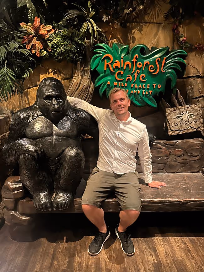 Gestern Abend haben wir im Rainforrest Café gegessen. Michael hat einen Freund getroffen 😉.