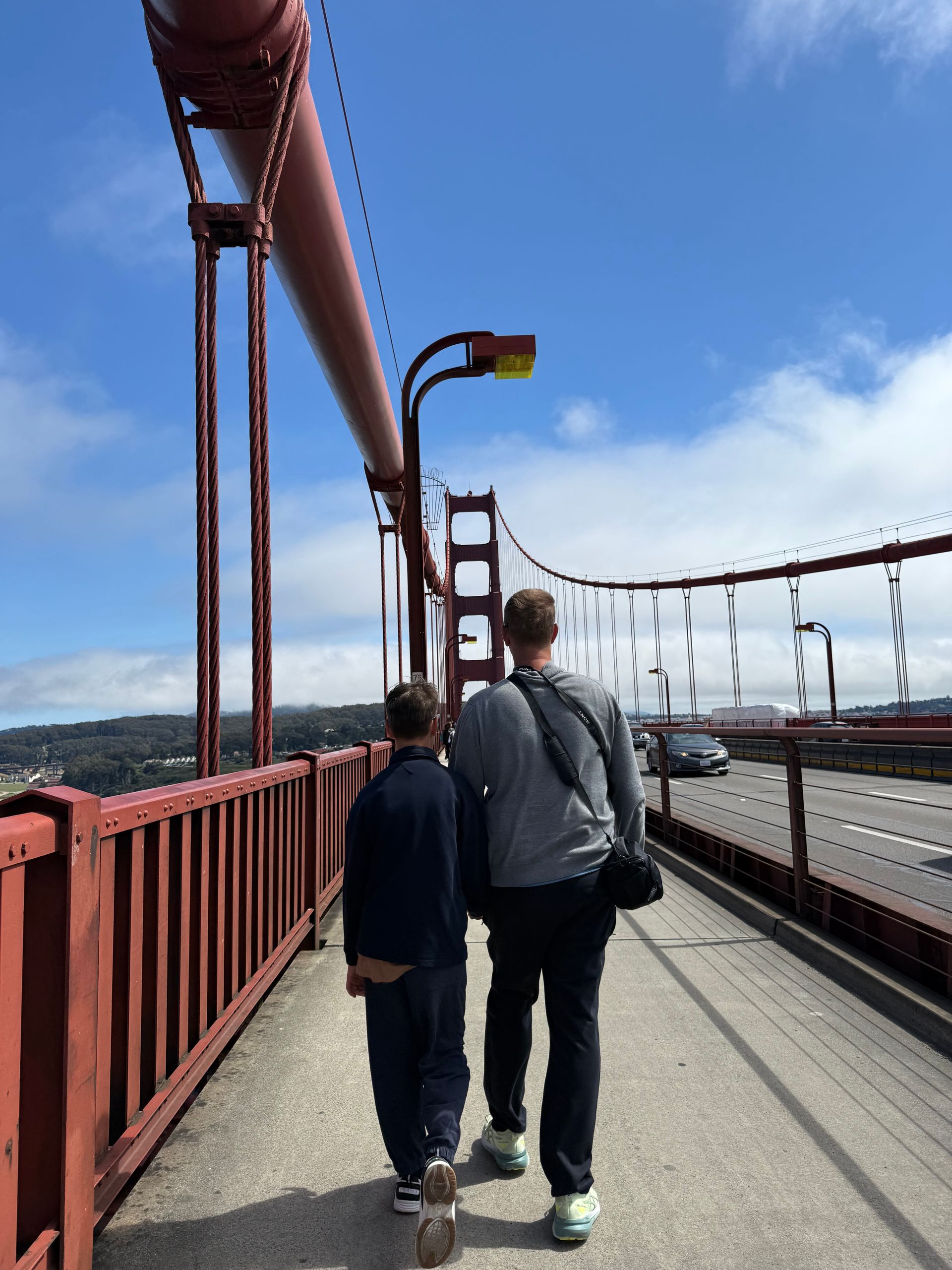 Wir fuhren über die Brücke in eine kleine Stadt namens Sausalito. Sehr schön und malerisch. Fantastische Aussicht. Kleine gemütliche Cafés und Geschäfte. Auf dem Rückweg gingen wir über die Golden Gate Bridge. Wir hatten gehört, dass es kalt werden könnte, aber heute war es nicht so, dafür aber viel Wind und Wind. Wieder eine schöne Aussicht und viele Schritte auf dem Schrittzähler. Morgen rollen wir weiter nach Fresno. Dort wird es warm 🥵 und wir besuchen Nationalparks.