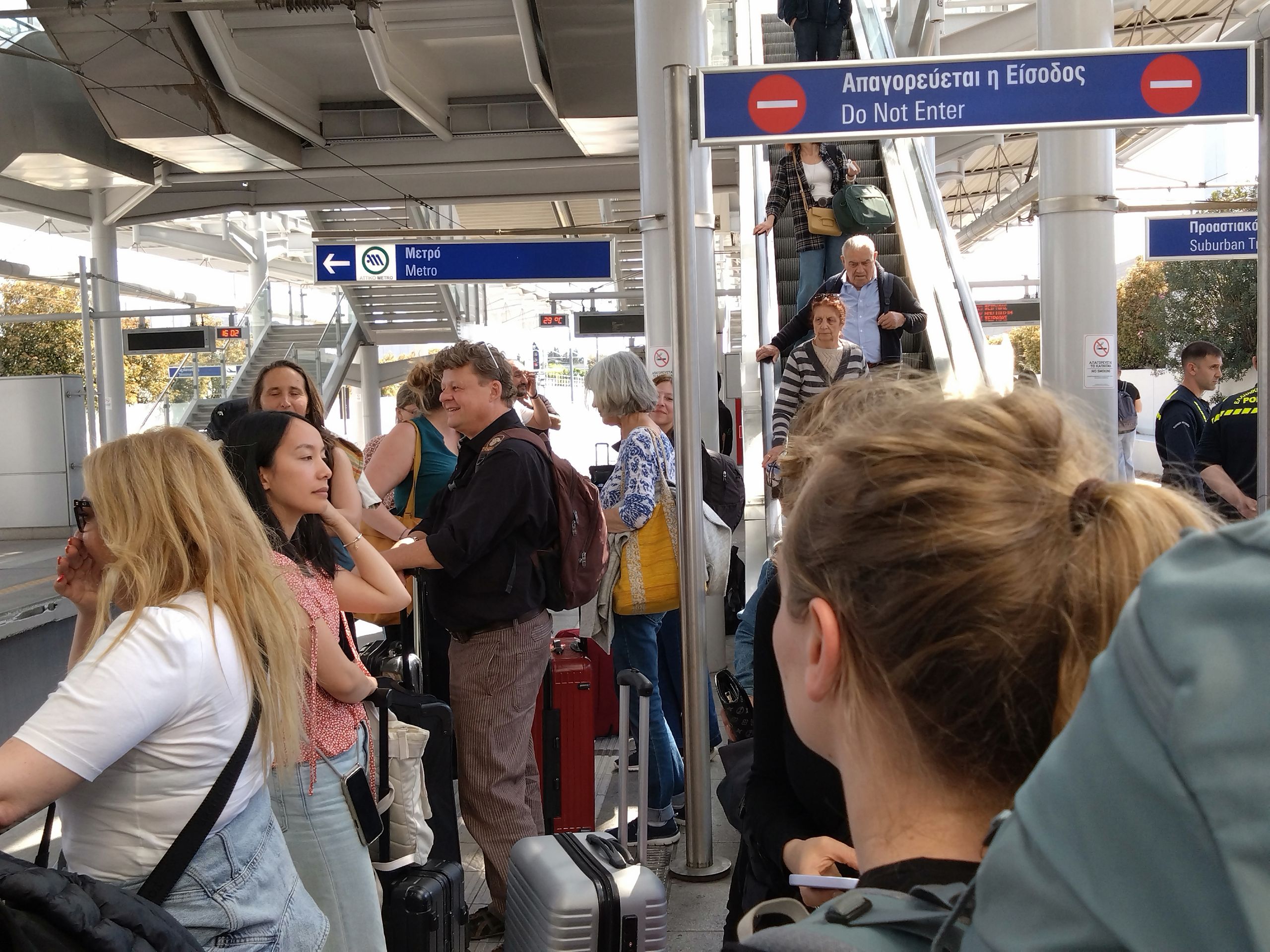 Den Treffpunkt am Flughafen München um 8:45h haben fast alle pünktlich erreicht, bis Abflug war die Gruppe dann vollzählig. Der Abflug war im Regen, die Ankunft in Athen bei Sonne und 28°C, was gibt es Schöneres für den Beginn einer Reise! Vom Flughafen ging es mit der Metro ins Hotel und von dort aus direkt zum Treffpunkt https://maps.app.goo.gl/wnJaxAyRTcpuYEh29?g_st=com.google.maps.preview.copy mit Christos, einem Journalisten und Politikwissenschaftler, der uns bei Unmengen von phantastischem Mezze einen Einblick in die aktuellen politischen und sozialen Verhältnisse Griechenlands gegeben hat. Dabei ging es v.a. um die Situation von Geflüchteten in den Lagern, der Schiffskatastrophe vom Juni 2023 bei der 708 Personen ums Leben kamen und nur ca 100 gerettet wurden, die Rolle, die die griechischen Küstenwache dabei gespielt hat und Mitschuld trägt an dem Tod der Menschen. https://maps.app.goo.gl/wnJaxAyRTcpuYEh29?g_st=com.google.maps.preview.copy