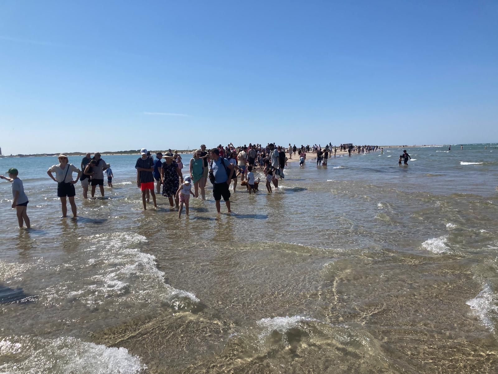 Ein weiterer Ausflug führte uns nach Skagen. Dort fliessen die Nord- und Ostsee an einer Landzunge zusammen. Mit dem ‚Sandwurm‘ genannten Traktor mit Anhänger wurden wir vom Parkplatz zum Meer gebracht, wo wir zu Fuss bis zur Landzunge gingen. Die Strandfläche wurde immer dünner (auf der einen Seite war die Nordsee, auf der anderen die Ostsee) bis die Meere aufeinander trafen. Es sah lustig aus, als die Wellen von zwei unterschiedlichen Richtungen gegeneinander stiessen. Das Wasser war so flach, dass wir weit ins Meer hineinlaufen konnten.