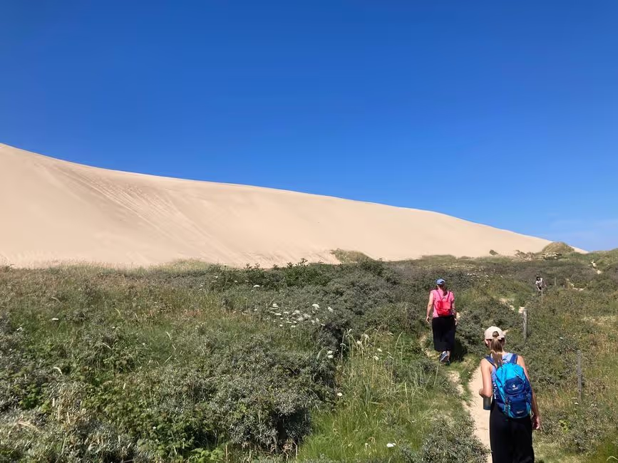 Hier in Lønstrup kann man viele Dinge anschauen und entdecken. Wir besuchten einen Leuchtturm, der auf der grössten Sanddüne Dänemarks (Rubjerg Knude) steht. An diesem Tag war es ziemlich warm und man konnte nicht direkt mit dem Auto dorthin fahren, deshalb mussten wir ein grosses Stück zum Leuchtturm wandern. Durch den heissen Sand zu stapfen war sehr anstrengend! Trotzdem hat es sich gelohnt, denn die Aussicht war atemberaubend schön. Am Abend waren wir alle sehr erschöpft und müde.