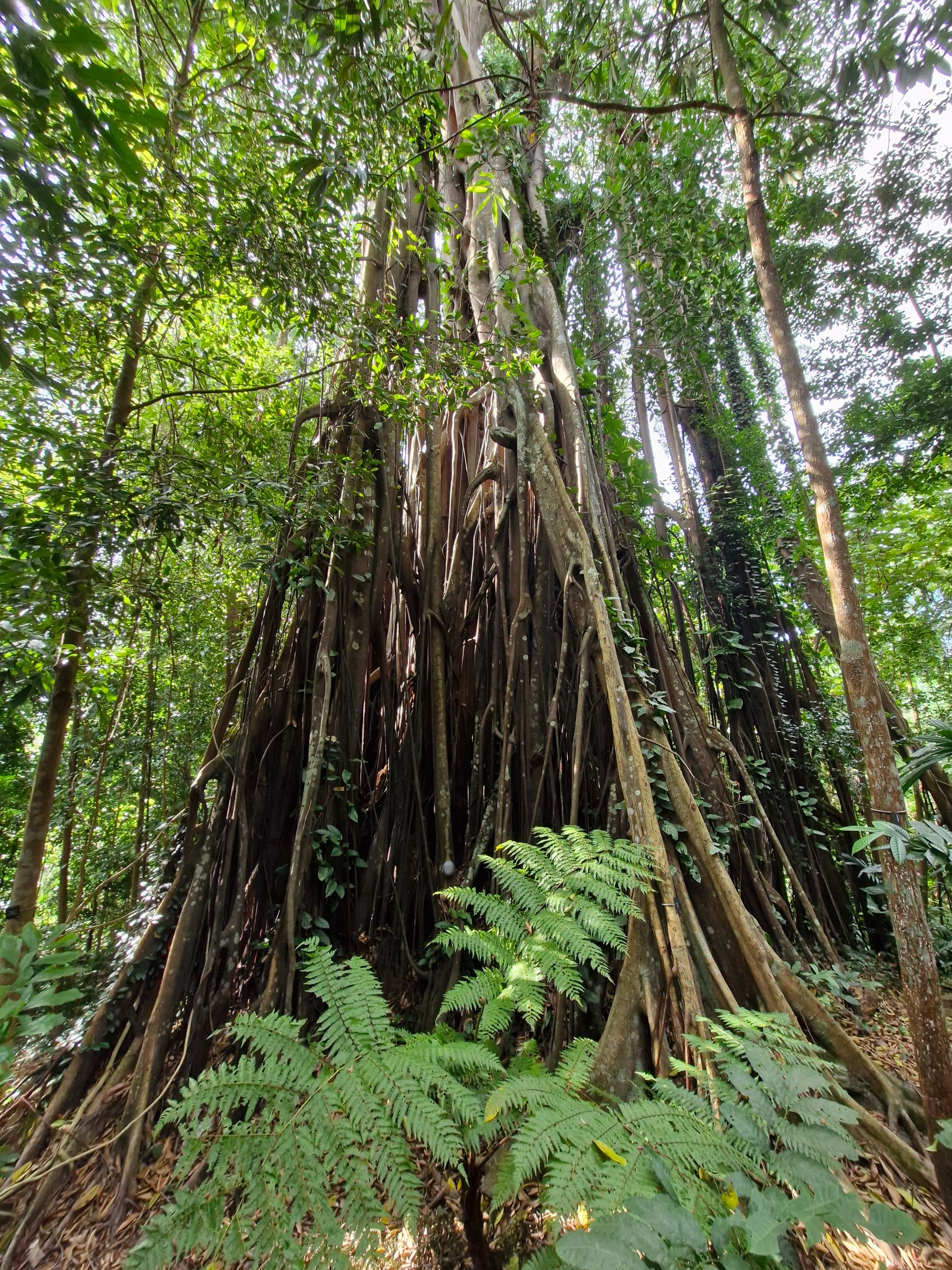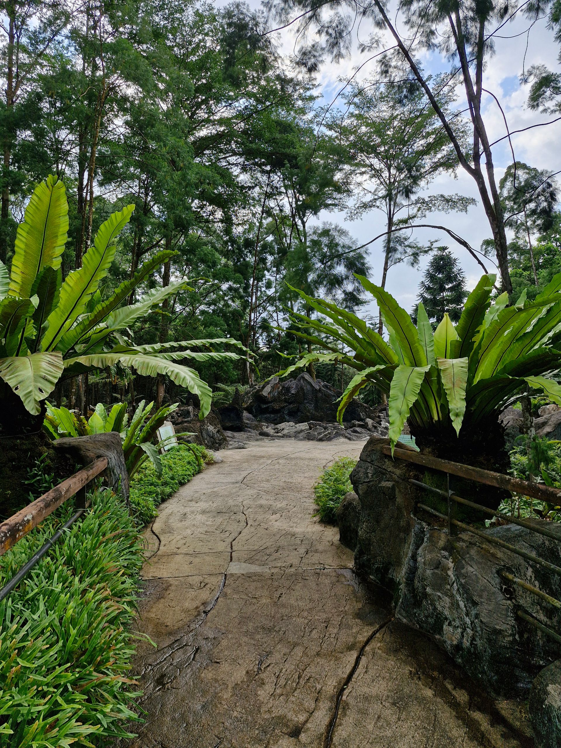 Nach dem Museumsbesuch haben wir uns im Tekka-Center beim Michelin Stand leckeres Lamm-Biryani geholt und sind dann mit vollem Bauch in den Botanischen Garten gegangen und haben uns vor der Sonne versteckt. Zunächst mit einem leckeren Kaffee im Café und dann im Schatten der Bäume und Begrünung des Gartens. Der Botanische Garten in Singapur hat verschiedene Teile mit unterschiedlichsten Pflanzen aus den Nachbarländern und den Ländern, wo der Großteil der Einwanderer herkam. Einfach nur toll da durch zu laufen und auf dem Weg bzw. neben dem Weg konnten wir immer wieder Leben entdecken. So zum Beispiel auch eine ziemlich große Echse. Im Botanischen Garten leben auch Otter und es stehen immer wieder Schilder, dass die Fußgänger den Ottern Platz machen sollen. Leider haben wir keine gesehen aber es war trotzdem total interessant.