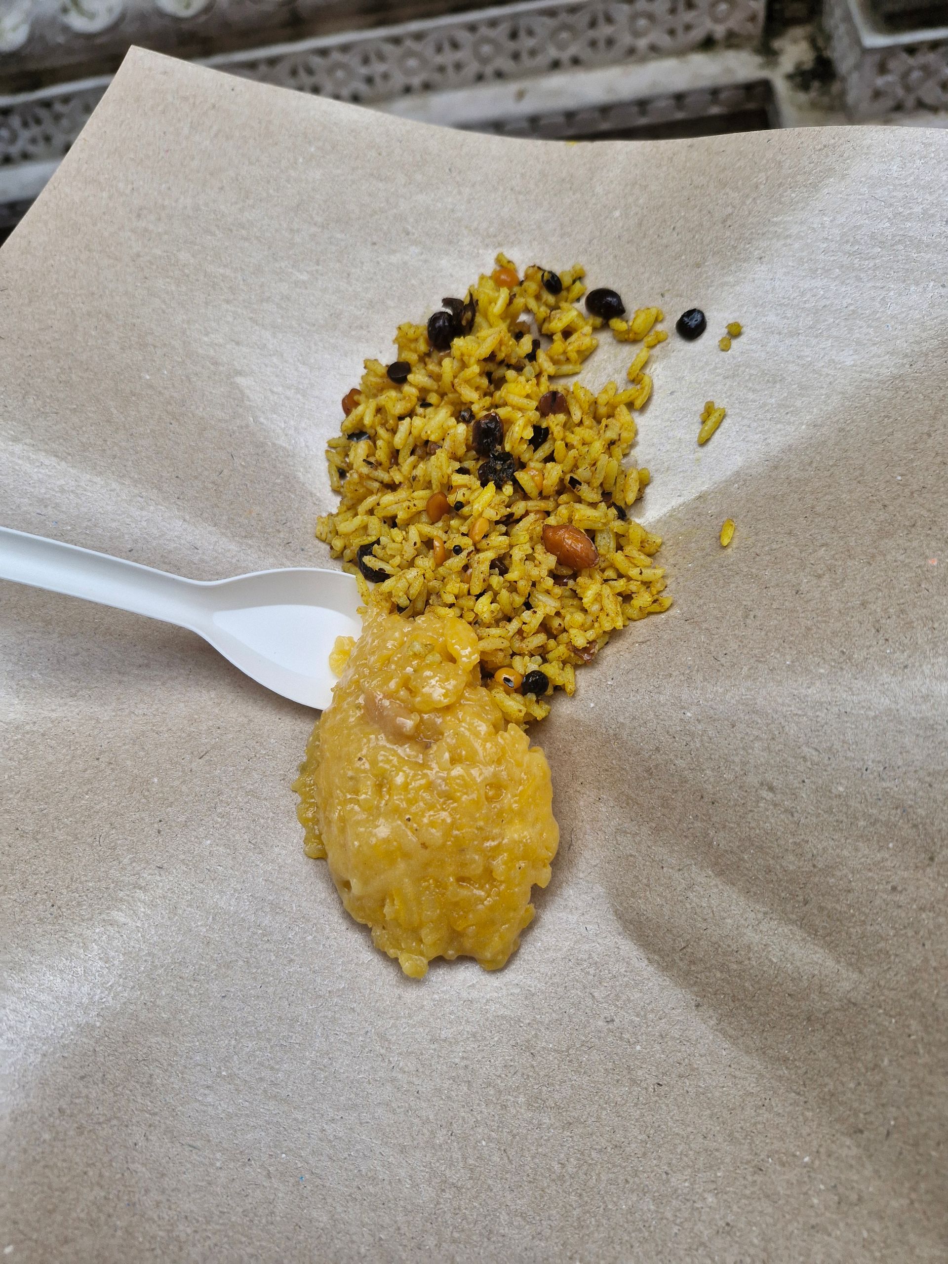 Dadurch, dass wir Angel dabei hatten, haben wir uns dann auch in den Tempel getraut und mit sind natürlich mit entsprechender Kleidung, die vor dem Tempel ausgeliehen werden konnte, durch die Anlage gelaufen und haben uns die Gläubigen und deren Götter etwas näher bringen lassen. Hier gab es für wirklich fast alle Gefühle und Wünsche einen eigenen Gott, der angebetet werden kann und zum Beispiel für Reichtum zuständig ist. Im Tempel gibt es auch immer eine kleine Portion Essen, dass durch die Tempelspenden finanziert wird. Dieses Essen wird mitunter für die Bedürftigen in größeren Portionen ausgegeben aber auch die anderen Besucher sind dazu eingeladen sich etwas zu holen. Es war sehr lecker aber gerade die Curry Version von dem Reis war so scharf, dass ich es nicht essen konnte und abgegeben habe.