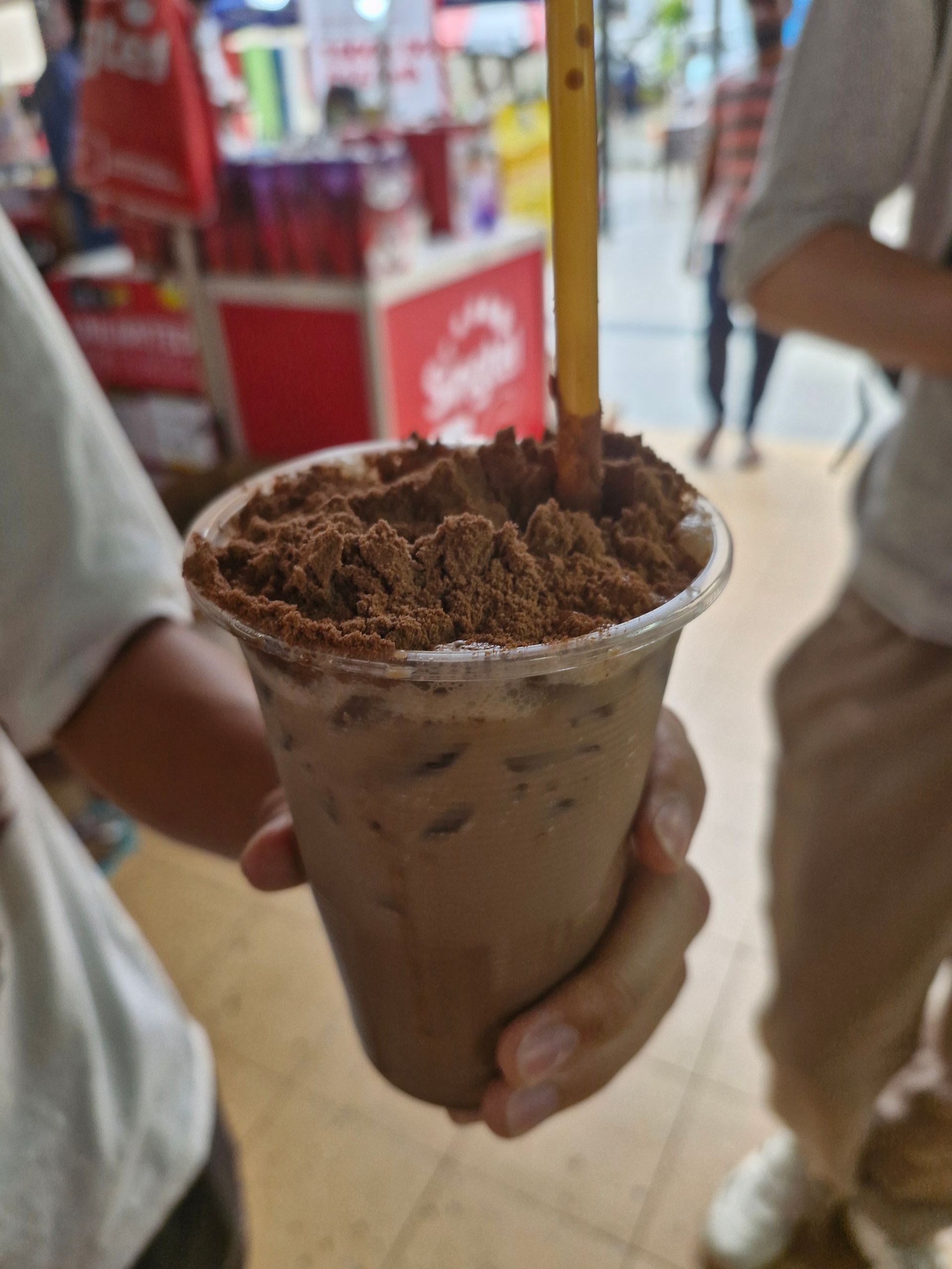Einen lecker Stärkung haben wir uns zwischendurch auch noch geholt. Dieses Getränk hatte Safran, Tee, Ingwer und viele weitere Gewürze und es war ein absoluter Gaumenschmaus. Für den jungen Praktikanten gab es einen sogenannten Dinosaur. Ein gekühltes Getränk aus Milch und Milo-Powder. So ähnlich wie Kakao bzw. heiße Schokolade, allerdings in so einer Menge, dass sich das Pulver oben drauf schon nicht mehr auflöst. In Singapur ist das aber eine richtige Delikatesse und wohl absolut normal.