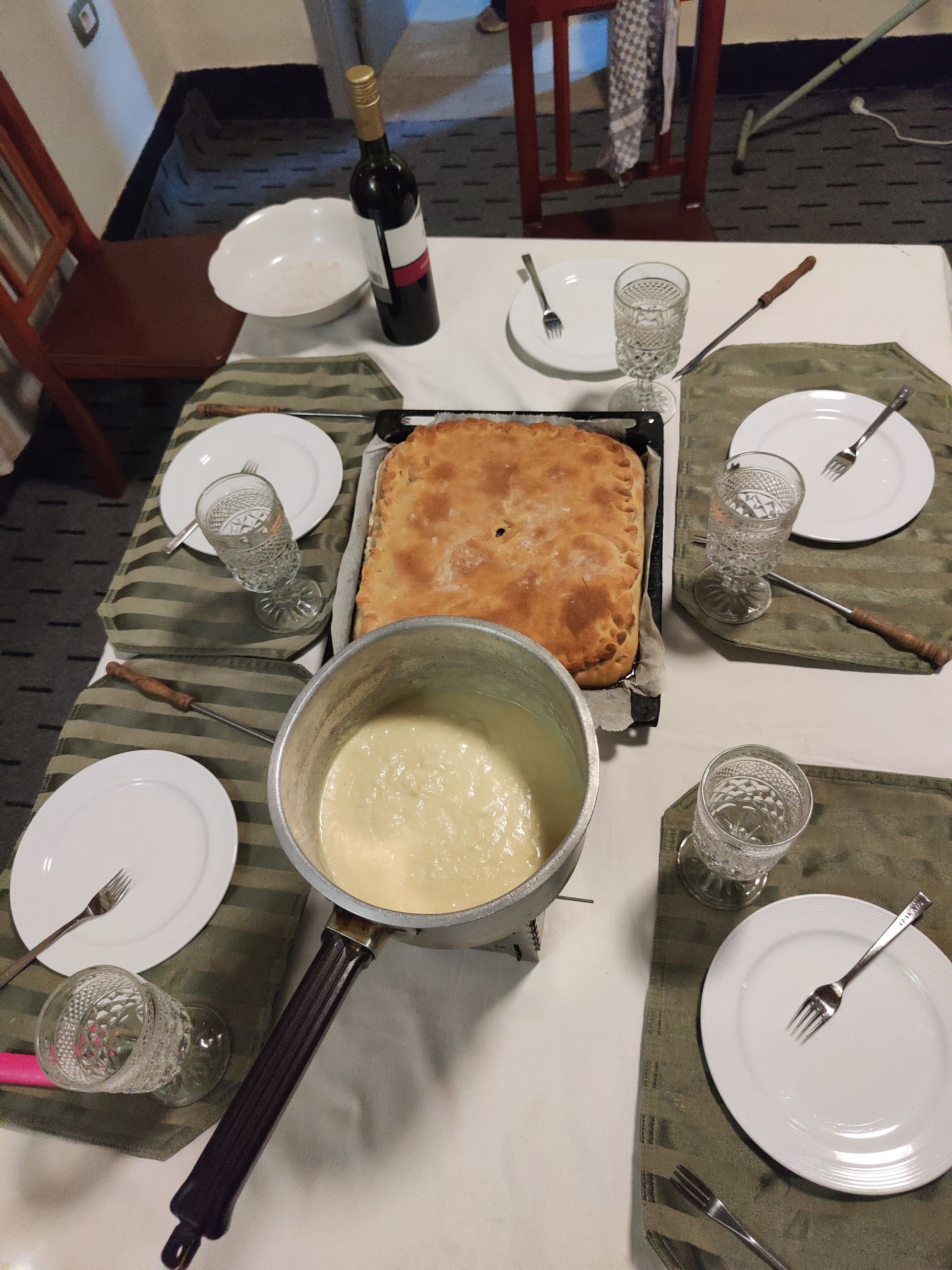 In der Zwischenzeit ist viel passiert, aber alles der Reihe nach. Die Beleuchtung hinter dem Guesthouse wurde ersetzt und weitere Anstrengungen wurden unternommen, die Lagerhaltung im Workshop zu optimieren. Nachdem ich mit den 5S/5A erfolgreich argumentiert hatte, wurde die Instruktorin von selbst aktiv und hat die Lichtschalter schön einsortiert. Beim Schubladenstock ging es dann weiter und wir haben. Viel defektes Material entsorgt bzw repariert was möglich war. Auch eine weitere Lagerlösung für Hämmer usw ist in Bearbeitung. Am Mittwochabend hatten wir ein spezielles Geburtstagsmenue, bestehend aus einem kasachischen Poulet-Auflauf und dazu optional noch es bizzli Fondue. Dazu genossen wir einen feinen äthiopischen Rotwein aus Zeway.