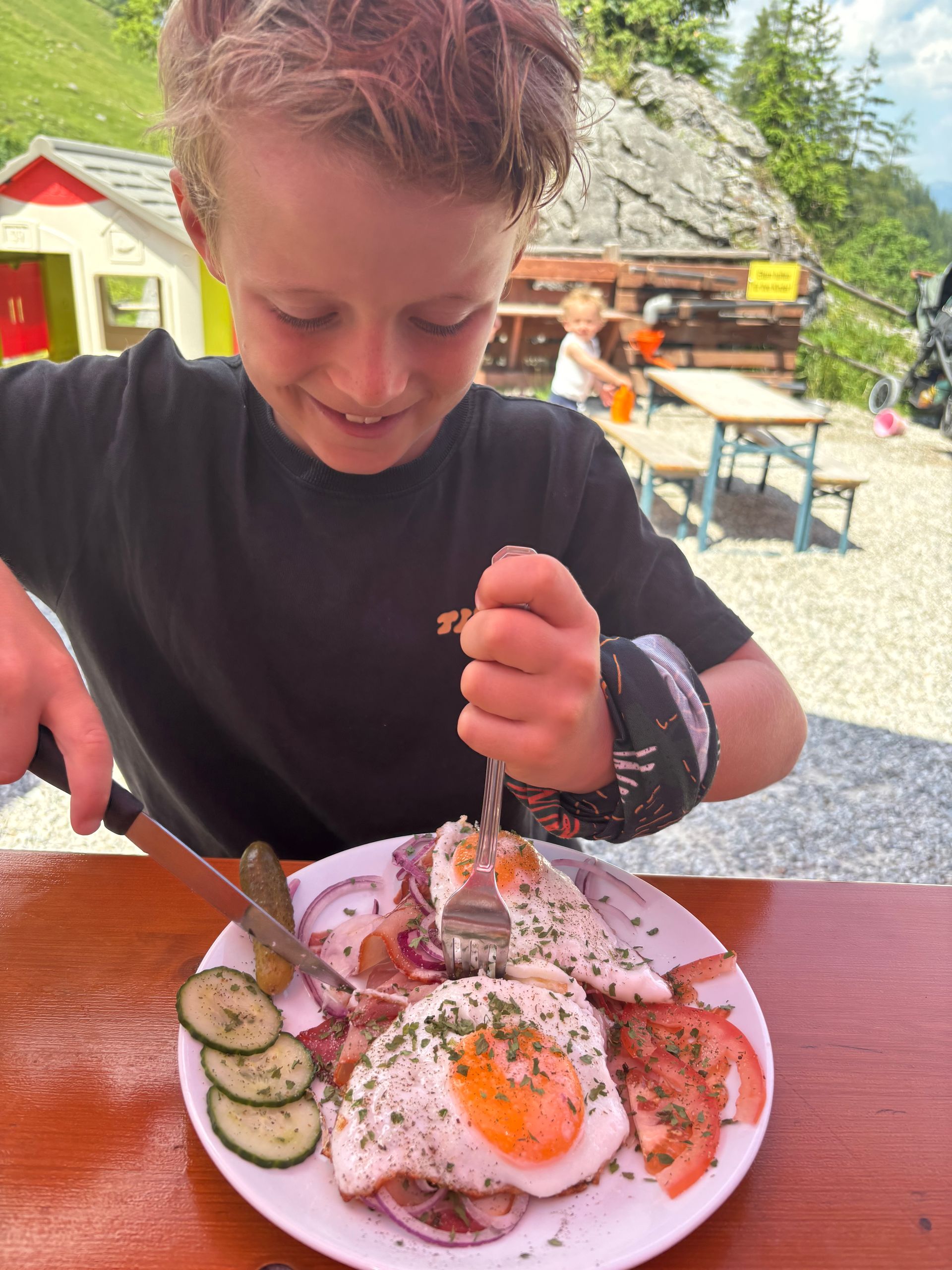 Nachdem wir uns auf dem Gelände unserer Unterkunft verlaufen haben, ging es dann gestern Morgen los. Nach 1000 Fotos, Rückkehr wegen Uhr vergessen und unnötigen Eincremeaktionen waren wir dann endlich auf dem richtigen Weg. Erst war es wie ein Spaziergang, ab der Königsbachalm (Mittagspause) wurde es dann knifflig. Die letzten 5km mit vielen Höhenmetern waren dann crass. Oben angekommen auf 1685m gab es dann Kaiserschmarrn und ein Kennenlernen mit unseren Schnarchnachbarn. Die Nacht war dann survival für Einsteiger. Da wir nicht lange schlafen konnten, sind wir gegen 515 Uhr los. Obwohl der Wirt sagte, es würde sich nicht lohnen.