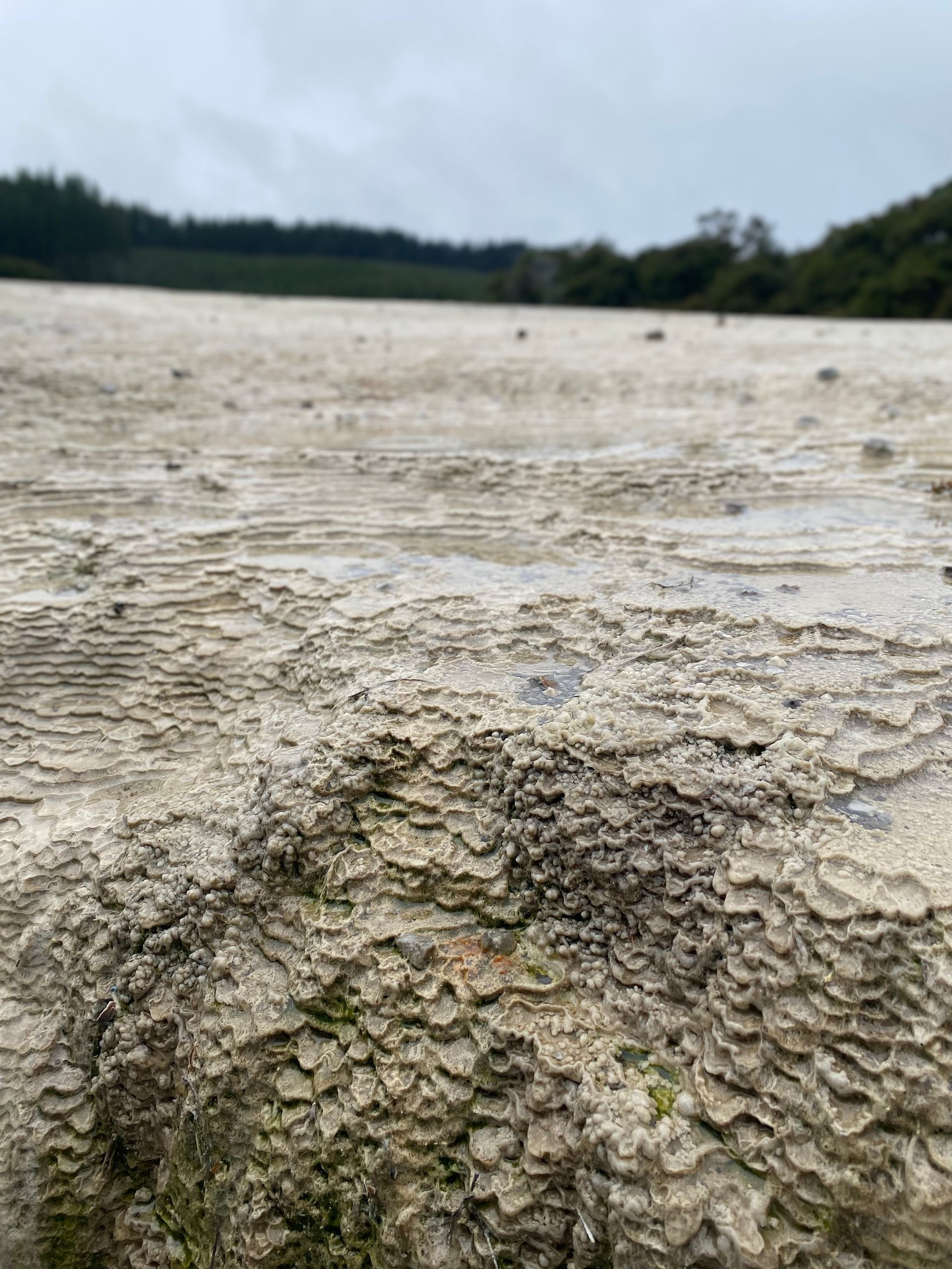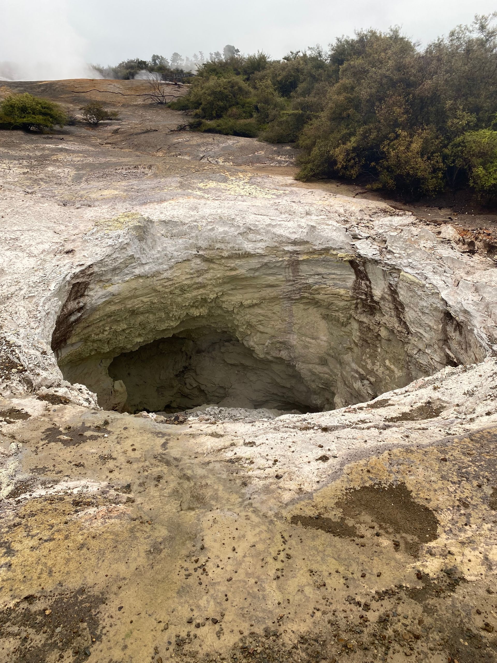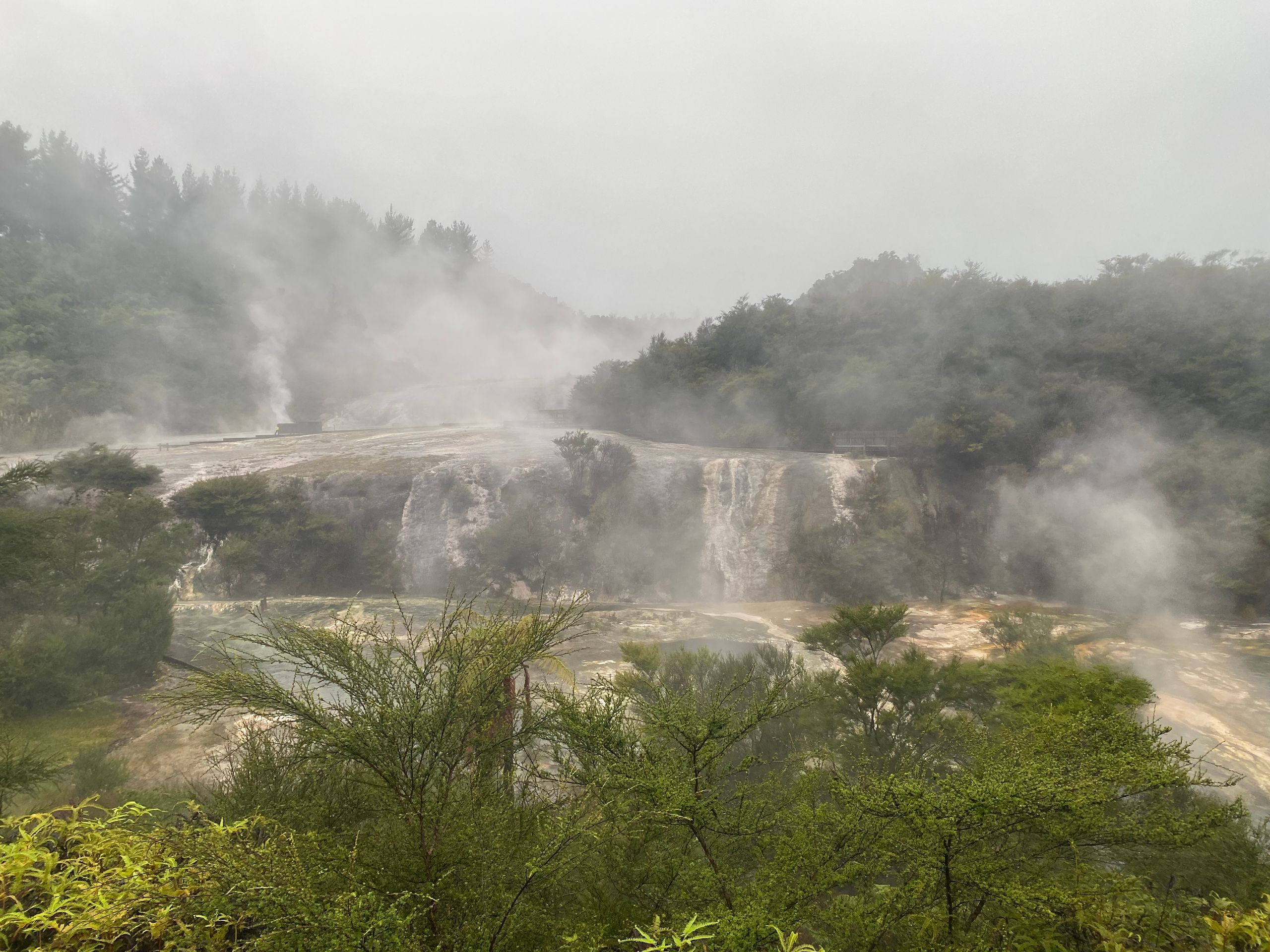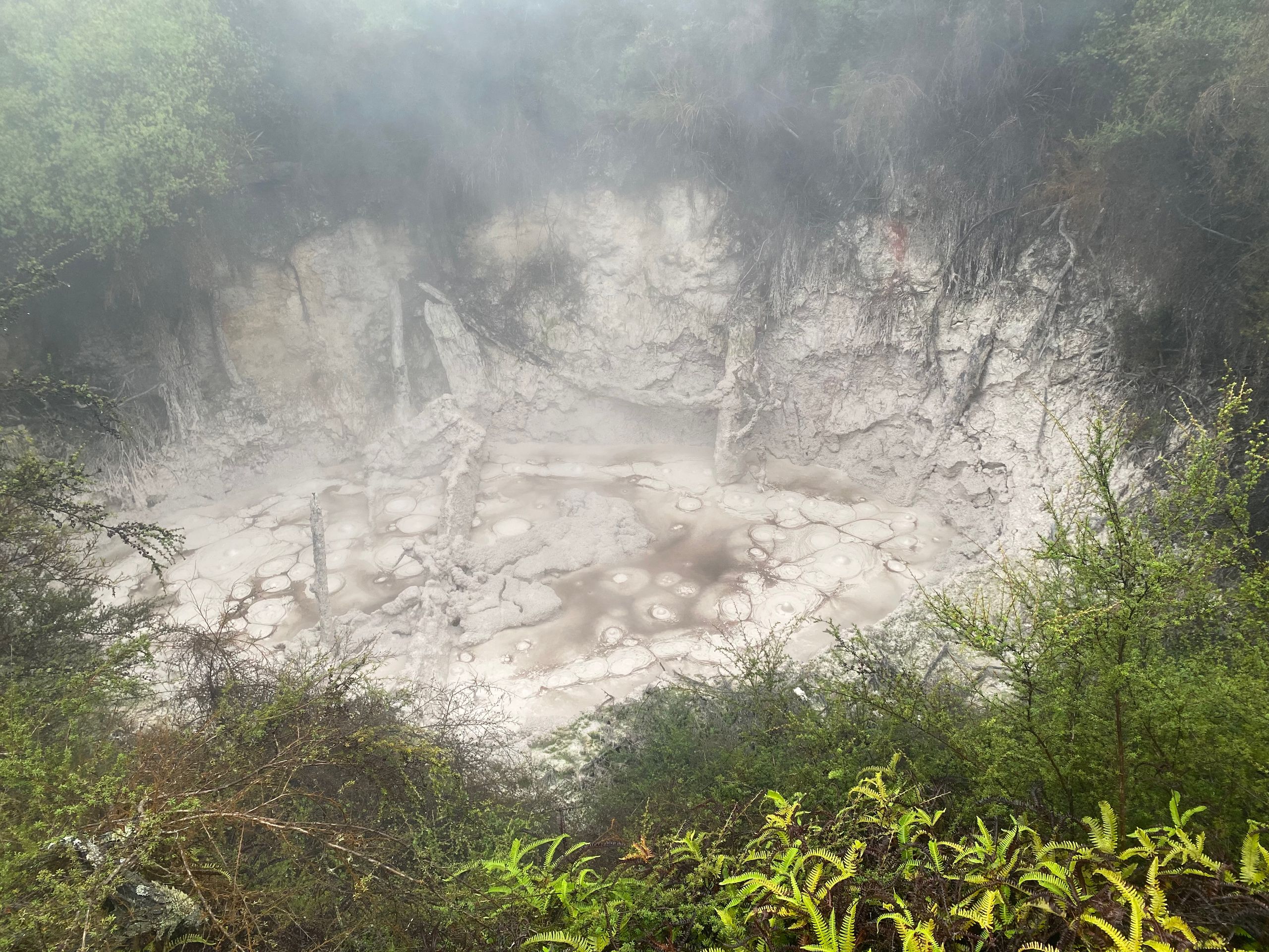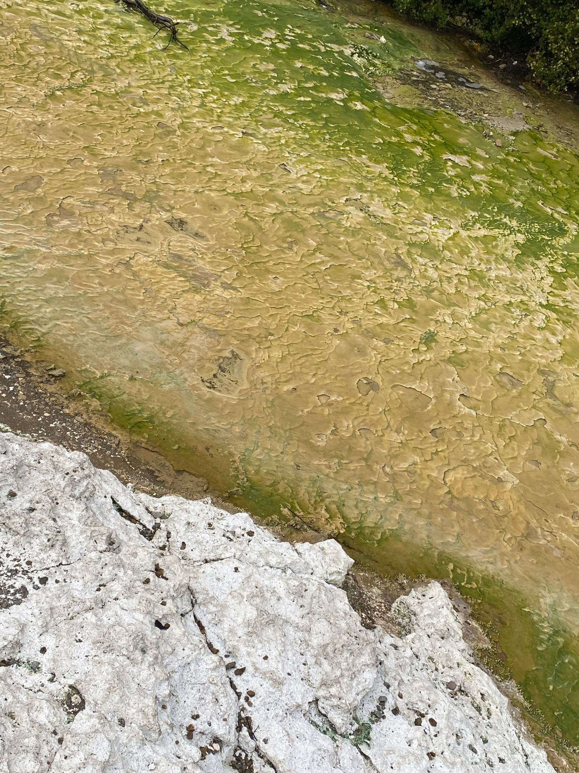 Since I couldn't decide at all, I had 2 parks in front of me today for about 100 dollars, and in hindsight, the second one would have been enough. However, the first one had one of the 2 world-renowned caves in a geothermal area, so that was pretty cool. So, first off, I went to: Orakei Korako Geothermal Park & Cave. The funny thing is that you are actually taken across the river by boat to see it. And since there were hardly any visitors, I basically had a private boat ride, just the captain and me. I also didn’t encounter a single person during the walk, so I had everything to myself. Since nothing was blocked by people, I went through it quite quickly, which for the price of 51 dollars was already crazy; maybe it wasn't worth it, but it was still very cool to see. You walk through wooden walkways, and there was a lot to see. However, it only got really cool in the second park: Wai-O-Tapu. There were definitely more people here, but thankfully it dispersed a bit. Here, there were huge craters, lots of steam, and super crazy colors, neon orange, yellow, etc. The Champagne Pool was really impressive. I treated myself there since financially it was all the same anyway. I had a pie and cheese, it was really good, and the brownie was 12/10. After that, I went to the Warm Lake. There was a small gravel road leading to it with bottomless potholes. A dude stopped me, saying, 'Yeah, it’s not so warm for swimming today, blabla,' it was quite nice, chatted briefly with him, and yes, the water was indeed like a bathtub, so I found it quite warm. However, since it was a muddy puddle full of worms, swimming was out of the question for me. So off I went to Rotorua, the city that smells more like rotten eggs than the parks. I was so lucky and snagged the last free parking spot at the camp. I then walked to see the hot water park. In the middle of the city, there are steaming, boiling lakes at 100 degrees. No wonder it stinks here. For whatever reason, there are really alarmingly many homeless people and junkies (can you say that? Yeah, you know what I mean). I was at the i-site a bit, maybe because I almost used everything up :) Tomorrow there’s still a lot planned here before I head to Hamilton. Now that the sun is actually out, I will take a walk this afternoon and enjoy it and try to get used to the smell.