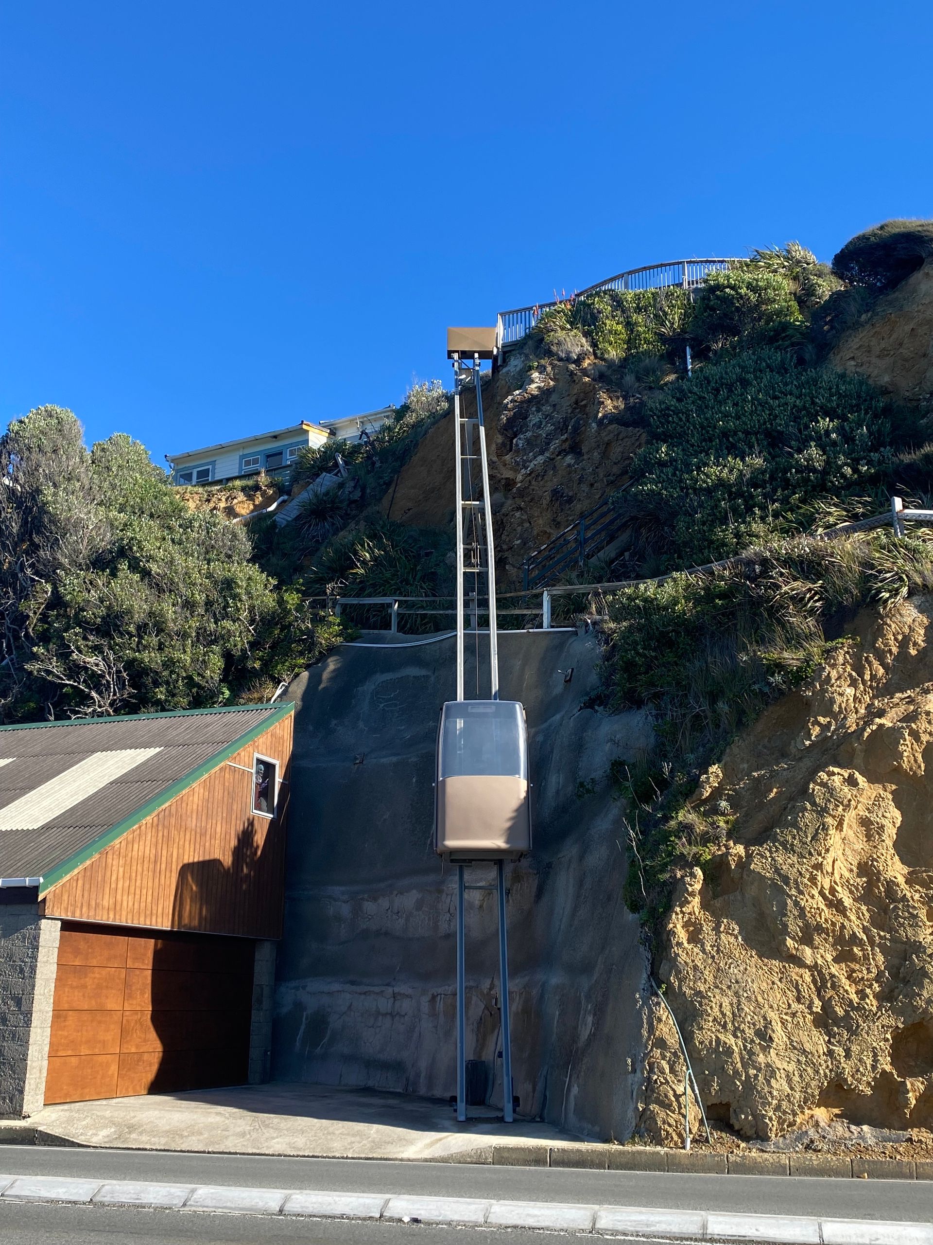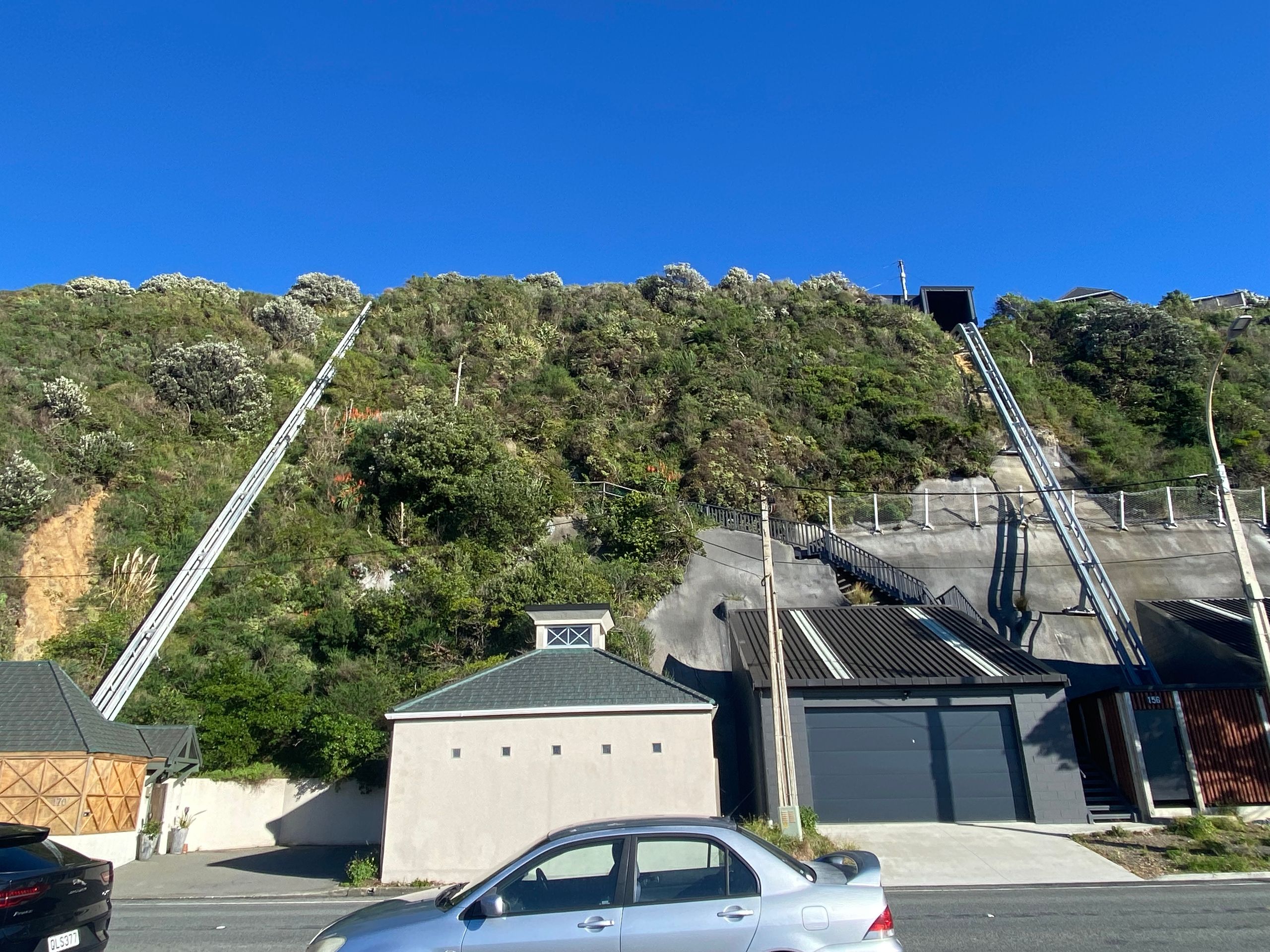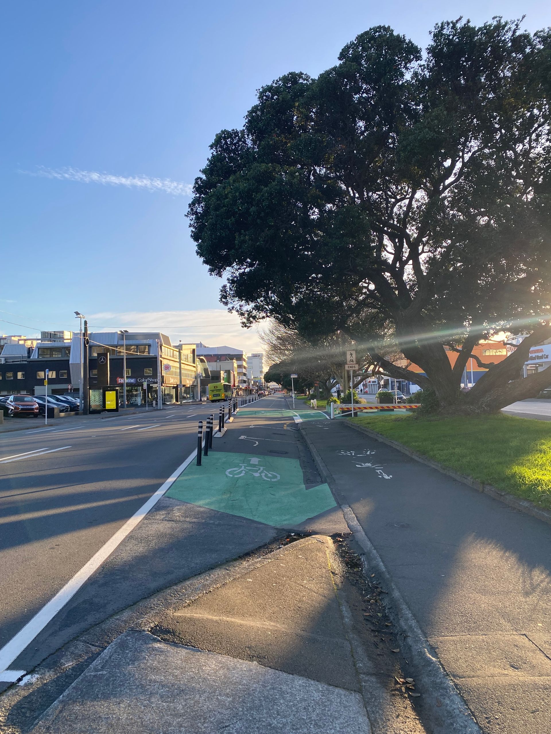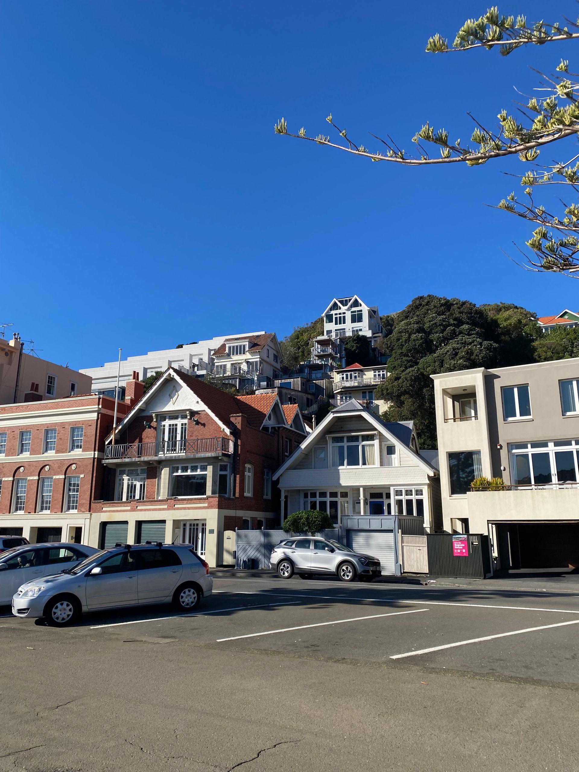 Then, to completely wear myself out, I walked through the Mt. Victoria tunnel and then, as you might expect, up Mt. Victoria. It was okay; it wasn't that high, but I had such a cool view over the city and the sea, a 360-degree panoramic view. On the way, I made a few stops on nice benches and then went down to Oriental Bay. A mega beautiful beach with the skyscrapers in the background. I then walked back along the sea to the camp, and the wind was already blowing before, it's quite windy in Wellington anyway. But on the way, I almost got blown away; it was really hard to keep my balance, I tell you. That was funny at first, but eventually, it got annoying and I still had many kilometers ahead of me. After some time and two blisters later, I was at the car. I later got food for dinner because I can’t cook here.