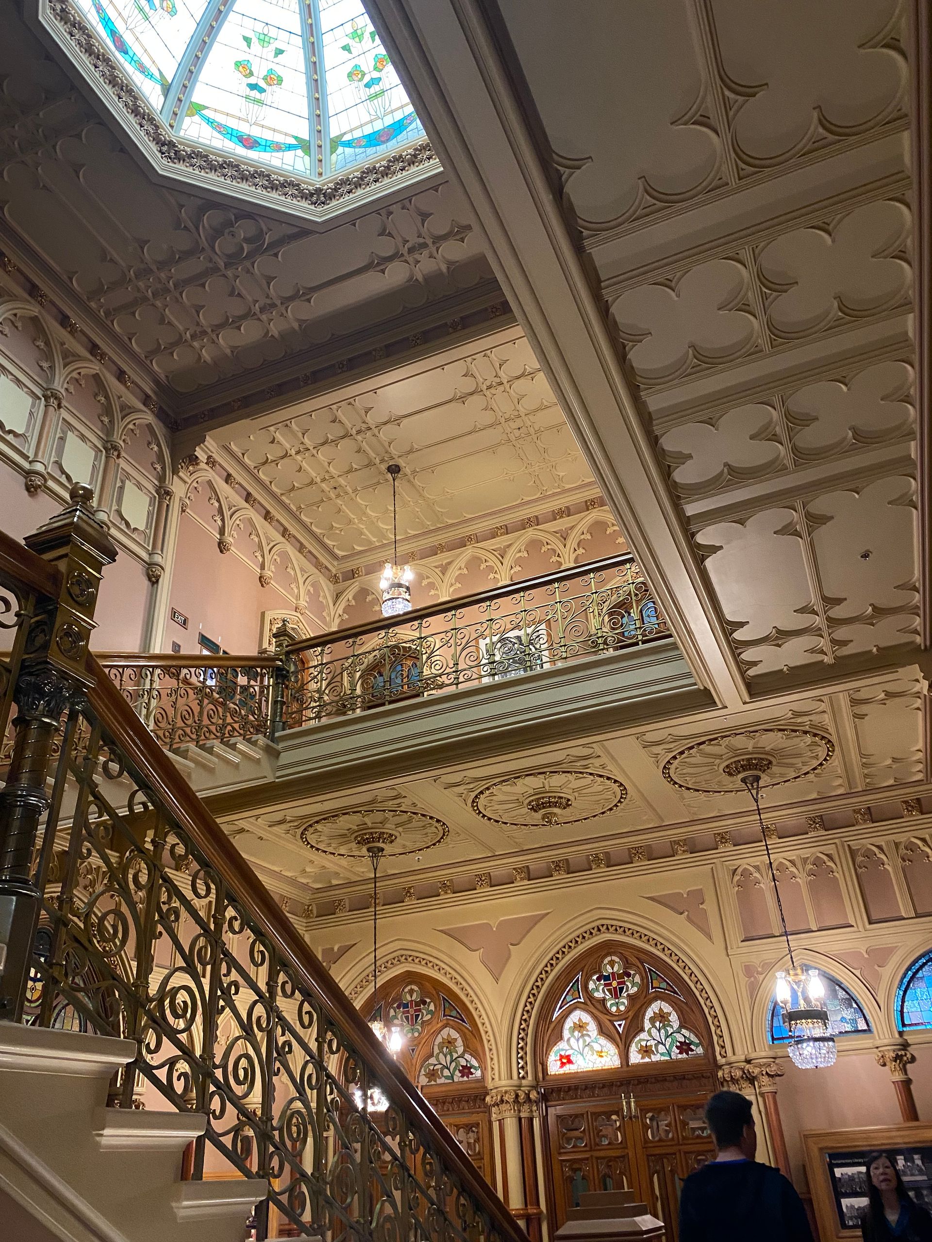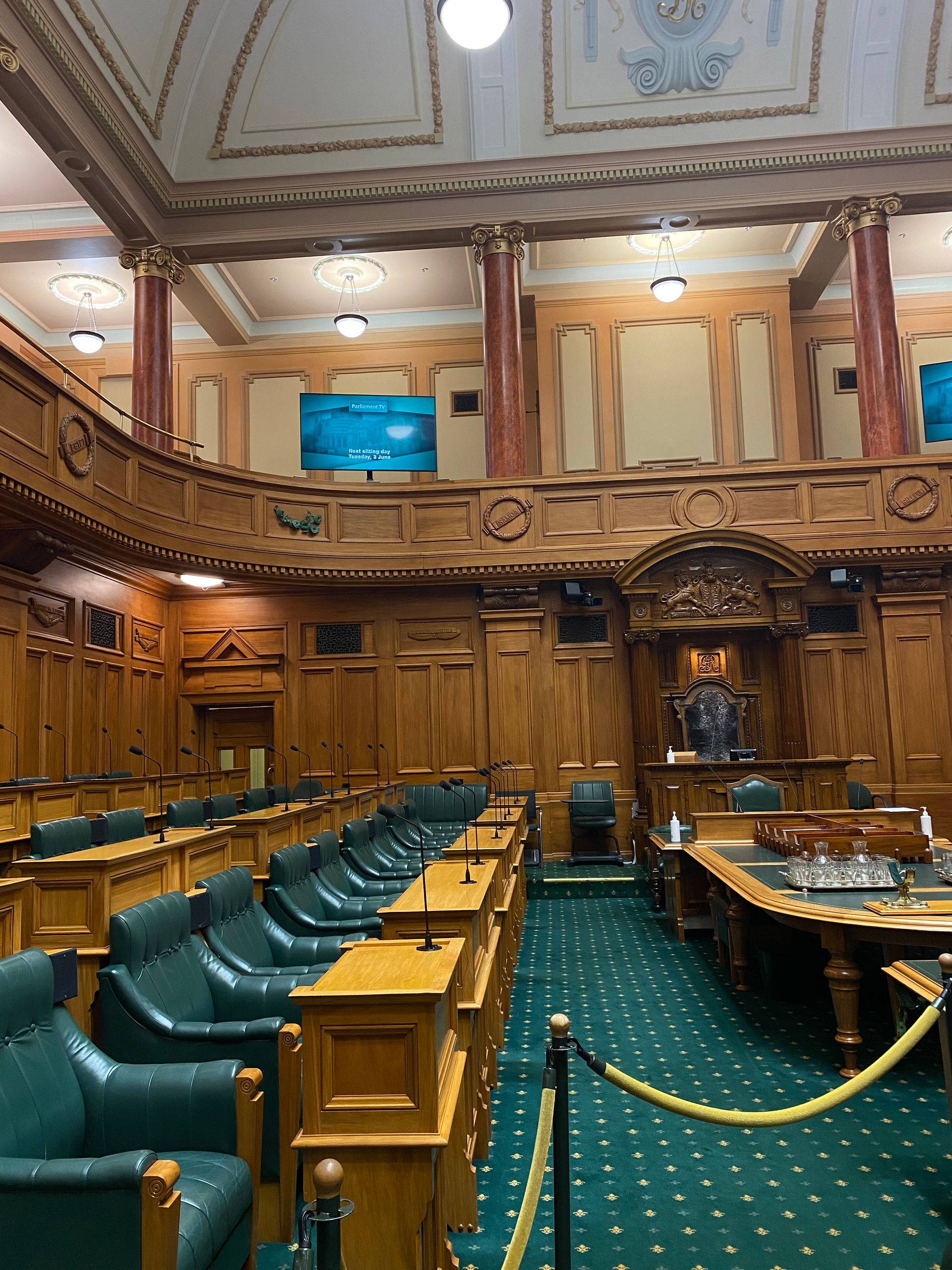 Well, it was probably the night with the least sleep; the parking lot was actually great, but there were some people partying during the night, nothing to say against that, but when you arrive at a parking lot with about 30 campers in the middle of the night, please try to be somewhat quiet. And yes, one of them parked next to me, and after opening and closing his car door 20 times, there was finally quiet again. Well, I woke up around 7 and had time anyway. I really wanted to take the bus, but the weather was nice, the sun was out, so I thought, no, I’ll walk. So an hour and a half later, I arrived at the Parliament, where I booked a free tour. I was a bit early, but it started at 10. I thought you weren’t allowed to take pictures, so I didn’t bring my camera, and then they told us they were now trying to let us take pictures. Well, I had my phone with me. Anyway, it was totally impressive to walk through there, and she explained and showed us a lot. The whole thing lasted about an hour, and then I went to the cable car station, where I first spent 12 dollars. The ride was beautiful, it even went through 2 tunnels with disco lighting, such a vibe. I had gotten a snack before, so I had the red velvet cookie with a view up there; it was legendary, I tell you. Upstairs, I explored the botanical garden, and I love stuff like that, it was really beautiful.
