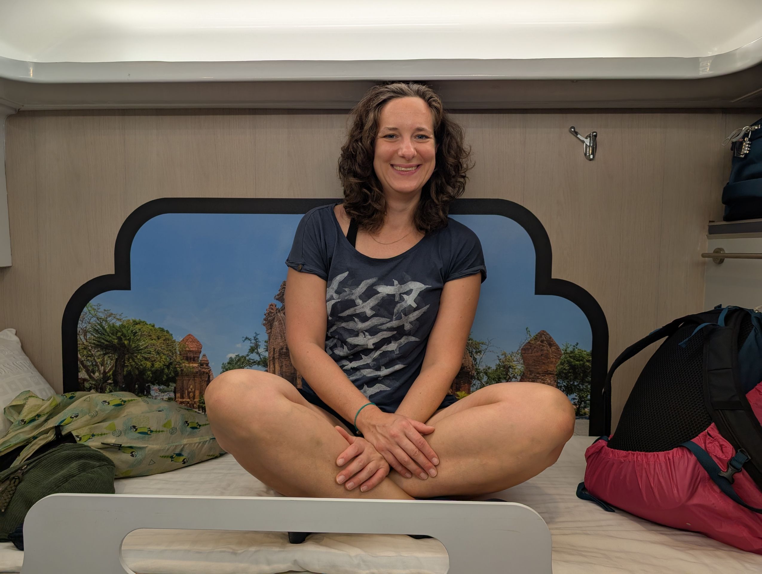 In the evening, we take the night train to Huế – a 13-hour journey that had been predicted to be a hardship for days in advance. In the end, it’s not that bad at all, especially not in the compartments where we affluent tourists travel. A woman regularly rolls through the aisle with a food cart like on the Hogwarts Express – only with dumplings instead of chocolate frogs. I surprisingly sleep quite well – only once am I awakened by a group of Dutch travelers who, at five in the morning, are singing German hits while exiting. Then we arrive – the first coffee stop tries to ease the sleep-deprived tension a little.
