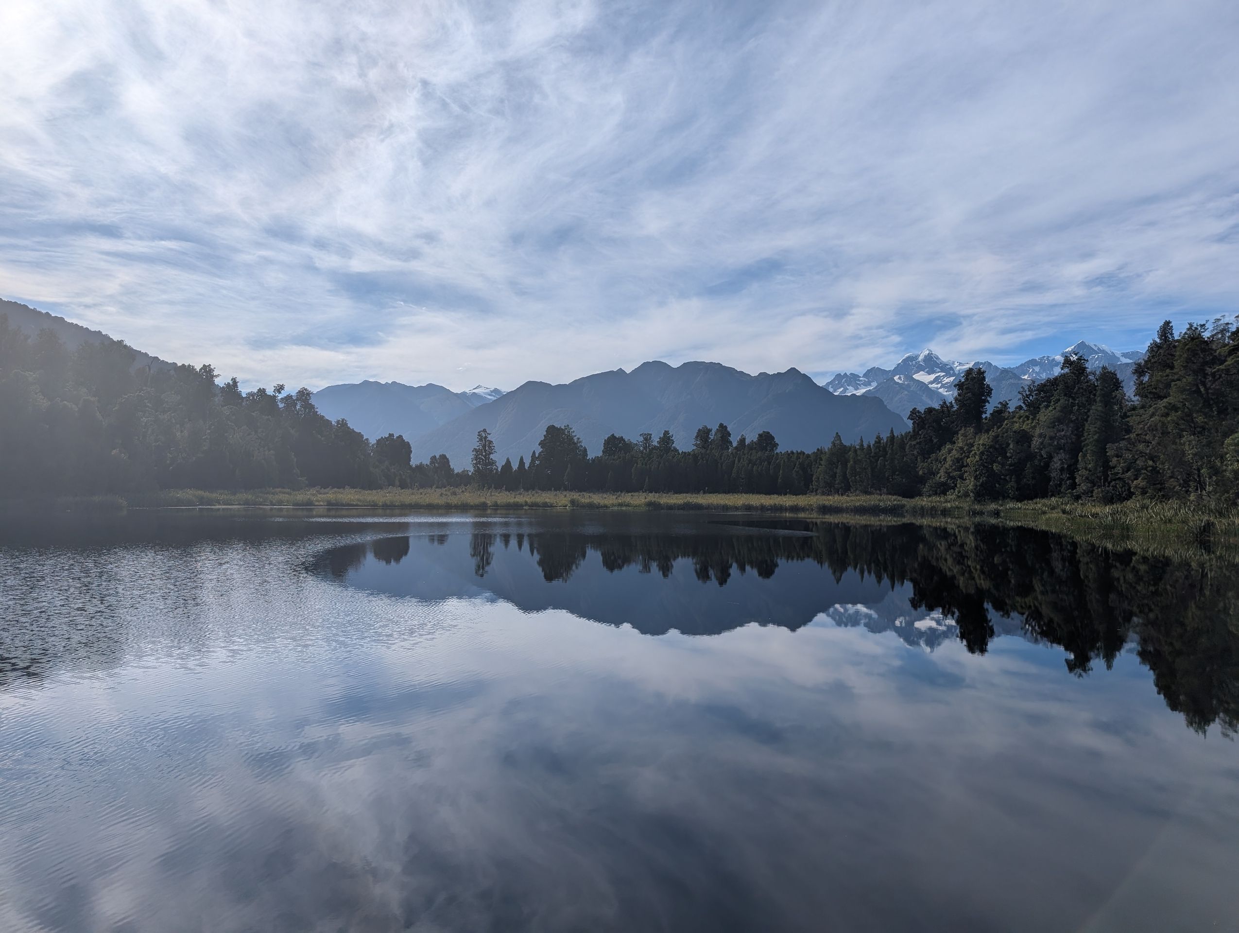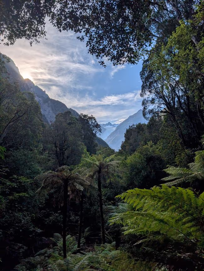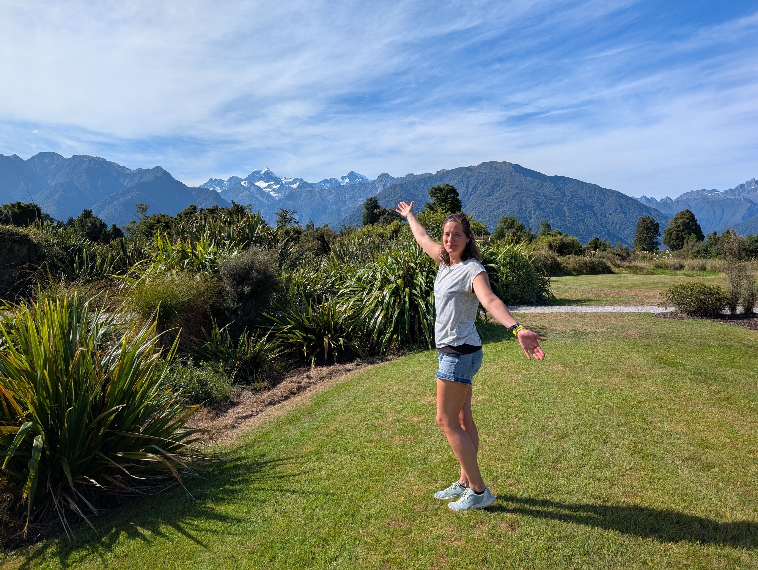 Travel day with stops at the viewpoint for the Fox Glacier, the sea, a waterfall, Mirrow Lake, in Wanaka.