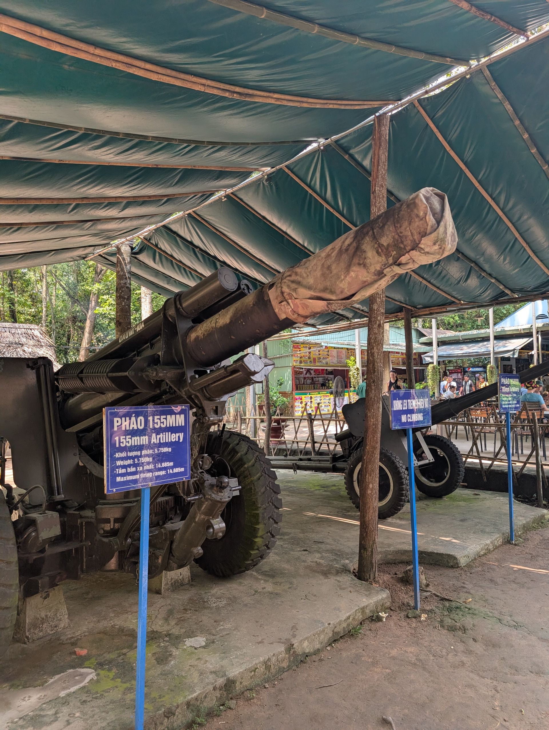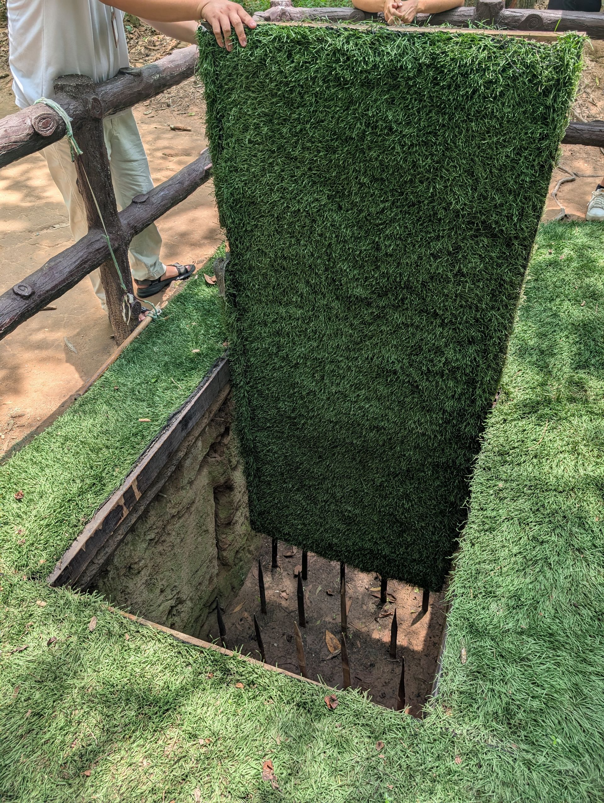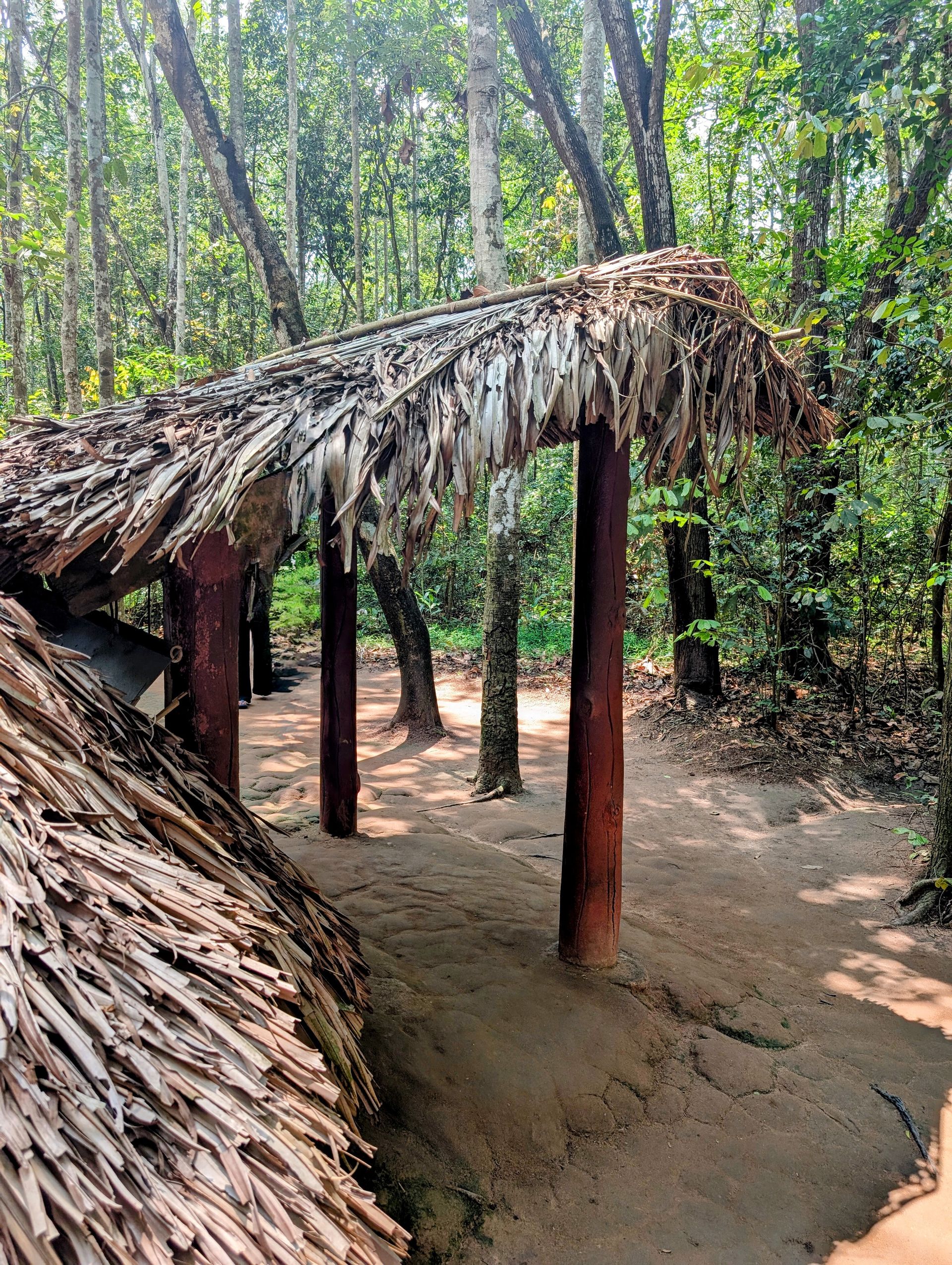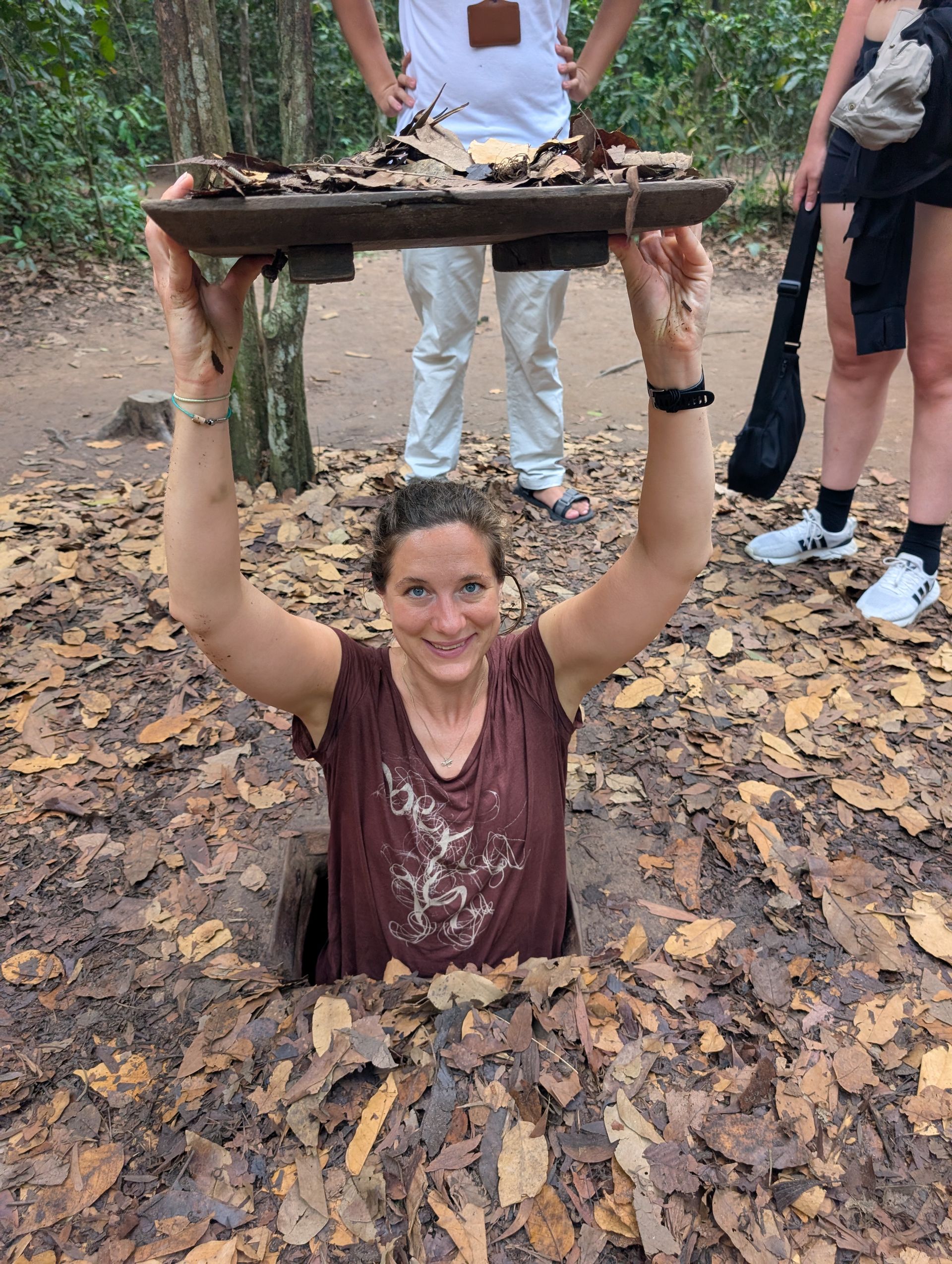 Our guide is enthusiastic about all the trap systems, the tricks of the Vietnamese soldiers, and tells them with a humor and lightness that briefly makes me believe he’s talking about a video game, not about human lives. He shows us his favorite among the primitive yet effective traps – the “Door Trap” – and practically beams as he recounts how the US Army’s shepherd dogs were led astray (I’ll spare the further details). I find it fascinating yet feel uncomfortable, partly due to the gunshots in the background coming from the nearby shooting range. The underground tunnel system, spanning over 200 kilometers, was used as a hideout, supply route, and living space. Today, only about 1% of it is shown – no one knows the complete map. A safety measure, in case it happens again.
