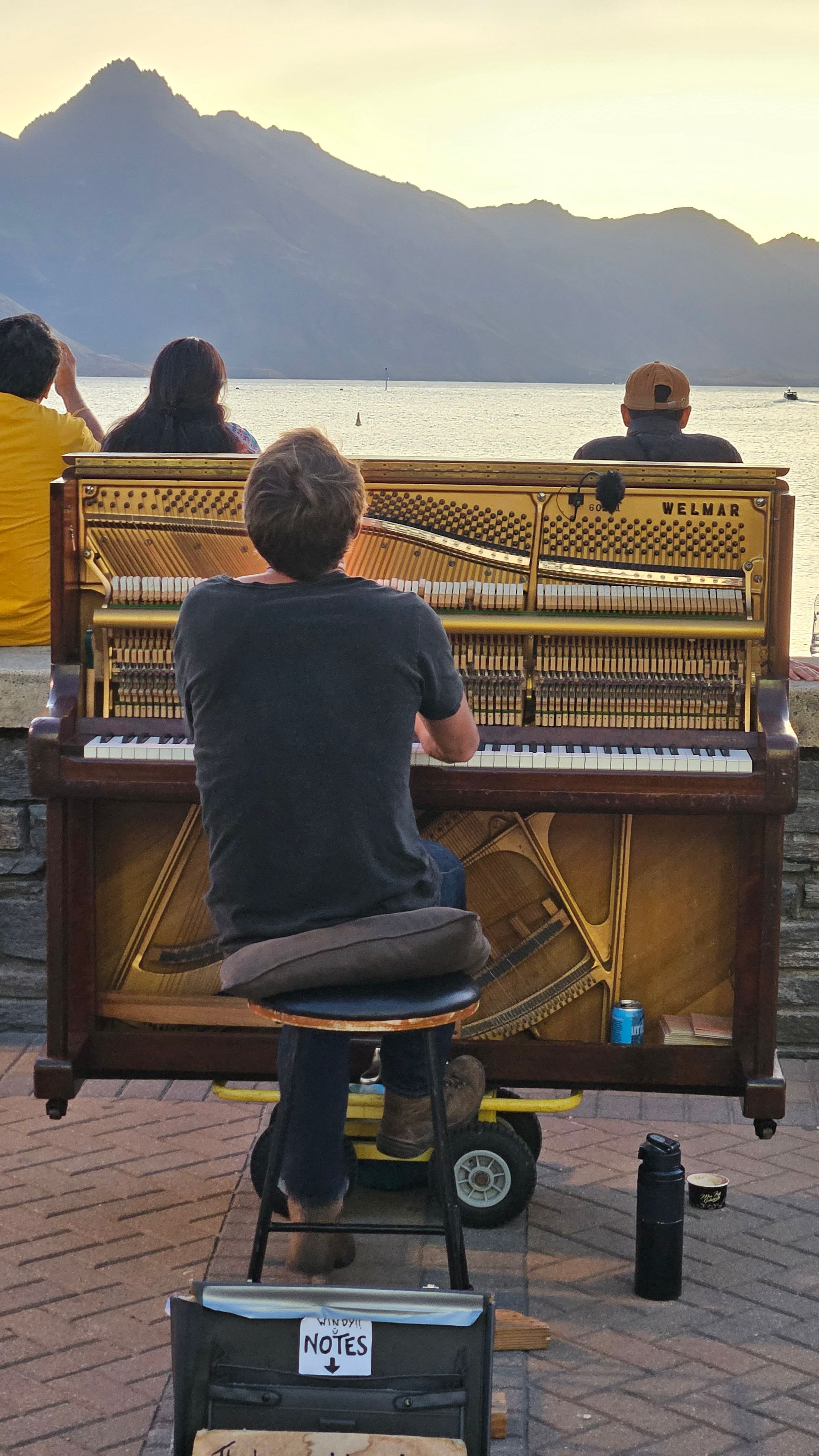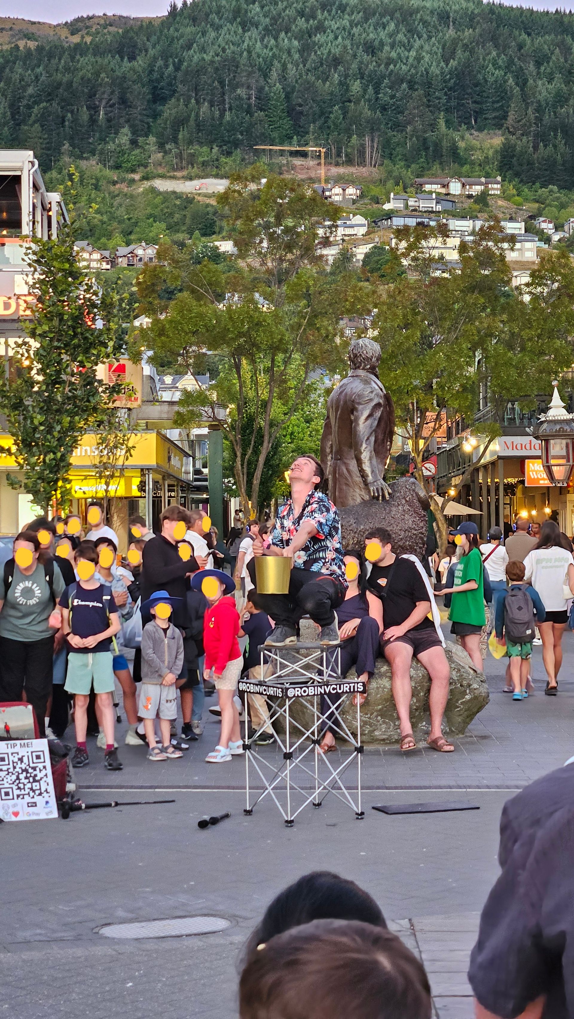 In the evening, like a typical tourist, I stood in the eternally long line at Fergburger for 20 minutes, and after ordering, waited another 25 minutes for my burger, which I then took to the promenade. I watched the street performer again with his program and knew this time what joke would come next before I listened to the pianist play for a while again. Since 95% of the audience is different the next day anyway, it’s fine to perform the same program every night.