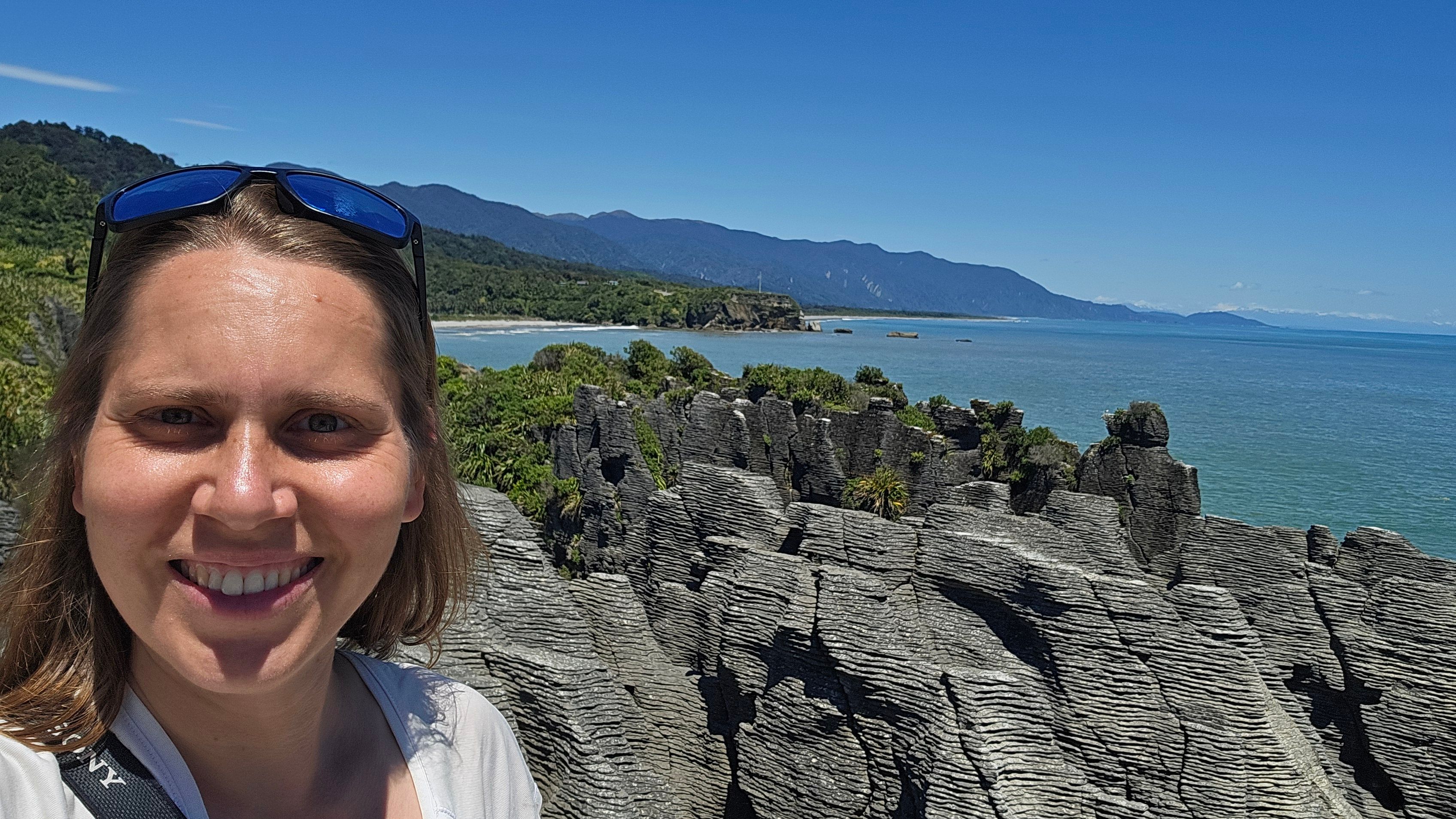 Punakaiki is renowned for its so-called Pancake Rocks: rock formations that look just like a stack of pancakes. It is supposed to be particularly impressive during high tide and storms, as the water sprays through the many holes in the rocks. Although I specifically went to Punakaiki during high tide, I couldn't influence the weather; it was sunny for me (which I usually prefer, but was impractical for this case).