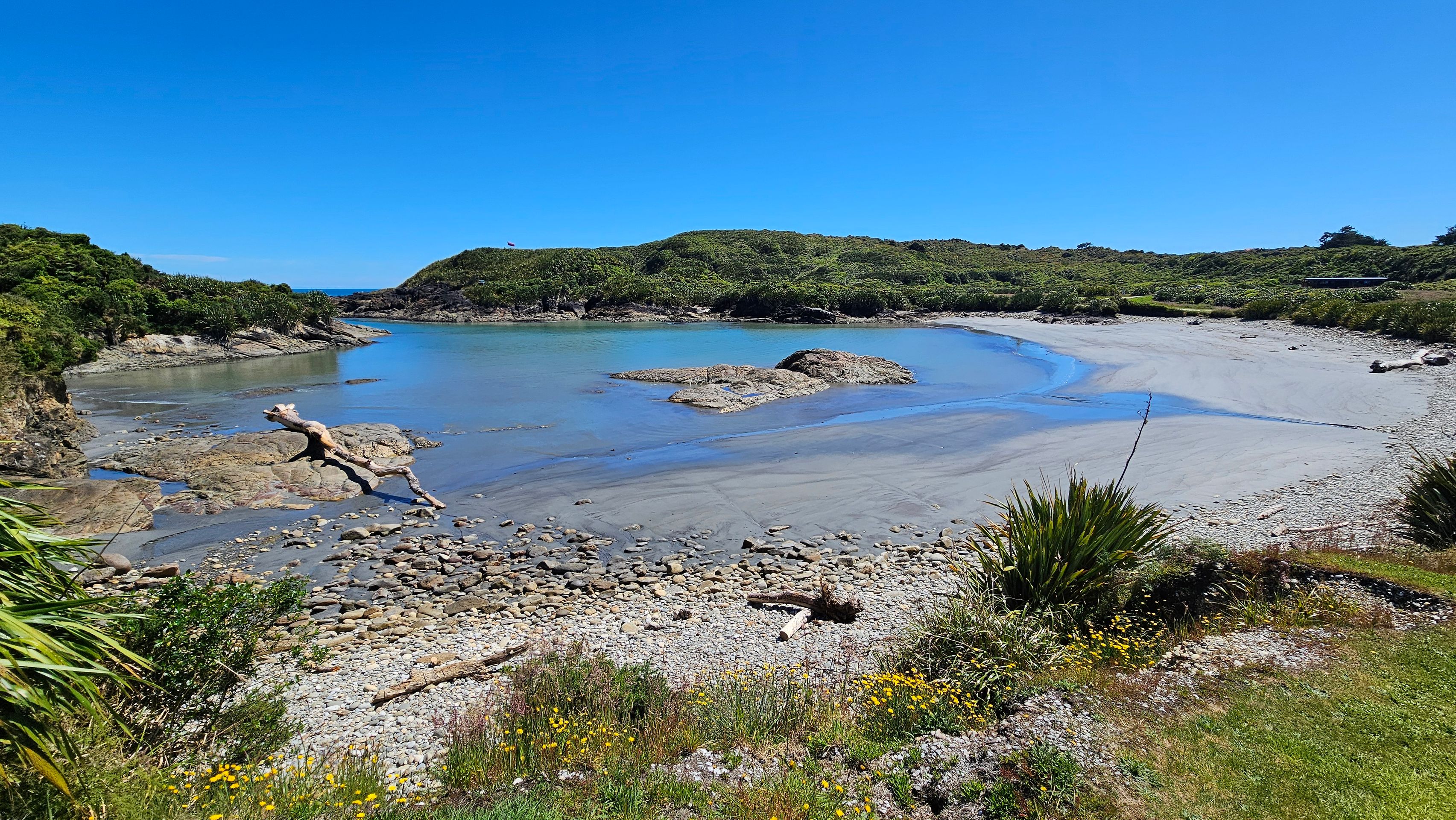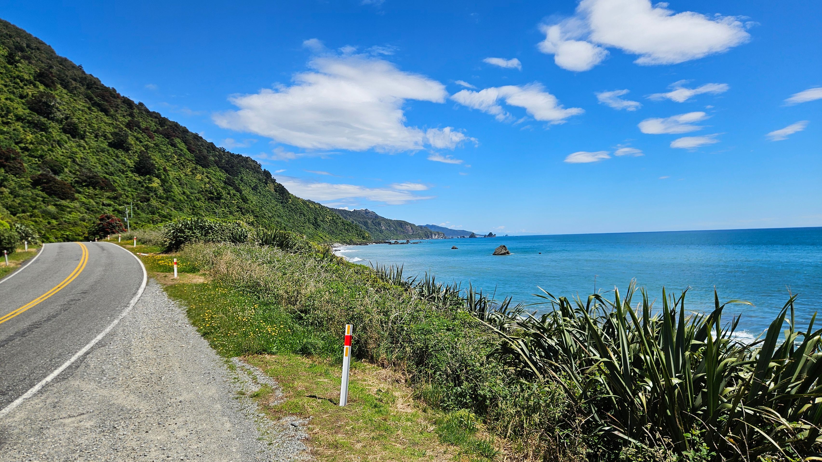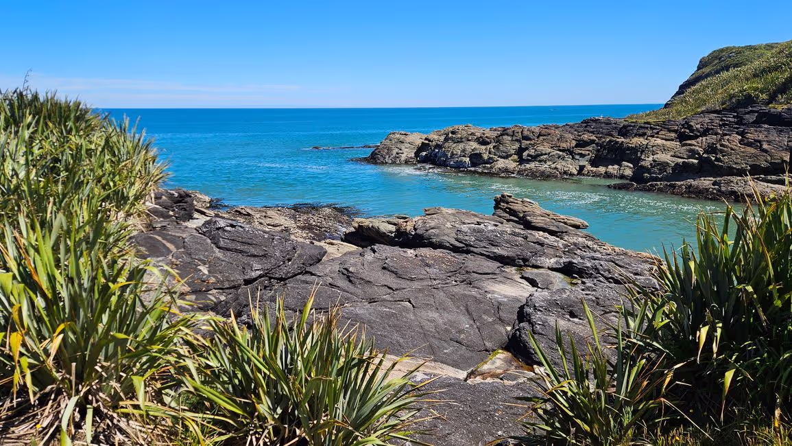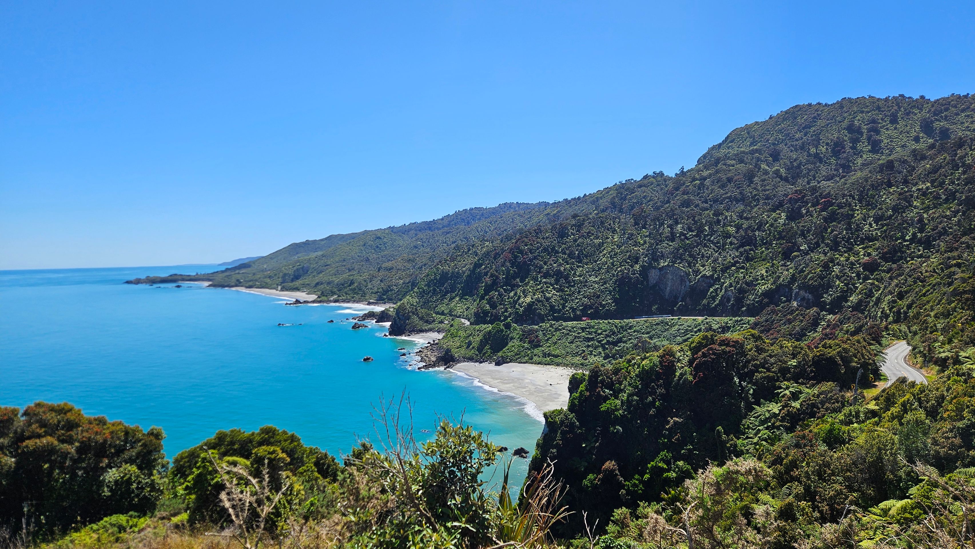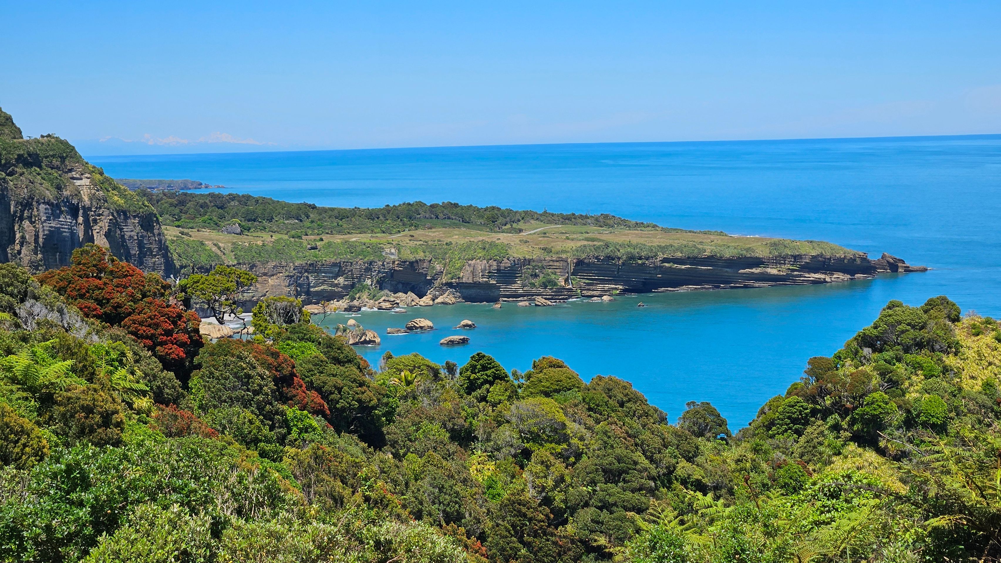 My next major destination from Westport was Punakaiki. However, I made a small stop in Charleston and enjoyed a little stroll at Constant Bay, where I had a great view from the Irimahuwhero Viewpoint overlooking the bays. At least before the Kiwi Explorer bus arrived and unloaded a busload of people. I decided to seek some distance after that.