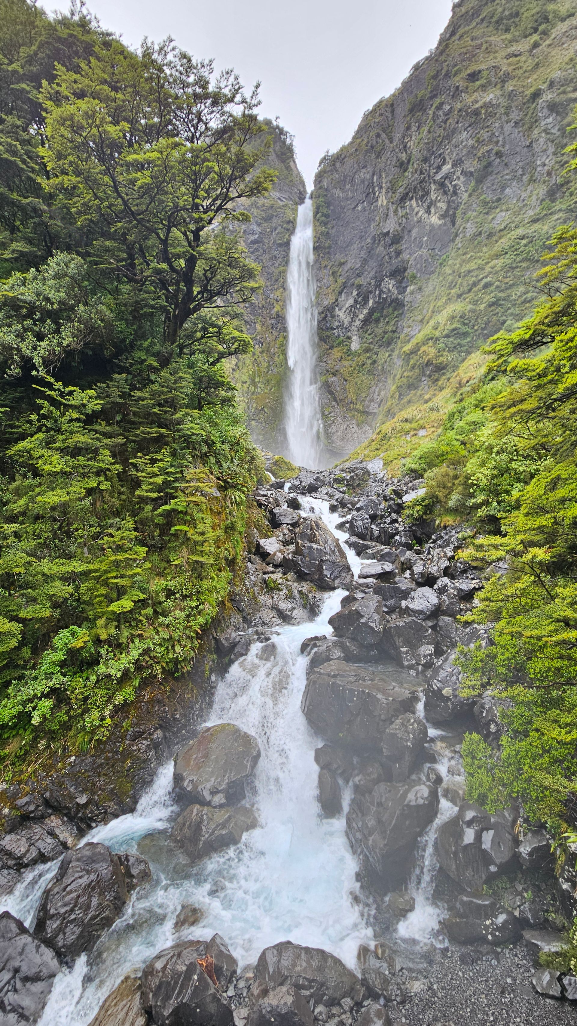 At night, I realized that I was simply a day too early; it rained heavily all night. I even briefly considered going back to Punakaiki but ultimately decided to stick to my plan of driving over Arthur's Pass to Christchurch.
