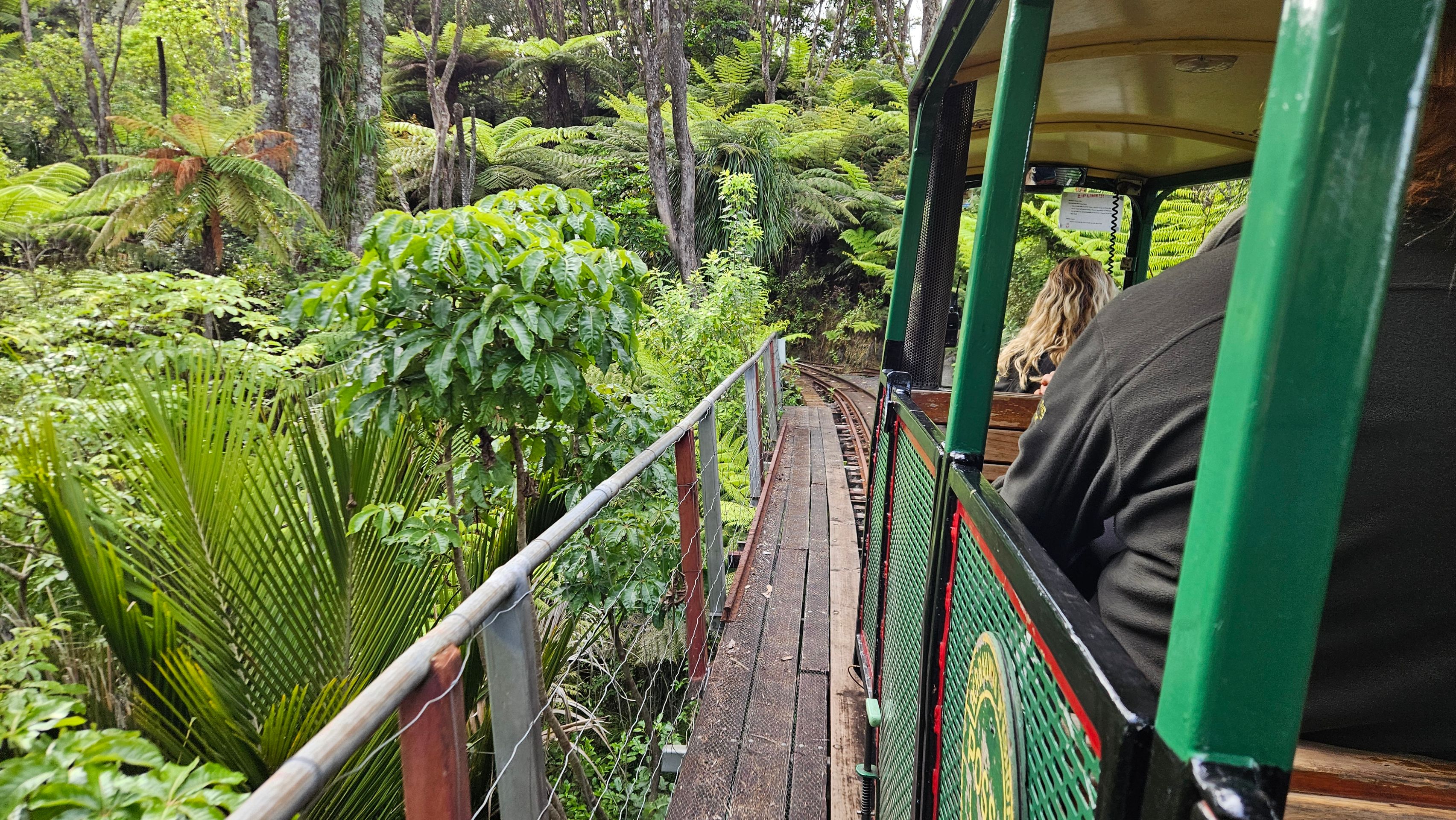 After breakfast, I visited the Driving Creek Railway. This was built by Barry Brickell, the first Kiwi to work full-time as a potter. He bought the mountain in 1961 because it had excellent clay and built the railway to transport clay from the mountain to his pottery workshop. Even today, you can participate in pottery workshops there, ride the train up and down, or take the train up and then the zip-line on the way down. I chose the latter and had a great time with a South African couple who have been living in Auckland for several years!