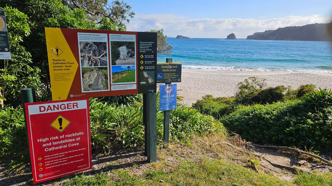 When I woke up in Coromandel the next morning, I saw someone from the district checking whether all campervans had a Self-Contained-Camper sticker. Luckily, everyone had the sticker and was parked in the designated Freedom Camping area. If you don't have a sticker or are not in the Freedom Camping area, you can be fined $400 immediately. Just the night before, there had been an issue with two 19-year-old girls who were parked in the Freedom Camping area but didn't have the sticker. A Spanish woman became quite upset because she couldn't find a place in the designated area with her huge motorhome. In the end, nothing happened, and I believe that the girls would have made space if the Spanish woman had been a bit more diplomatic and hadn't immediately resorted to Spanish insults and threats of calling the police.