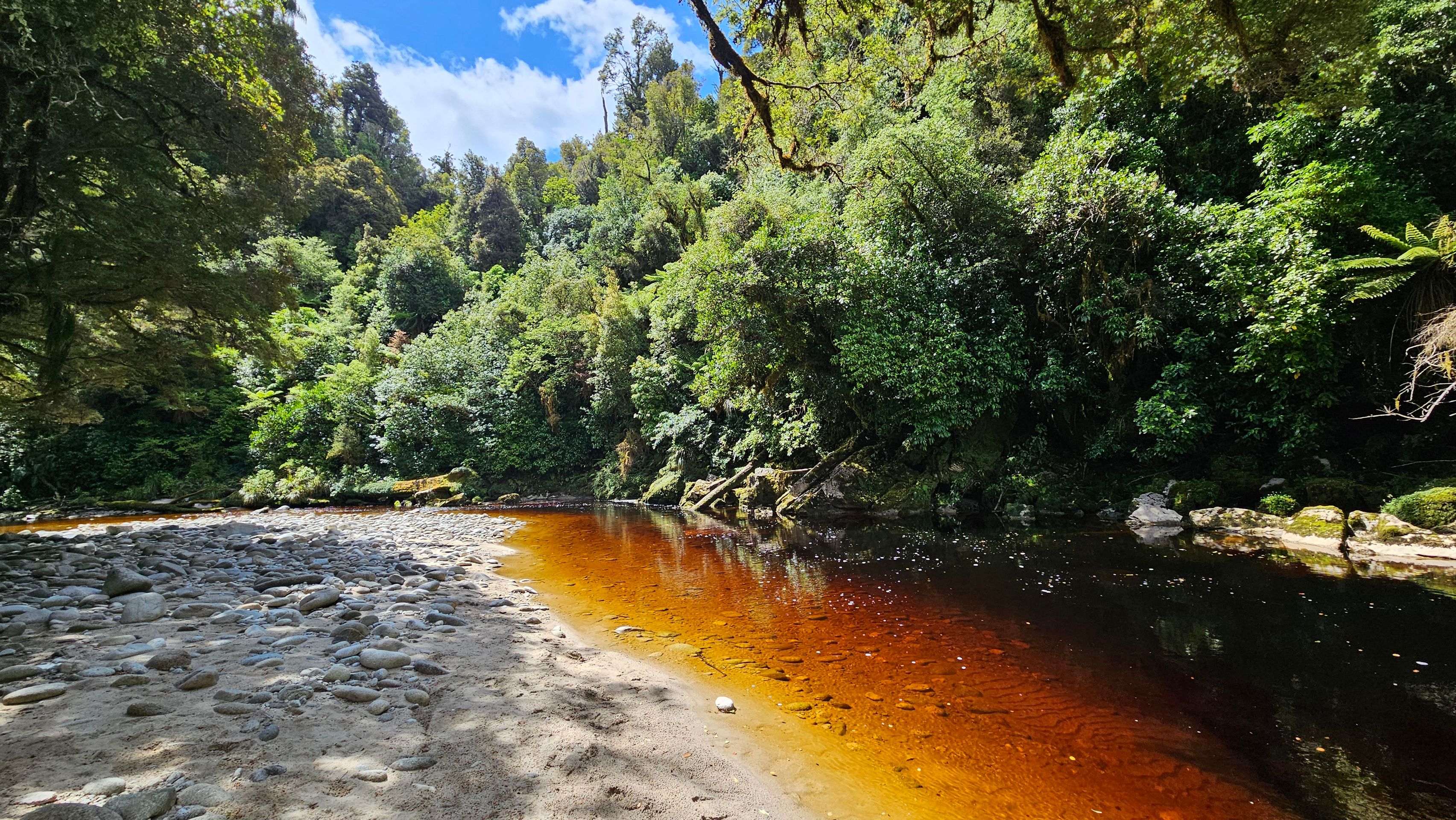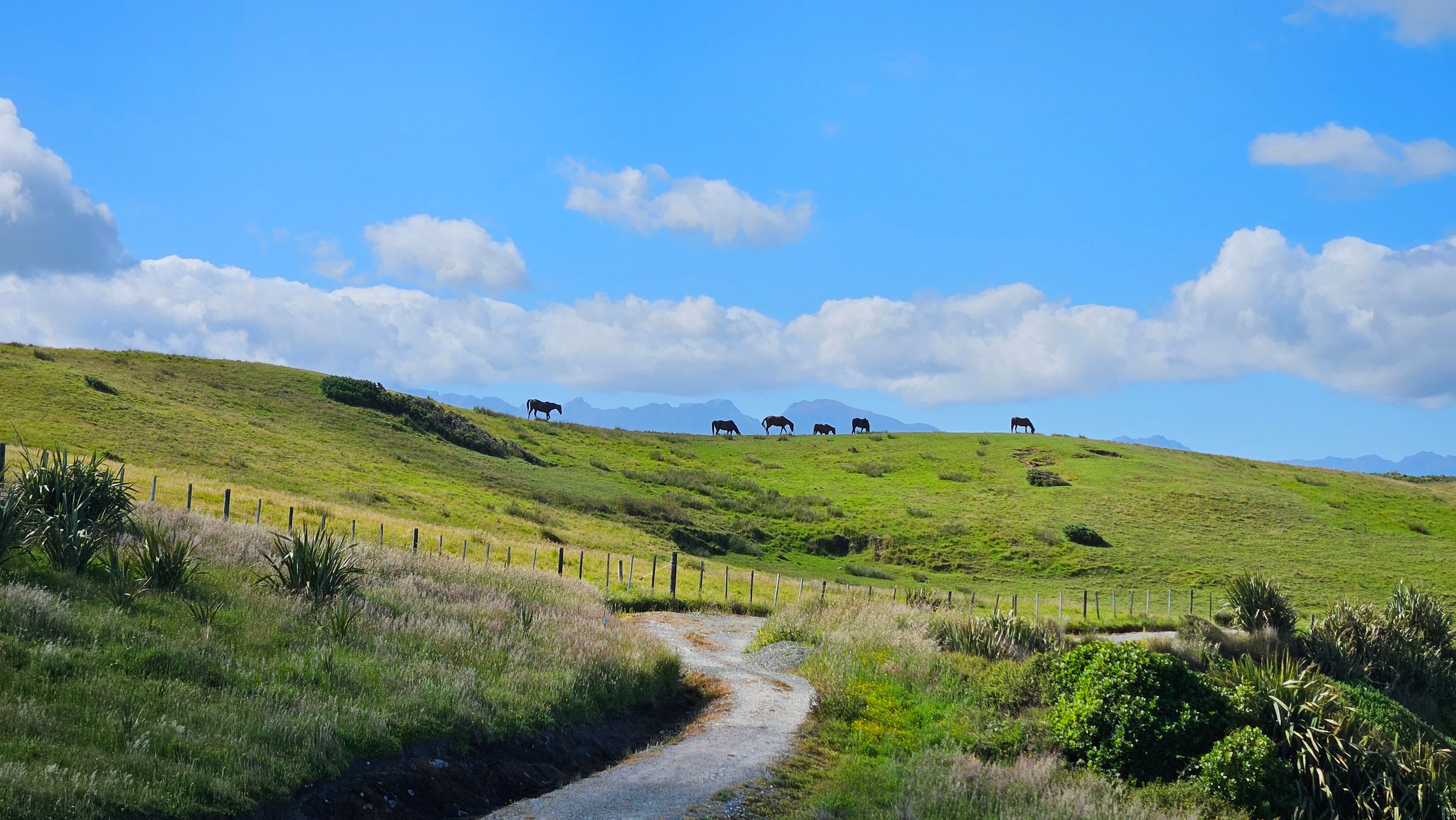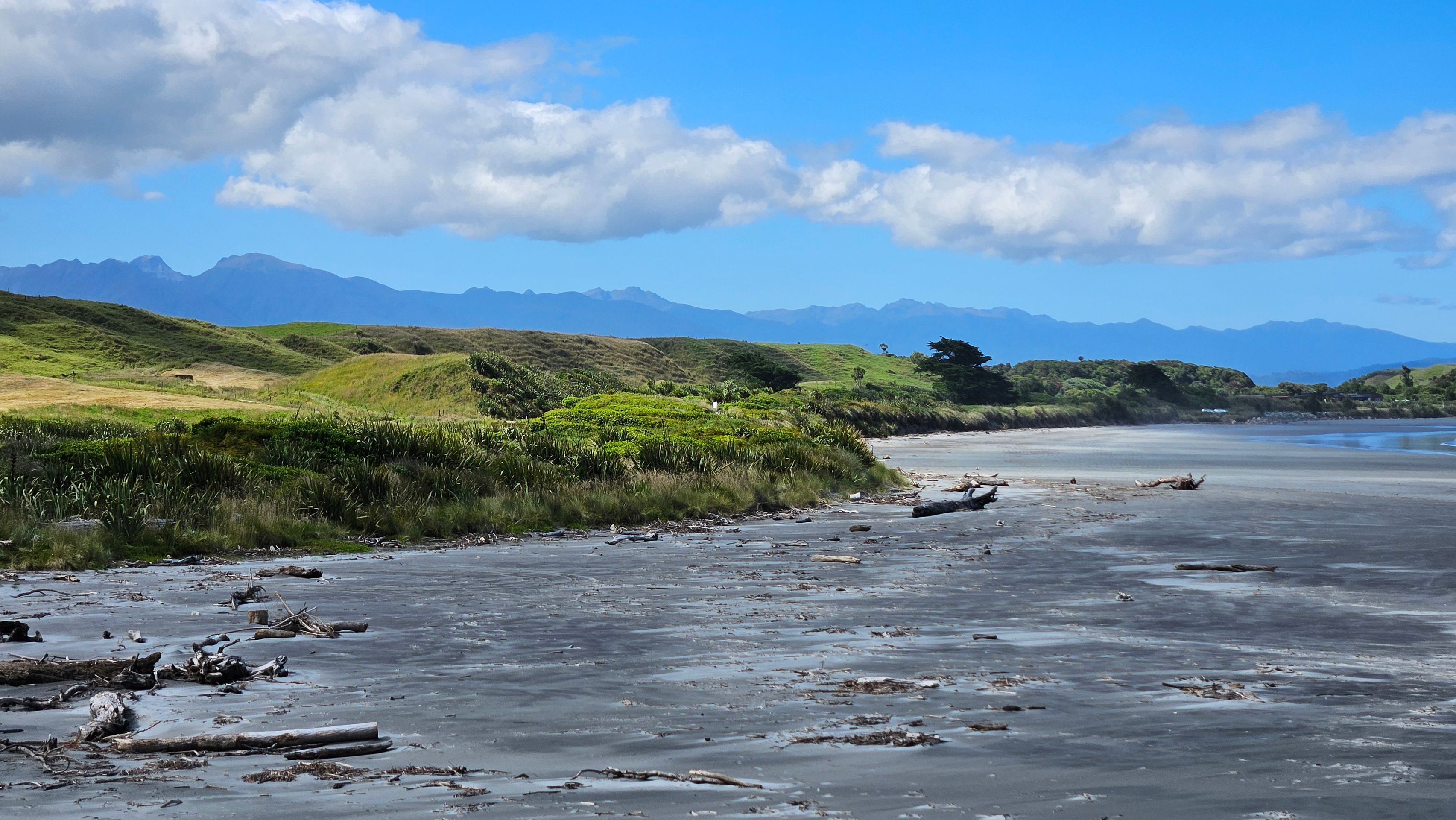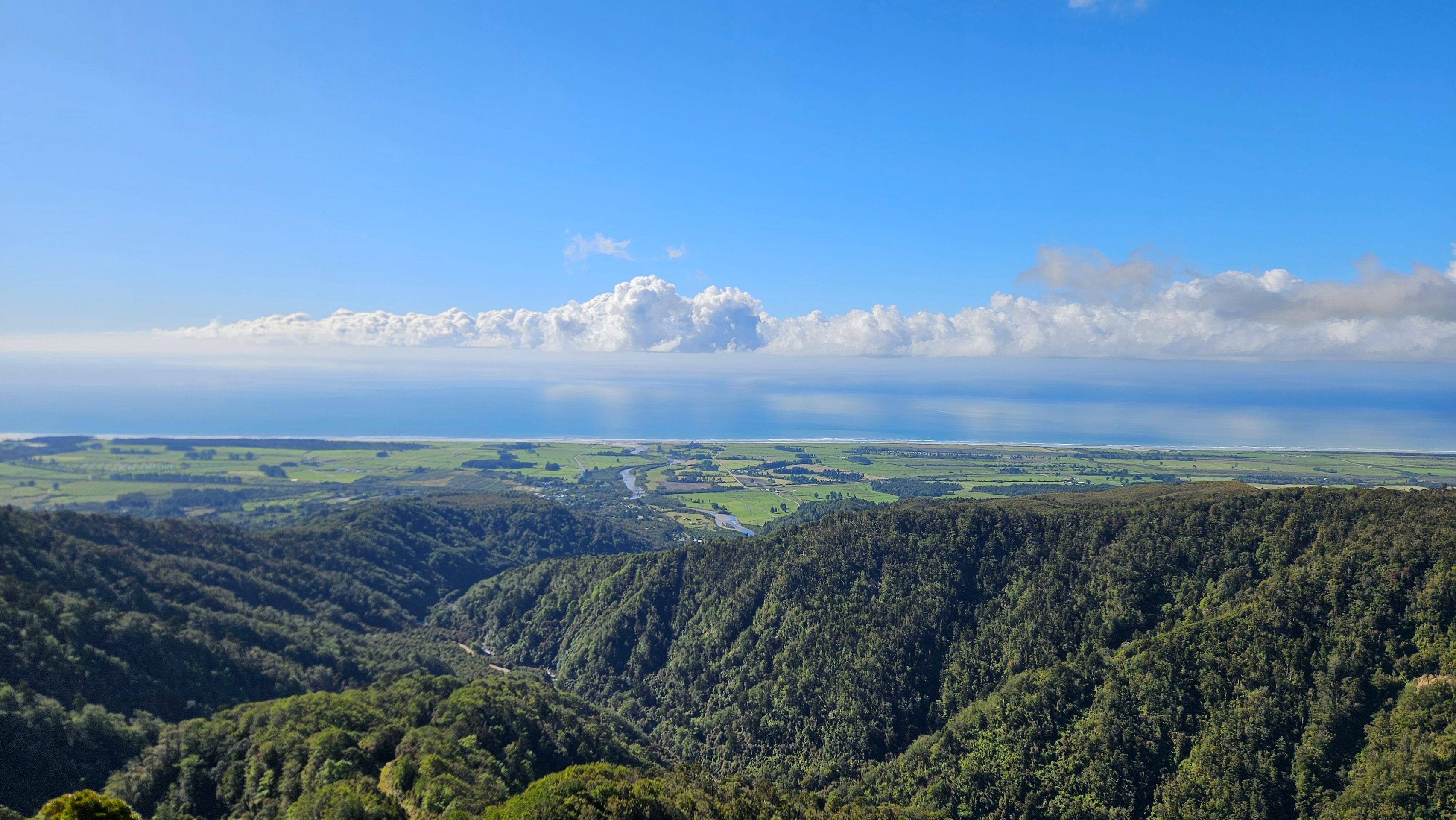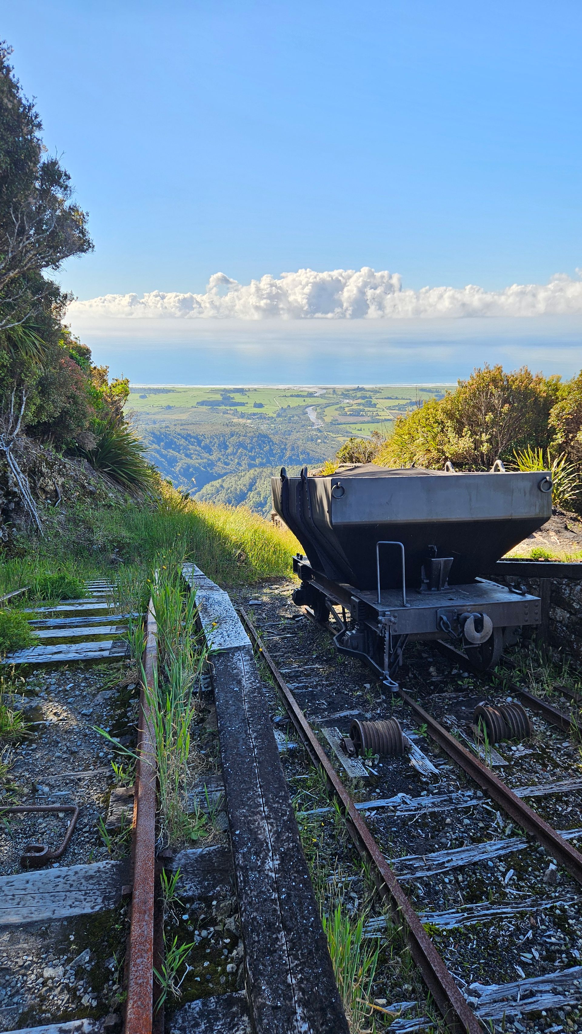 A few kilometers before Westport lies the former coal town of Denniston, from which Ken's parents come. Denniston had a gravity-powered incline railway that transported over 1,000 tons of coal daily from Denniston and the surrounding coal mines at a speed of 70km/h. Denniston can be accessed via a 10km winding road, which involves overcoming 600 meters in altitude and offers a great view all the way to Westport in good weather. Apparently, no one wants to be there in bad weather, and since the weather on the west coast is very changeable, following the motto 'When you can see the mountains, it will soon rain; when you cannot see the mountains, it is raining,' we took advantage of the nice weather and paid a short visit to Denniston.