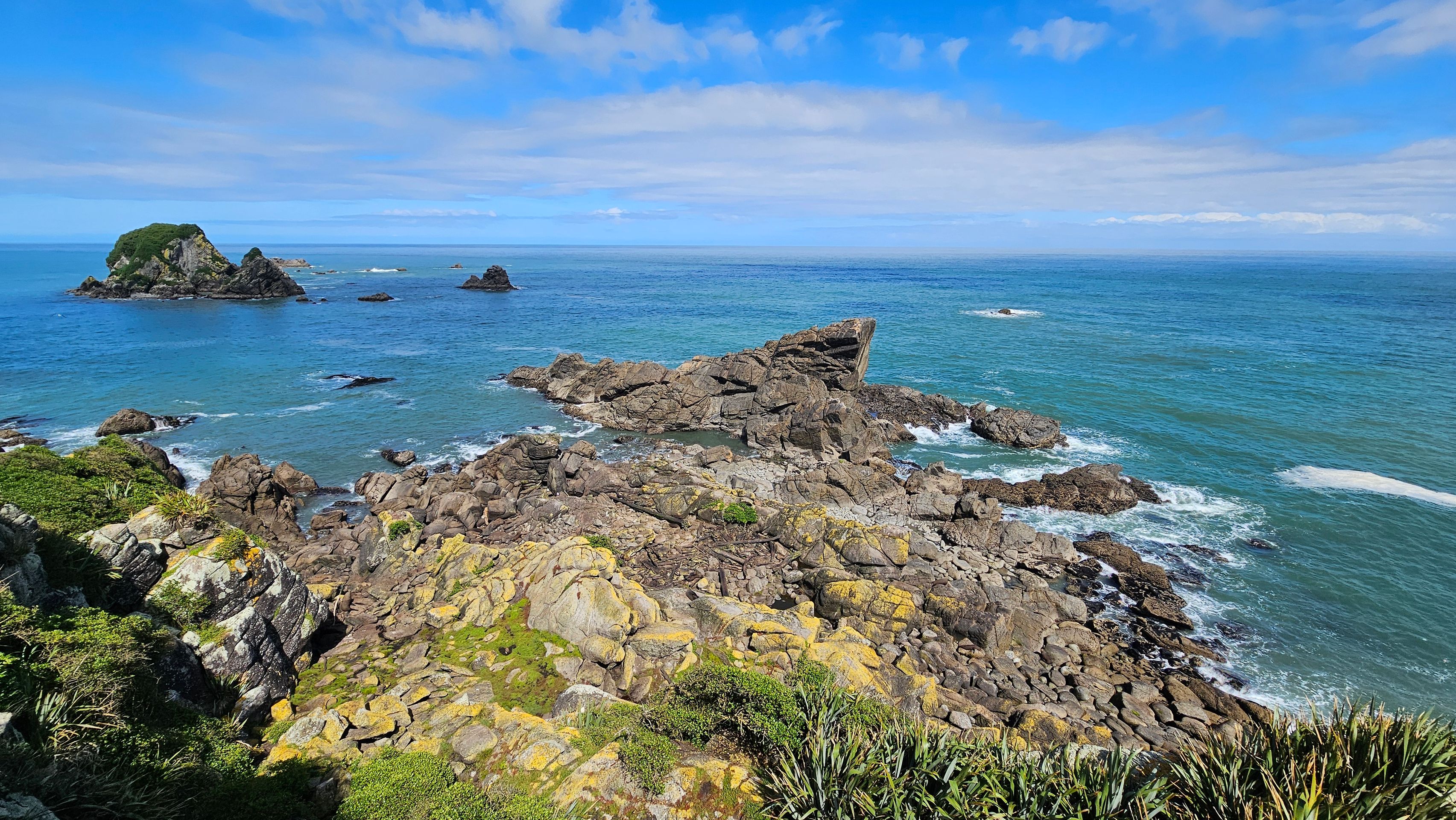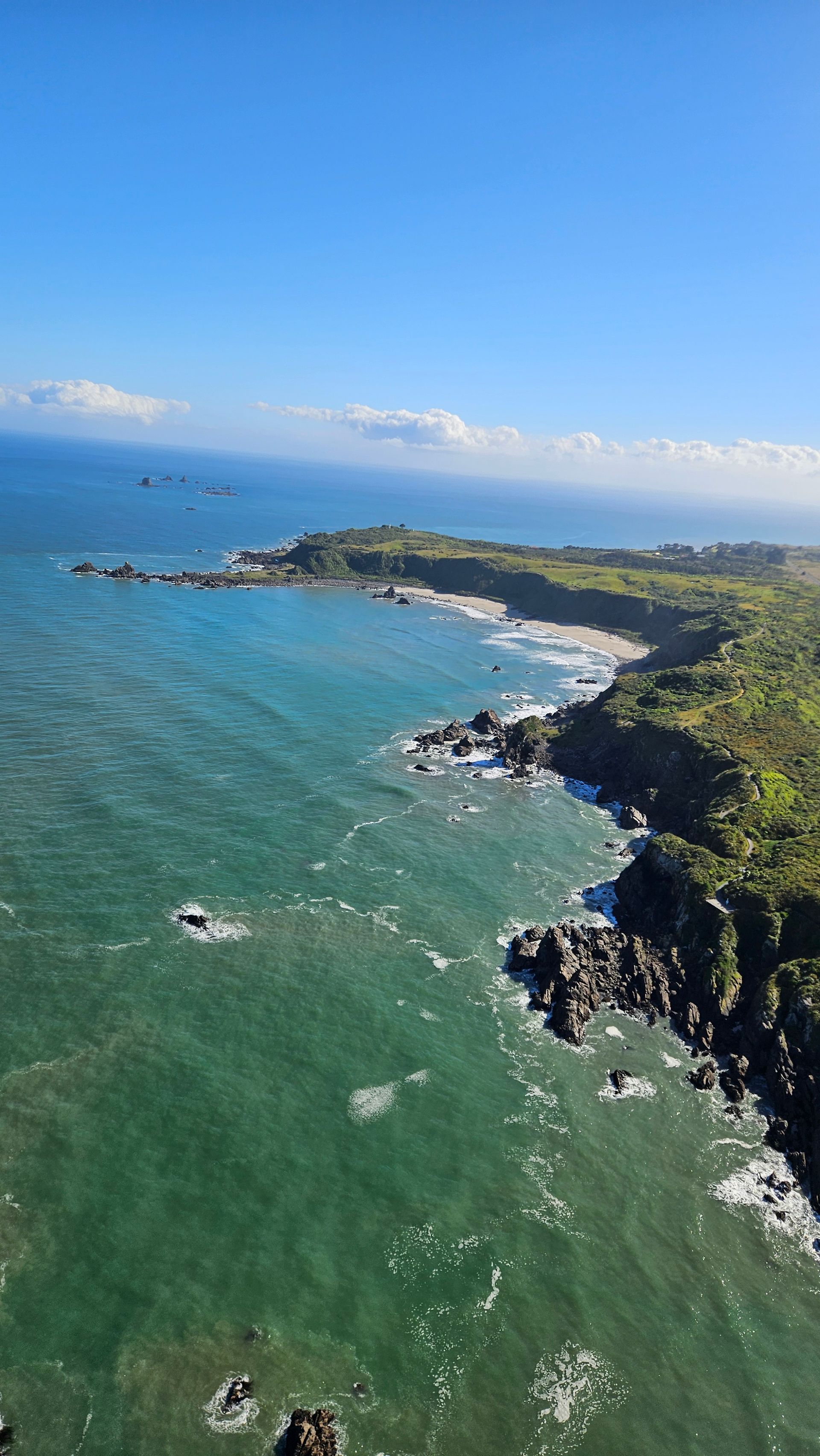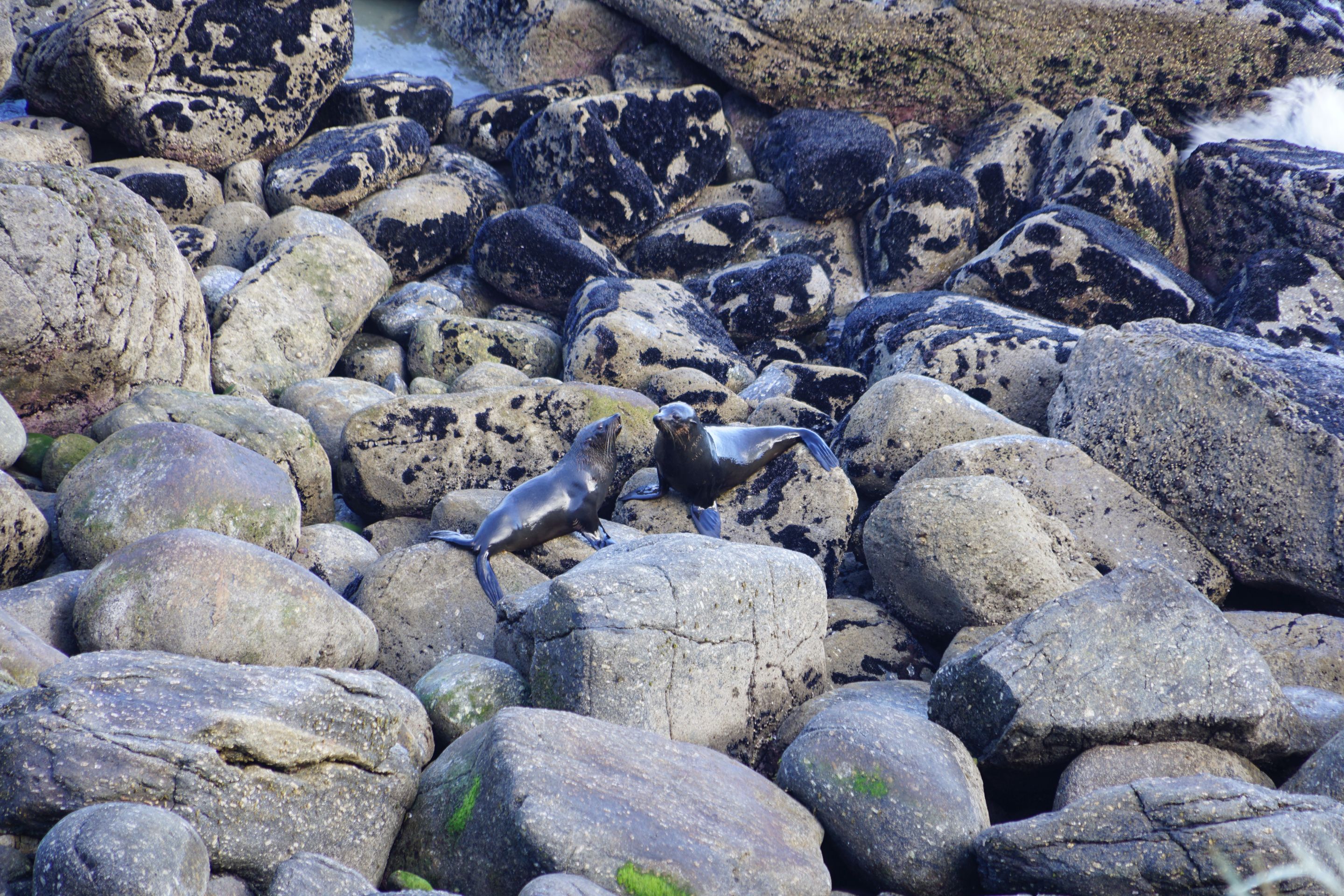The next day, I visited Cape Foulwind and Tauranga Bay twice: the first time on a flight with Rob, a friend of Ken's, in his microlight plane, and the second time on foot with Ken. The cape got its name from Captain James Cook, who likely had to contend with terrible weather there in 1770. However, the seals seem unaffected by the weather, and we even managed to spot several baby seals.