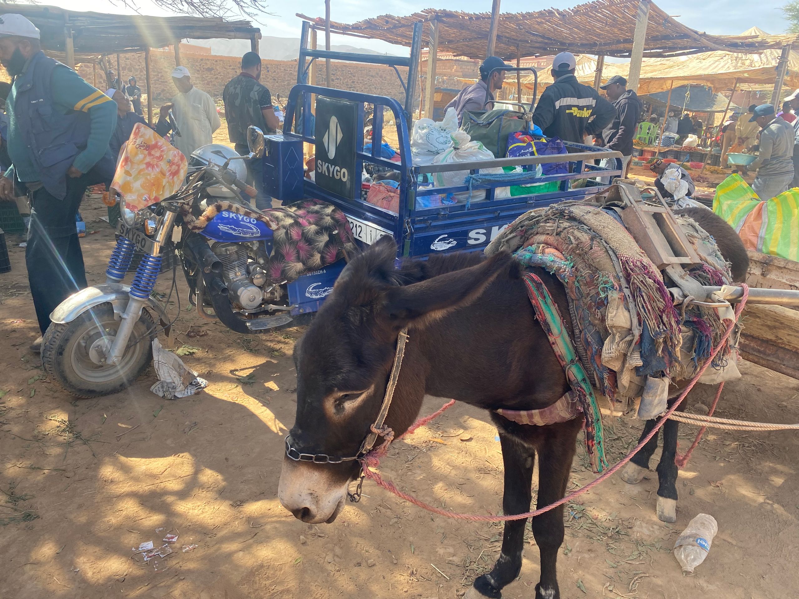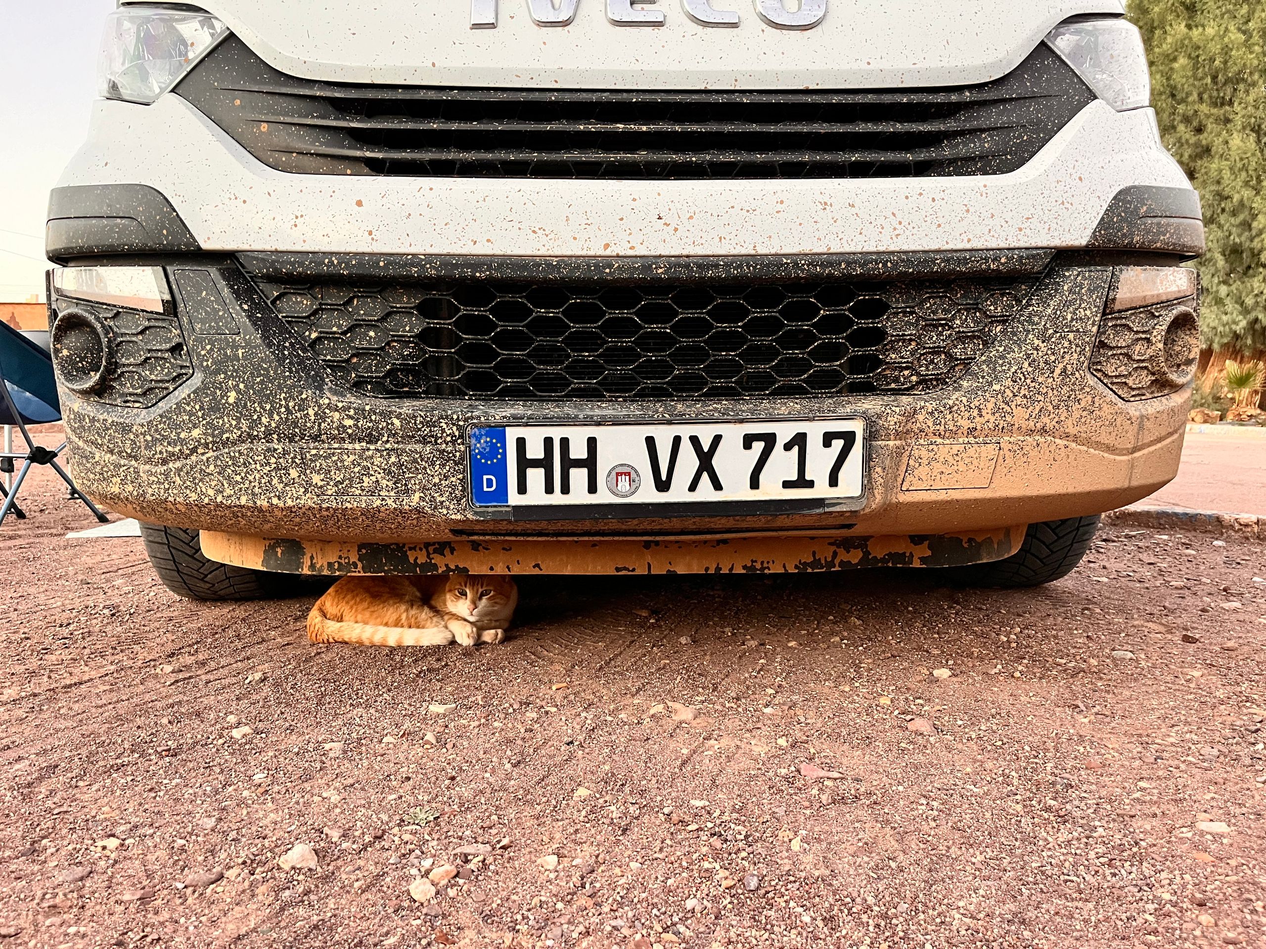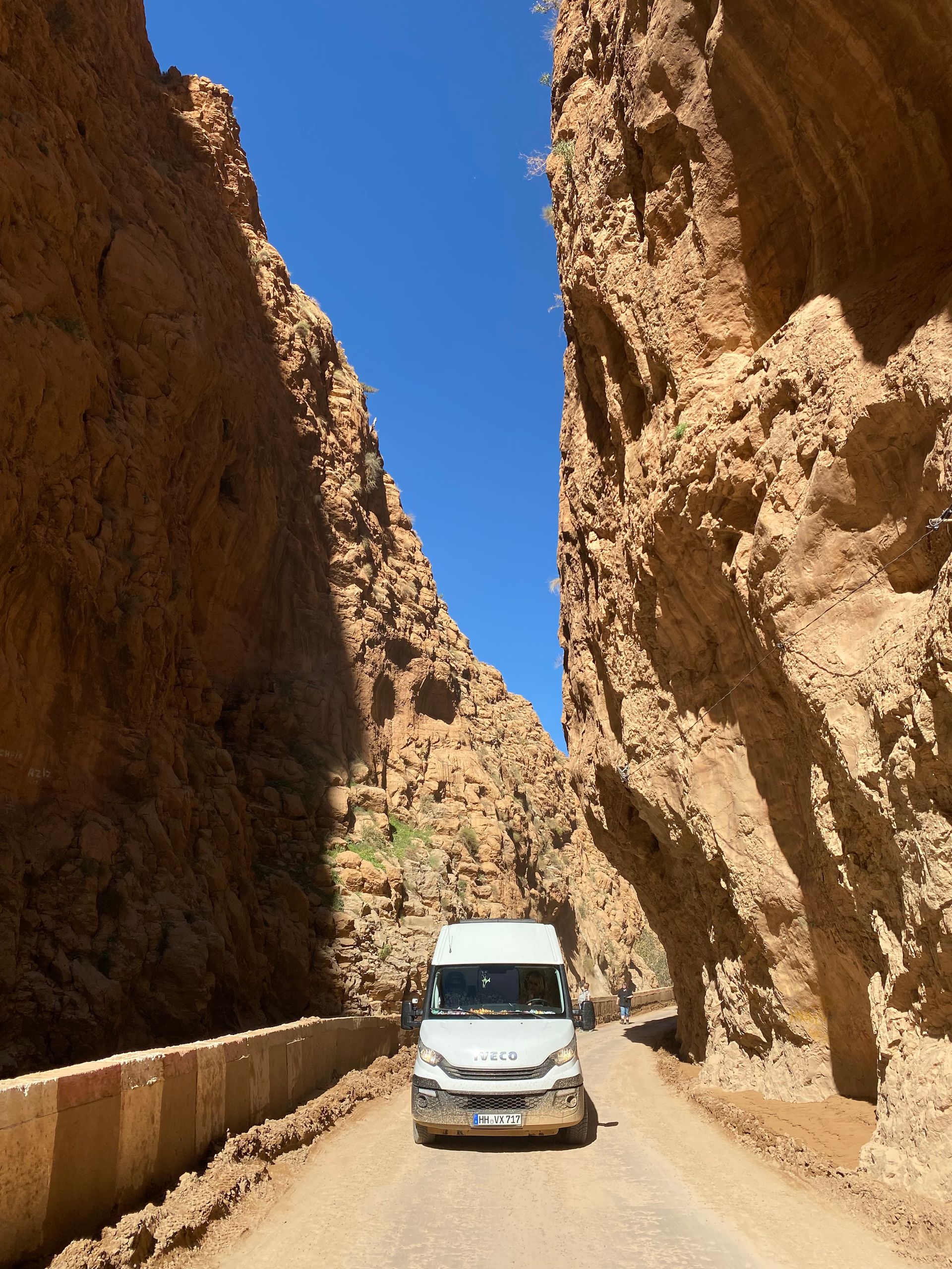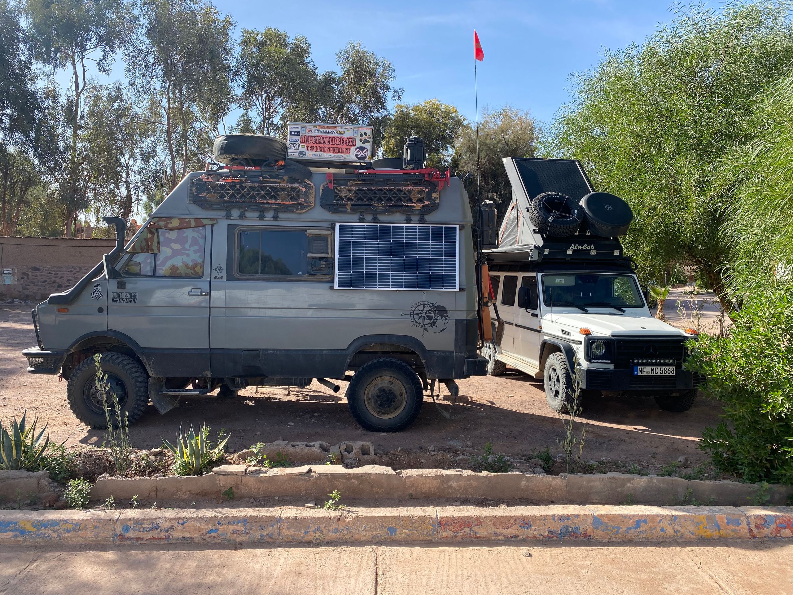 As we drive through the small town of Touroug, suddenly boys run into the street and signal us to turn left off the main road onto an unpaved path into the Medina. They say that the road ahead is blocked due to flooding, and we would need to take a detour. We are a bit skeptical and initially continue straight ahead. In fact, the entire road is covered with a muddy sludge about 10-20 cm deep, but it is passable for us. Afterwards, Betty is splattered in mud and looks like a real expedition vehicle. Later, we regret not trusting the boys. We spend the night at a city campsite in Gawaz. This is also Morocco, where the sanitation facilities look as if they haven't been cleaned for months or even years. But the 'manager' wears a tie and a suit... However, one can also find very well-kept campsites. The same goes for the cities. Some cities in Morocco are completely littered, while the next town just a few kilometers away is clean. Is there an engaged municipality? We haven’t found out. Of course, we also meet other travelers in Gawaz that we already know. This time an older couple from the Netherlands with their 4x4 camper, who run a campsite themselves in the Netherlands. Smartly, they close it at the end of September and travel during the winter. Once again, a good opportunity to exchange routes and tips!