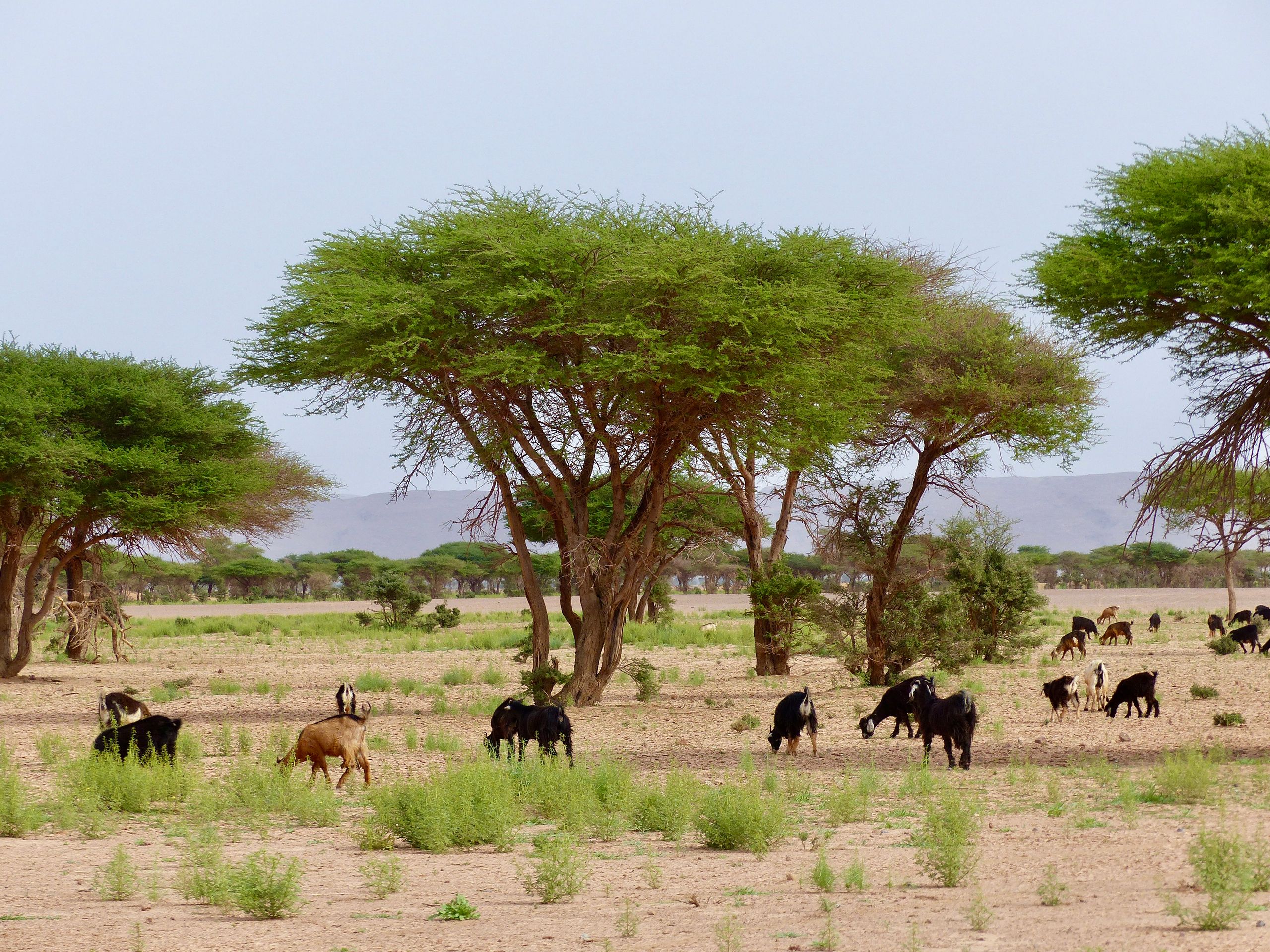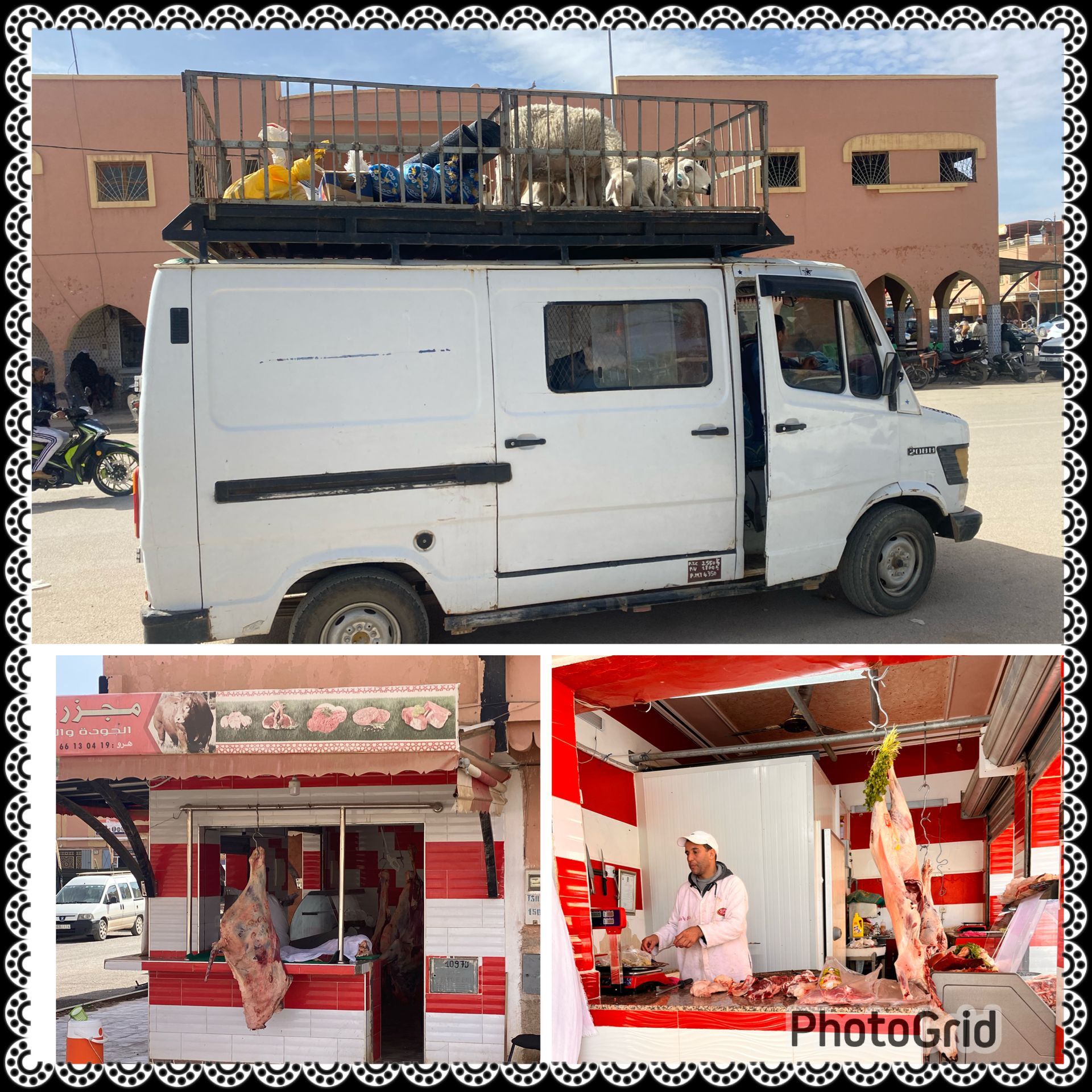 The next morning we continue westward. In a small town, we want to buy meat. It is easy in Morocco to recognize the numerous butcher shops: they are painted in striking red and white on the outside, like a lighthouse. Usually, huge pieces of meat hang out in the open before the shop. However, the butcher shops always give a relatively hygienic impression, and so far we have only received good meat. However, meat is expensive by Moroccan standards, about €10 per kilo. The treatment of animals in general by Moroccans is not for the delicate European soul. Something like 'animal welfare' is completely unknown here.