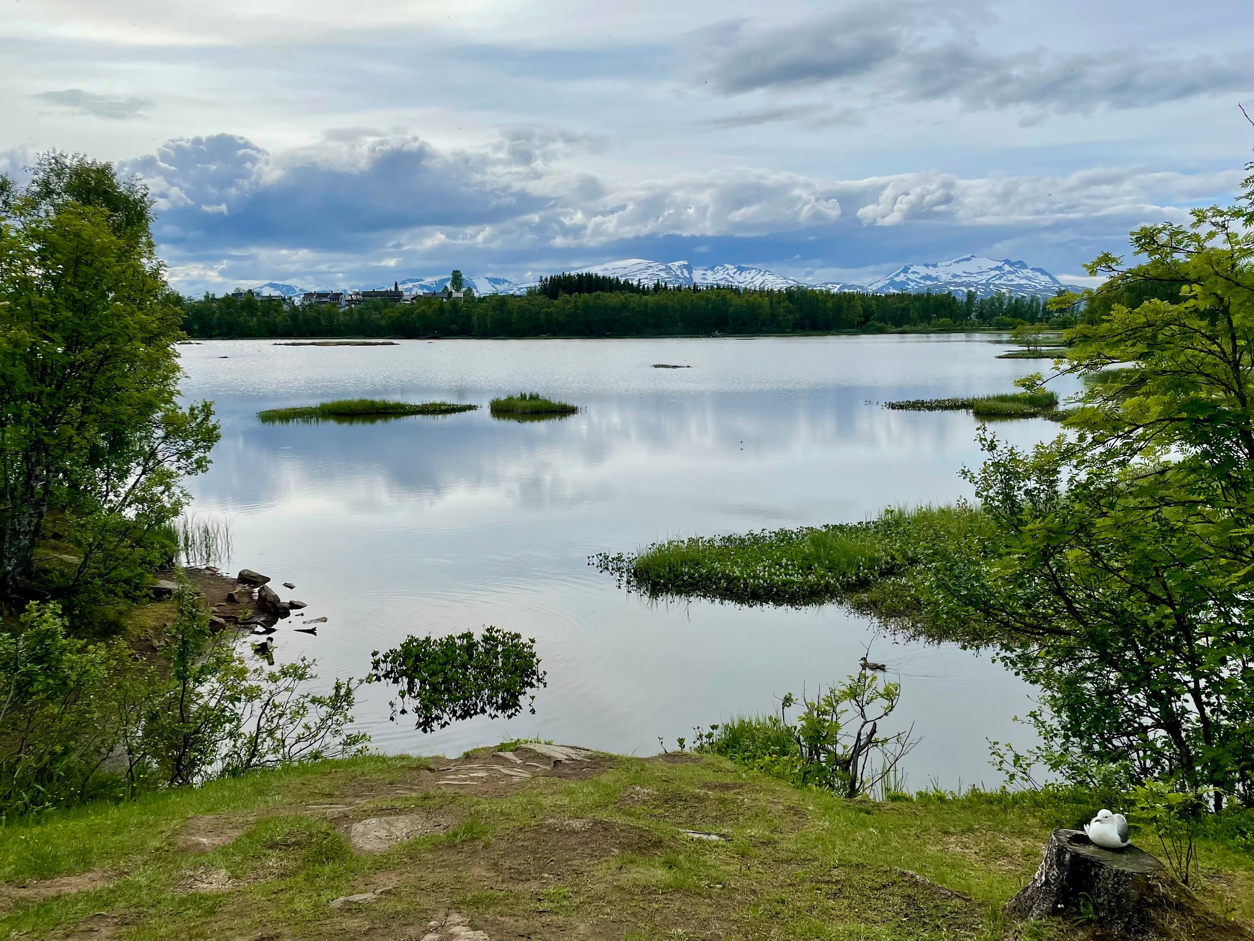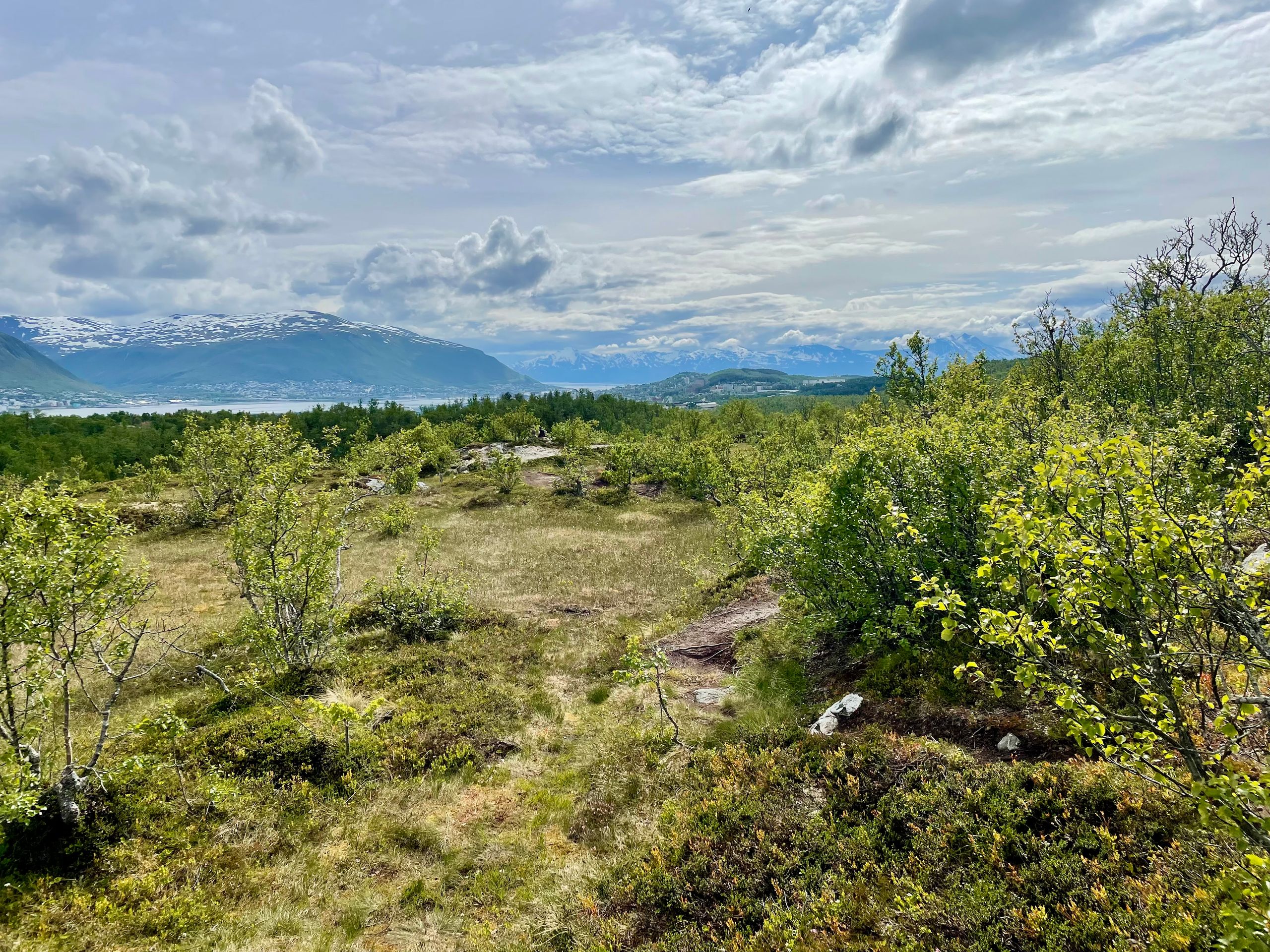 The weather forecast for today was mixed, so I decided to take a short bike ride to Tromsø, leave my bike there, and walk across the island. The island was mostly developed along the edges, so right in the middle (on the ridge) there is a lot of nature. The Norwegians are really into sports. There are many trail runners and mountain bikers of all ages going at a remarkable pace. It was a truly beautiful, relaxed hike where the sun even peeked out occasionally.