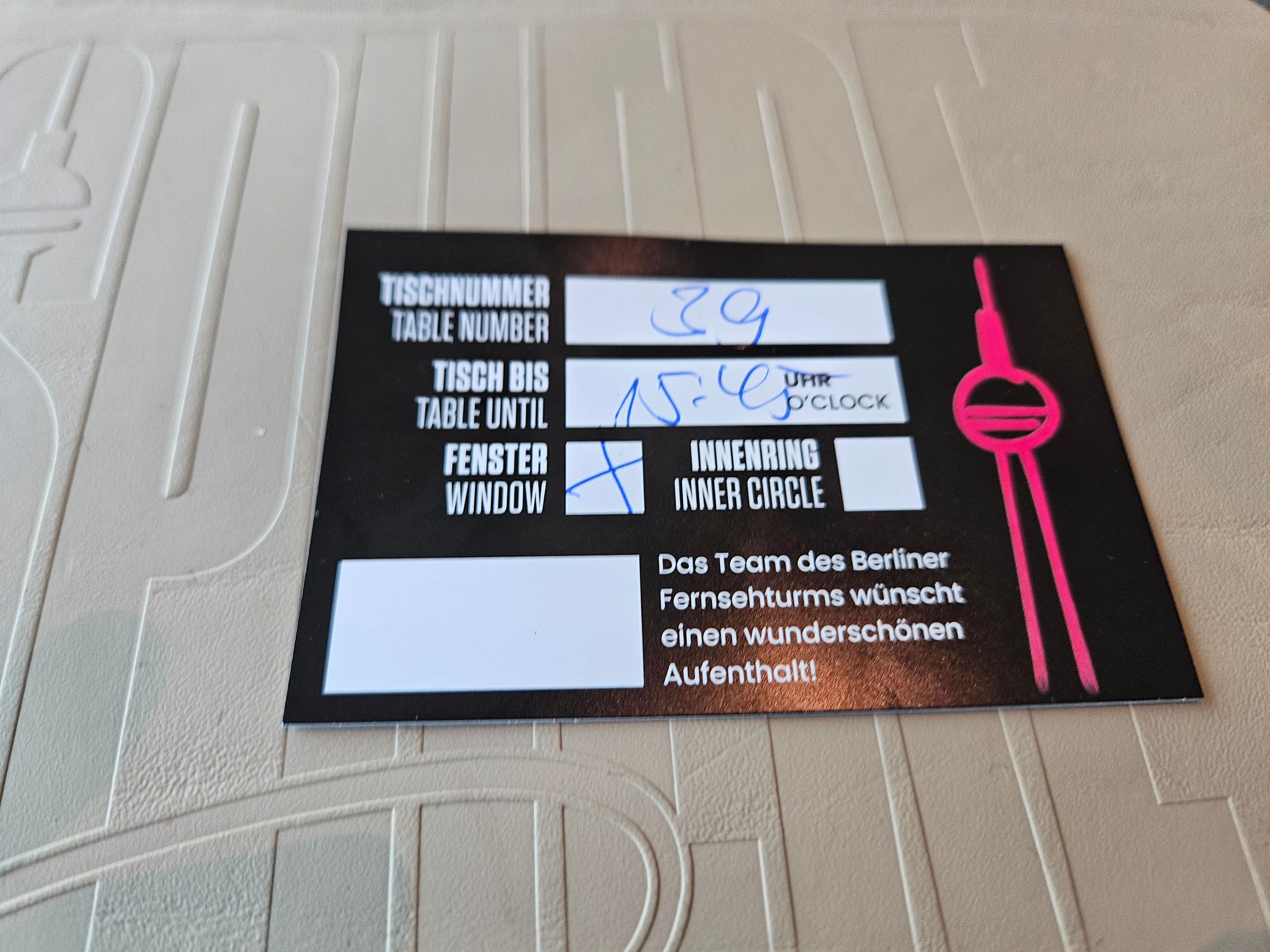 Now it was our turn. The entry process went smoothly. The bag check was completed quickly. Upon arrival, we were greeted more formally than warmly. We were handed a card with our table number. It also indicated when our stay would end. After a maximum of 90 minutes, you must leave.