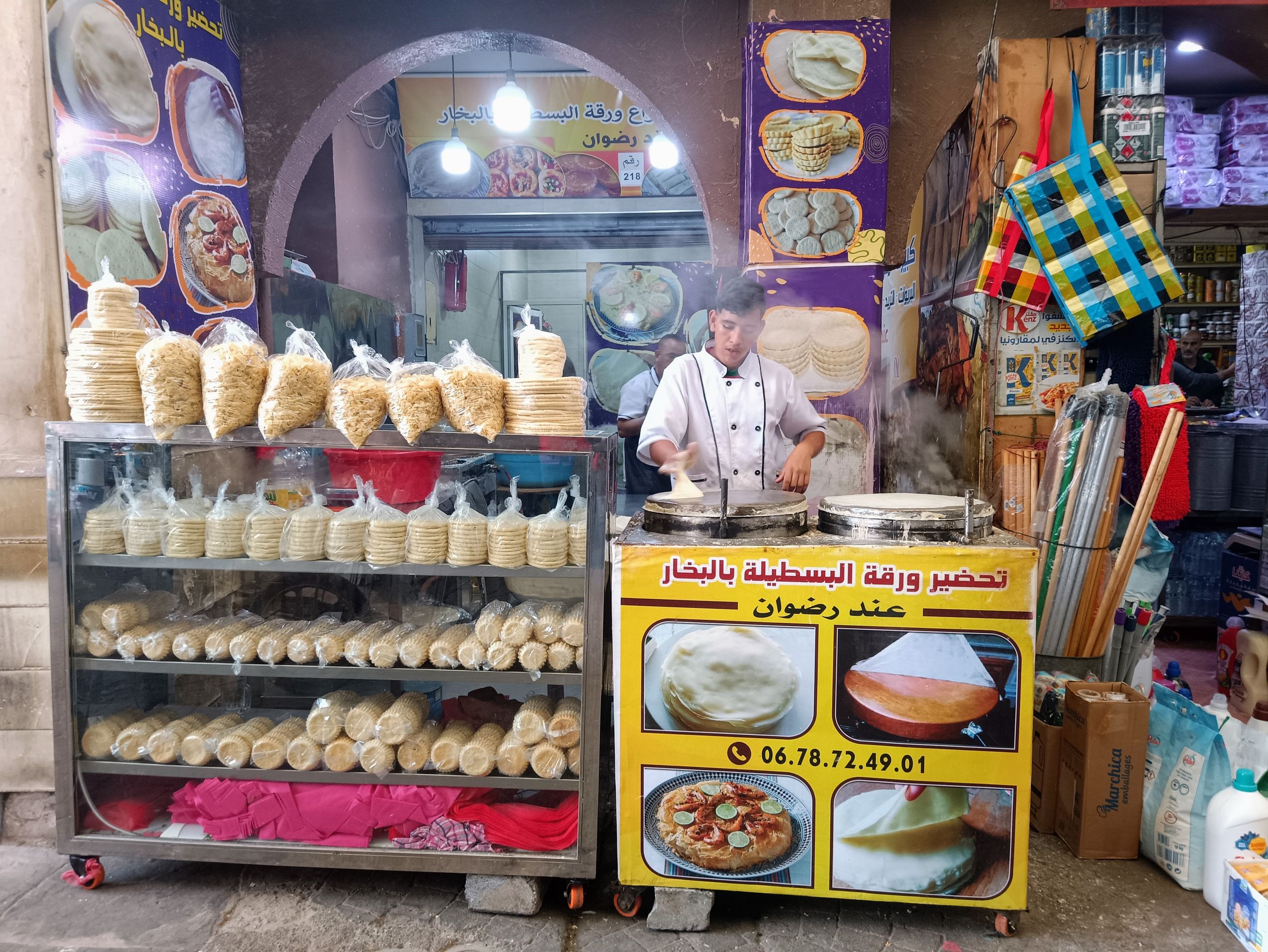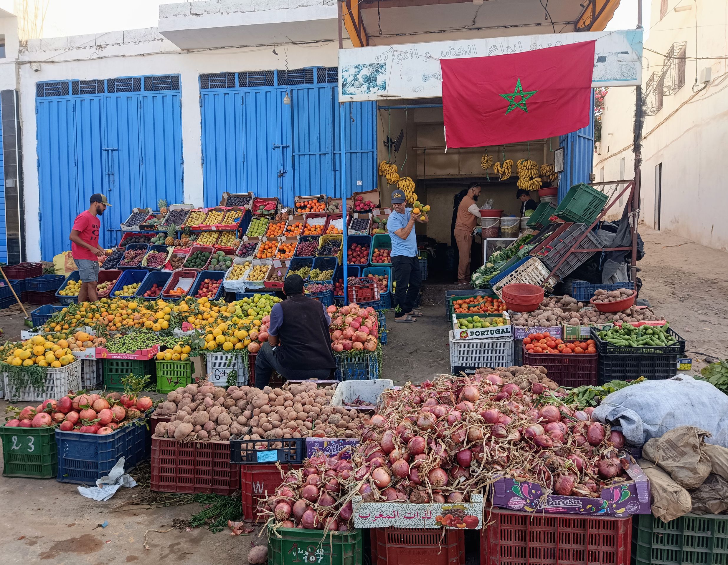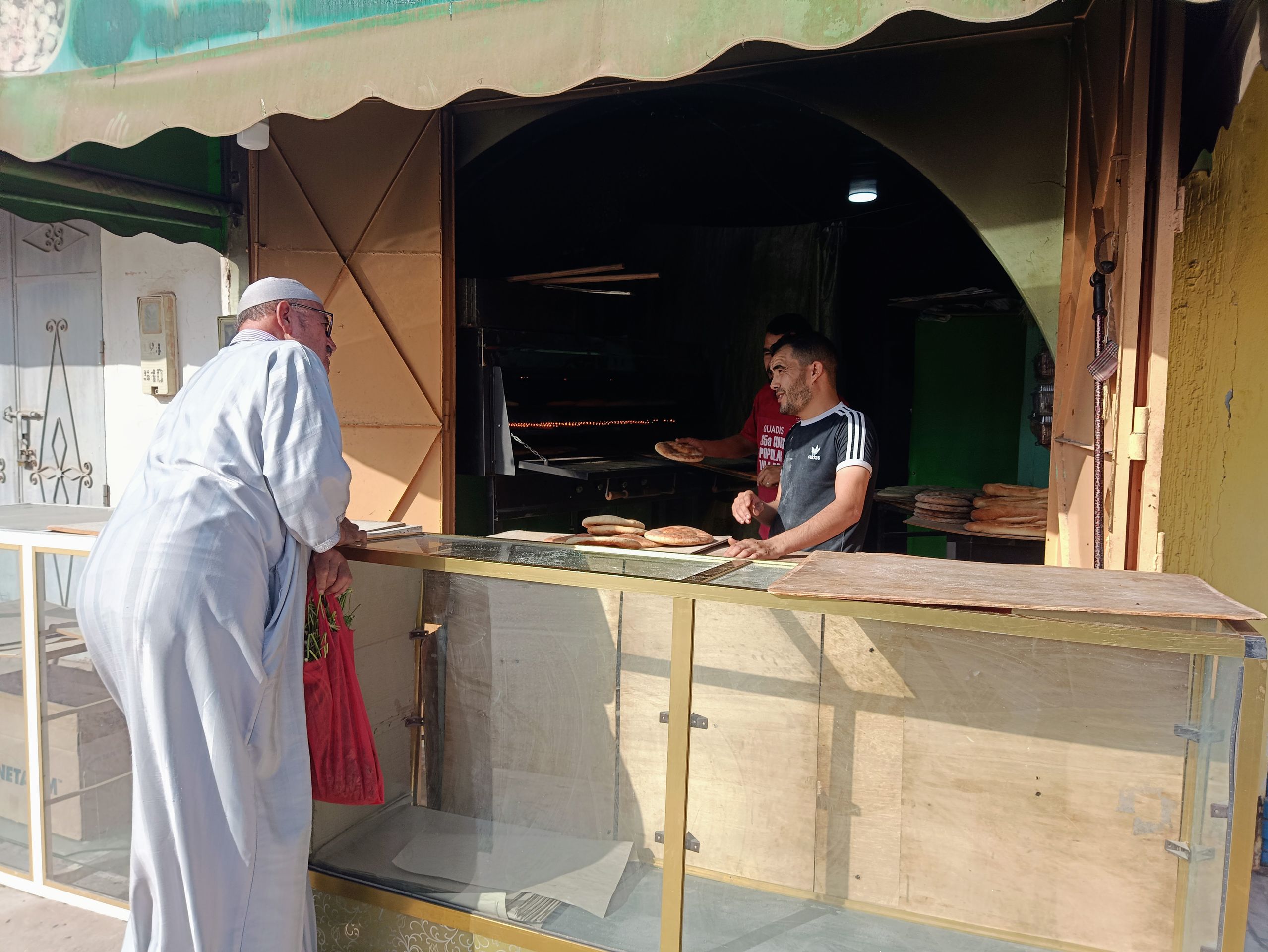 „Ist das dein Mittagessen?“, fragt ein Tourist den Surflehrer vor dem Straßenladen in Taghazout.