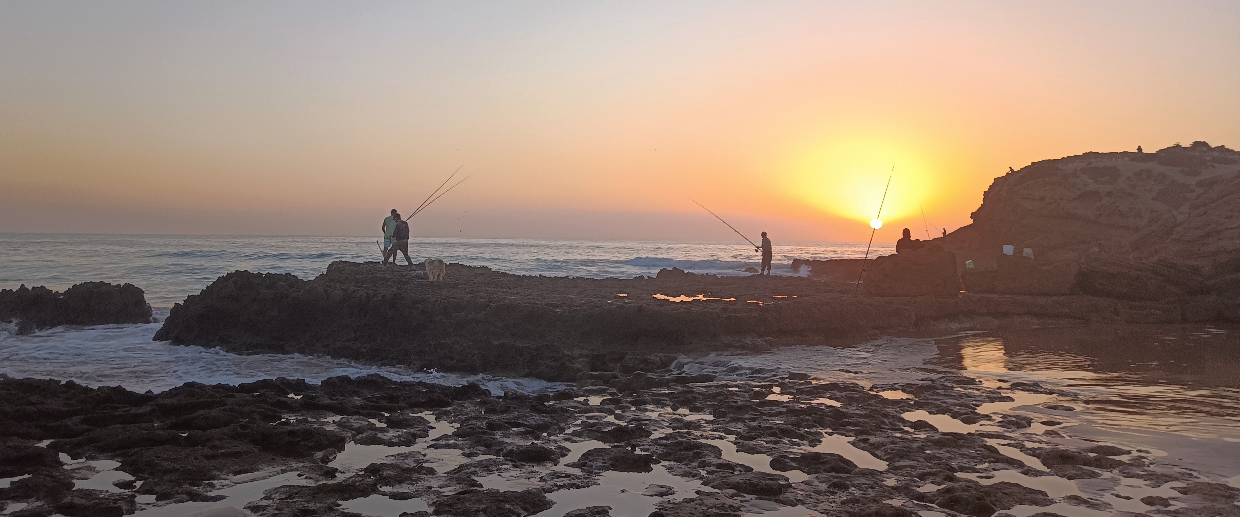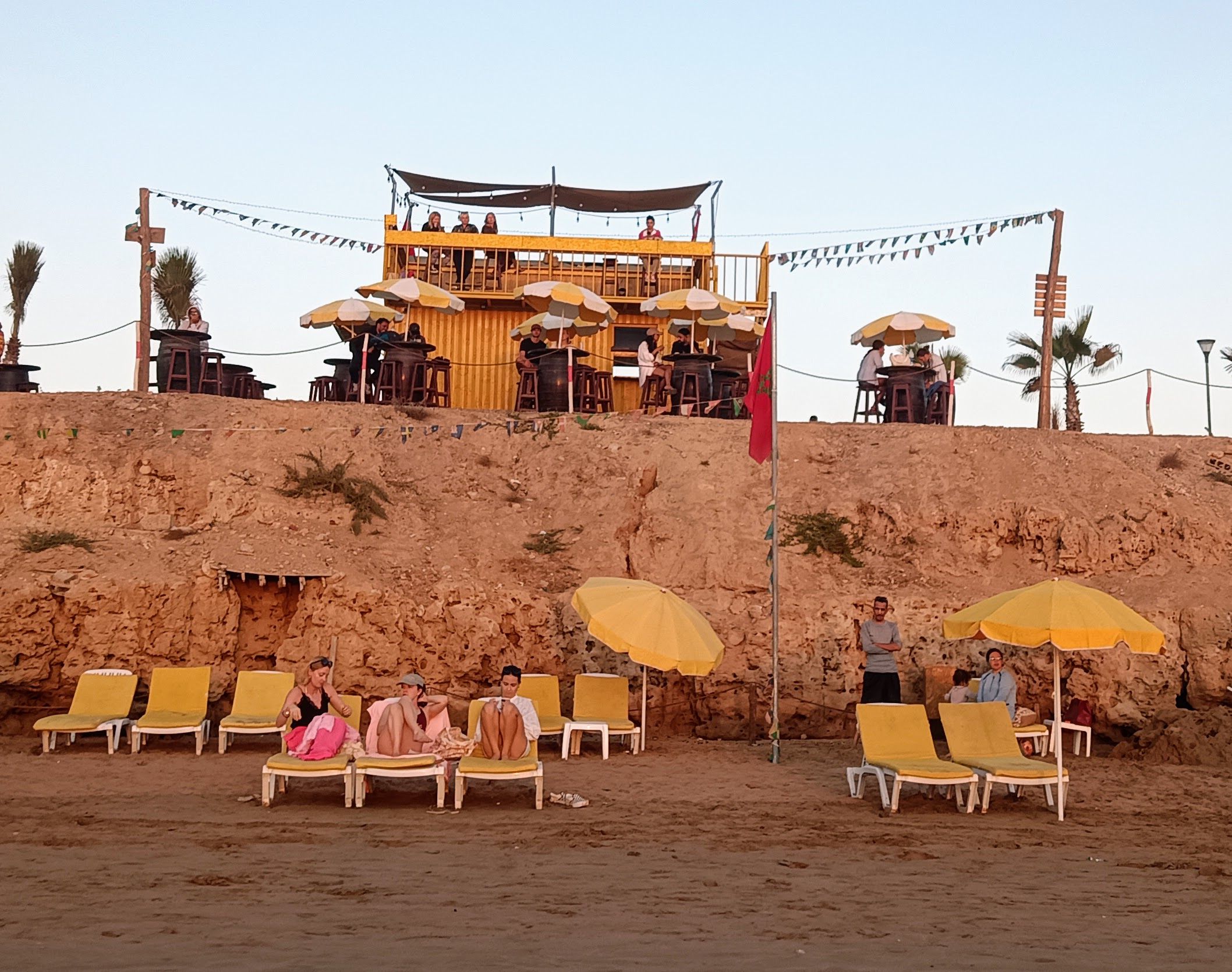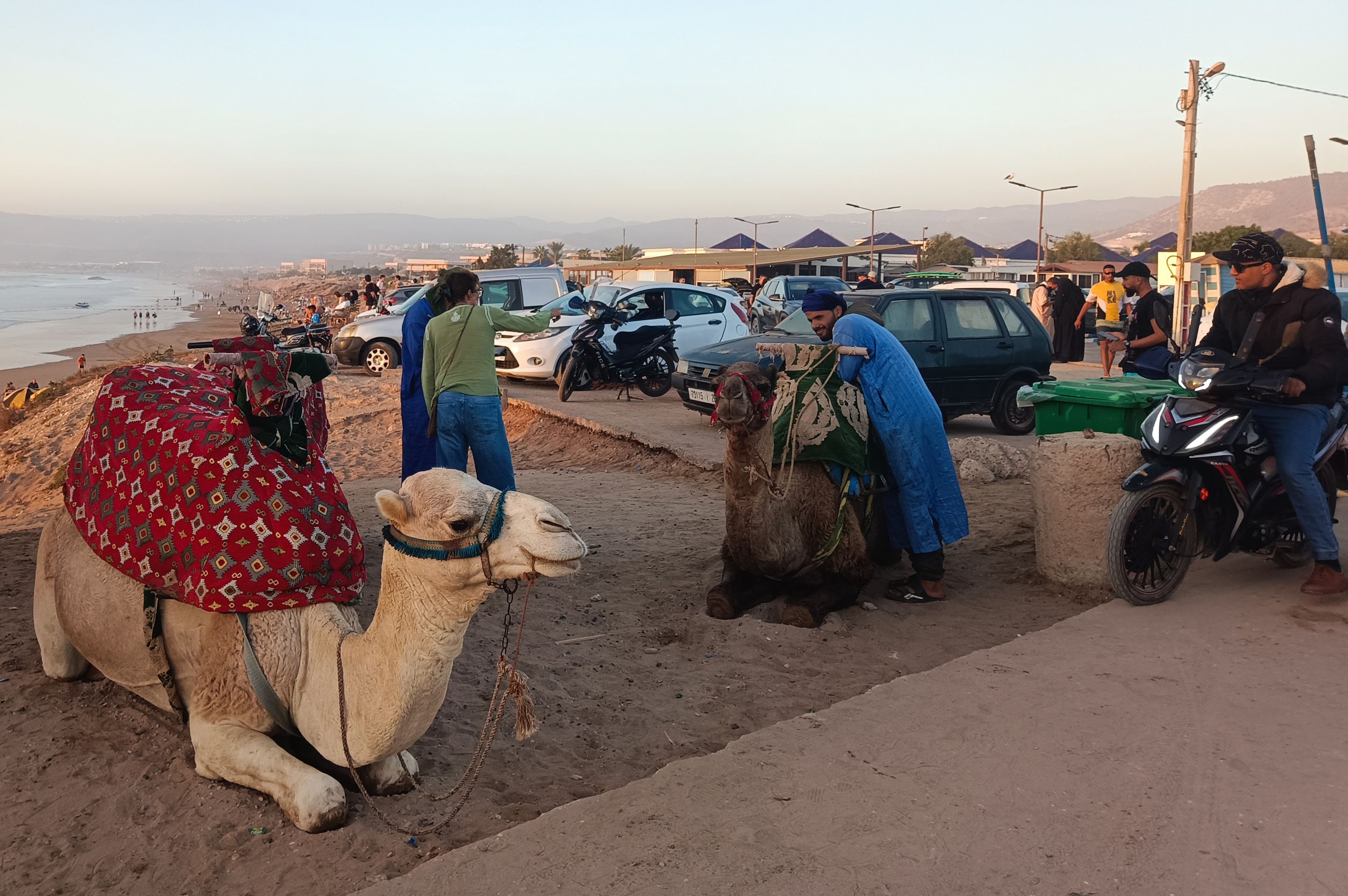 Es ist Nationalfeiertag. Schulkinder laufen mit Flagge durch die Stadt. Familien picknicken und kochen Tajine am Strand. Surferinnen im Bikini. Muslimische Frauen in langen Badekleidern. Beten am Strand. Diese Bilder wirken harmonisch. Frage mich, wie die nackte Haut auf Einheimische wirkt. Vielleicht alltäglich, weil hier schon seit den siebzigern gesurft wird.