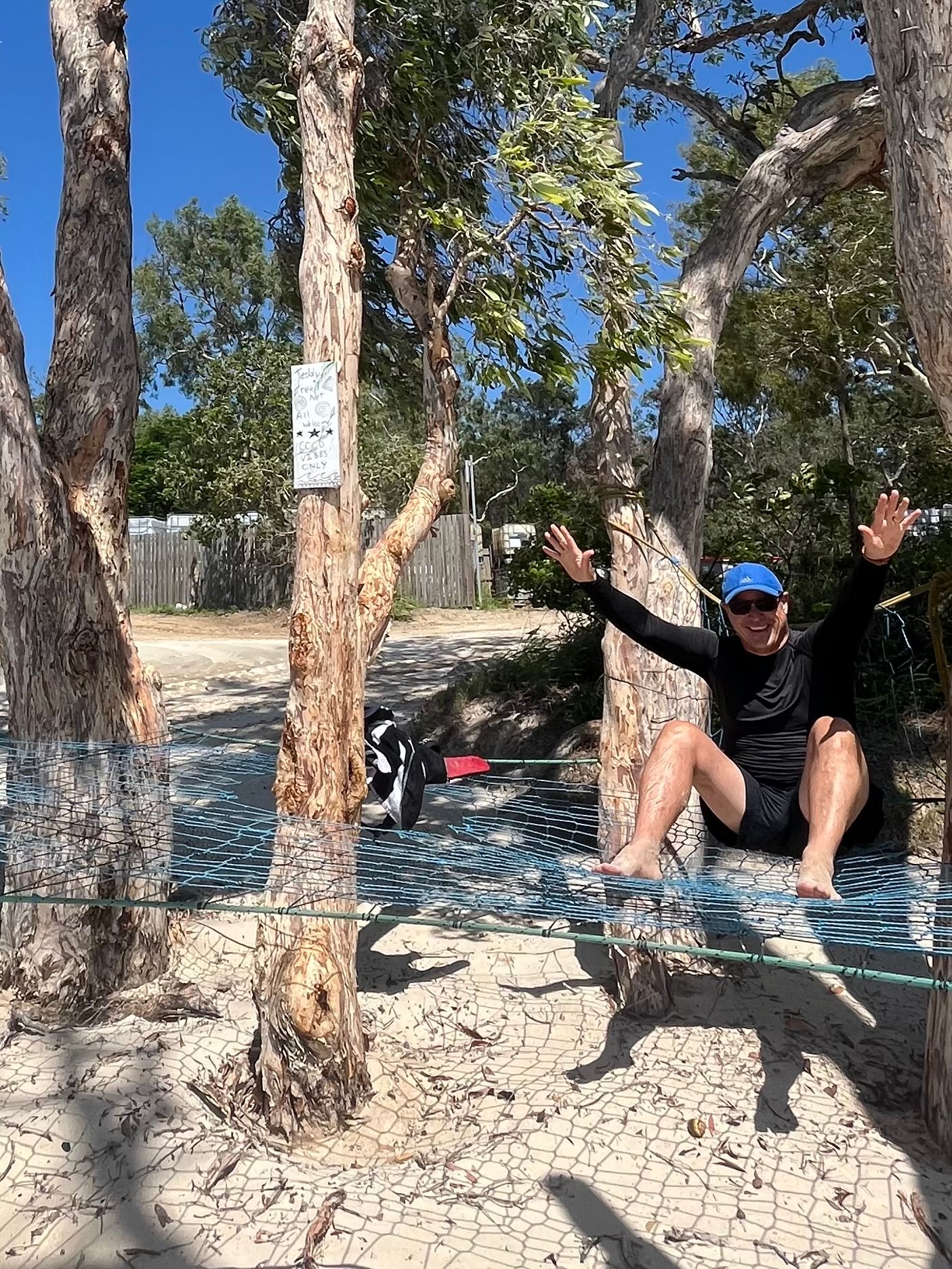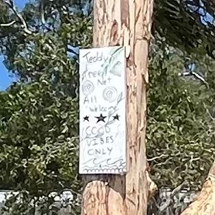 Ich entdeckte einen Platz mit dem Schild „Cool Vibes Only“.