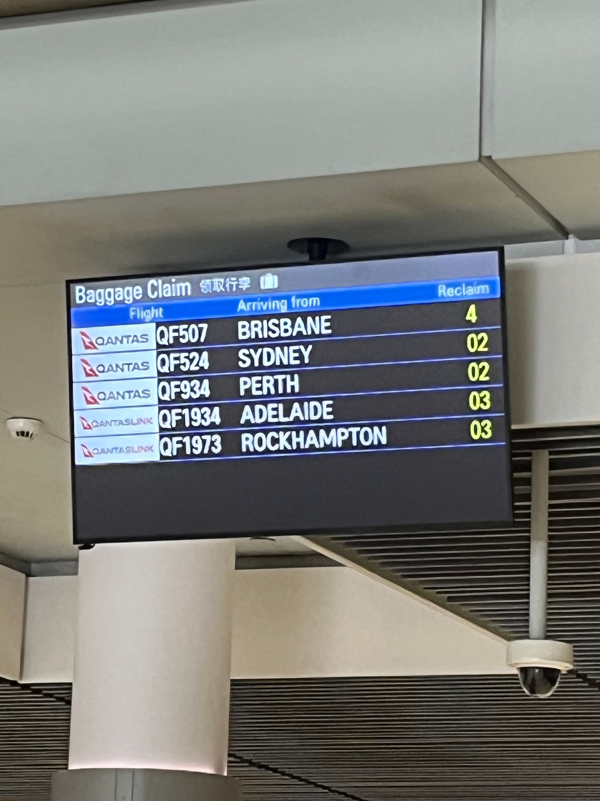Die anschließende Dreiviertelstunde Busfahrt habe ich dann halb feucht überstanden. Am Flughafen fühlte ich mich immer noch schmuddelig, habe aber zumindest eine Kleinigkeit gegessen. Im Flugzeug bin ich, wie meine Frau schon ahnt, sofort eingeschlafen. Es war nur eine Stunde Flugzeit nach Brisbane, pünktlich zur Landung war ich wieder wach.