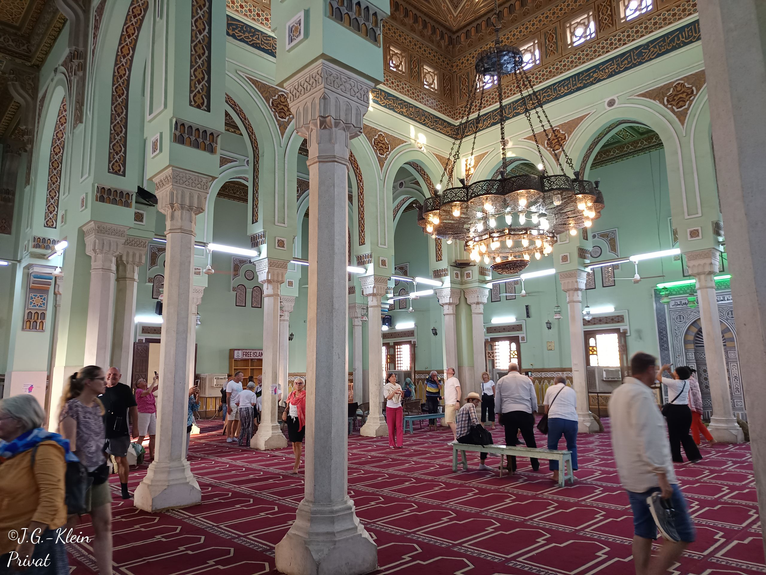 Nun besuchen wir die El Tabia Moschee. Im Innenraum erklärte unser Reiseleiter vieles zur Religion, dem Ablauf der Gebet und beantwortete geduldig unsere Fragen.