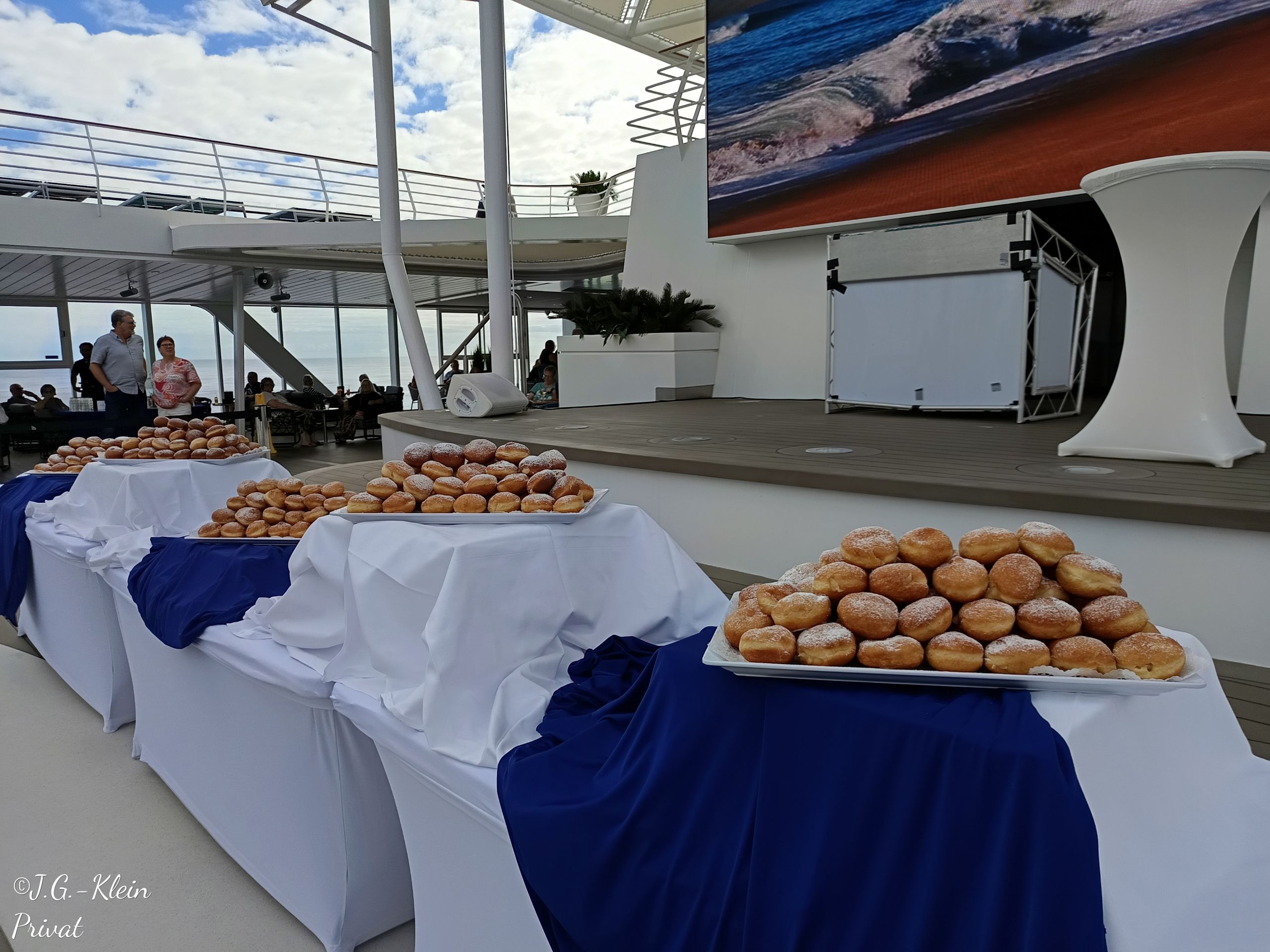 Zur Mittagszeit verschwanden die Wolken und mit 22°C angenehm auf Deck 12 und 14.