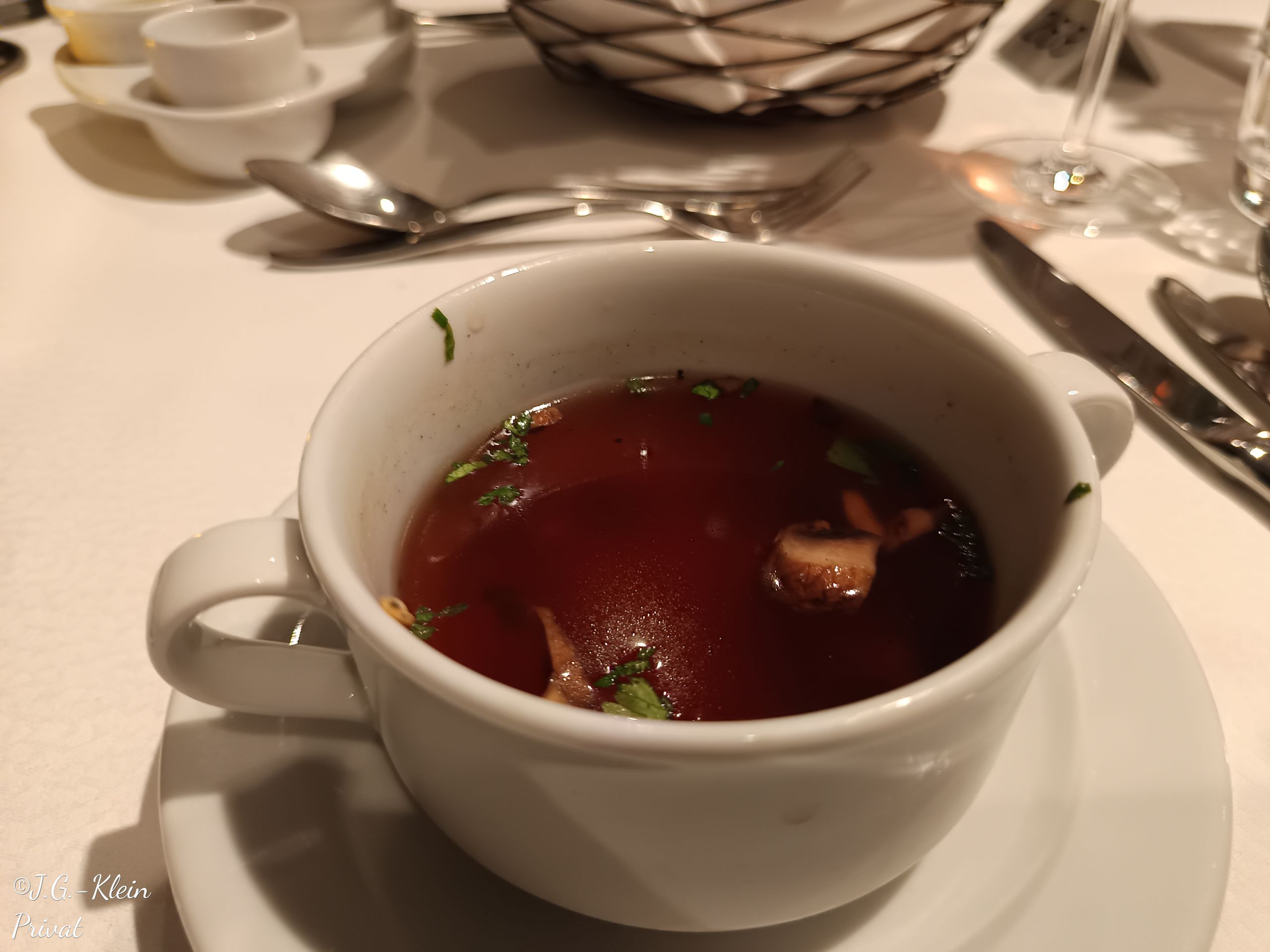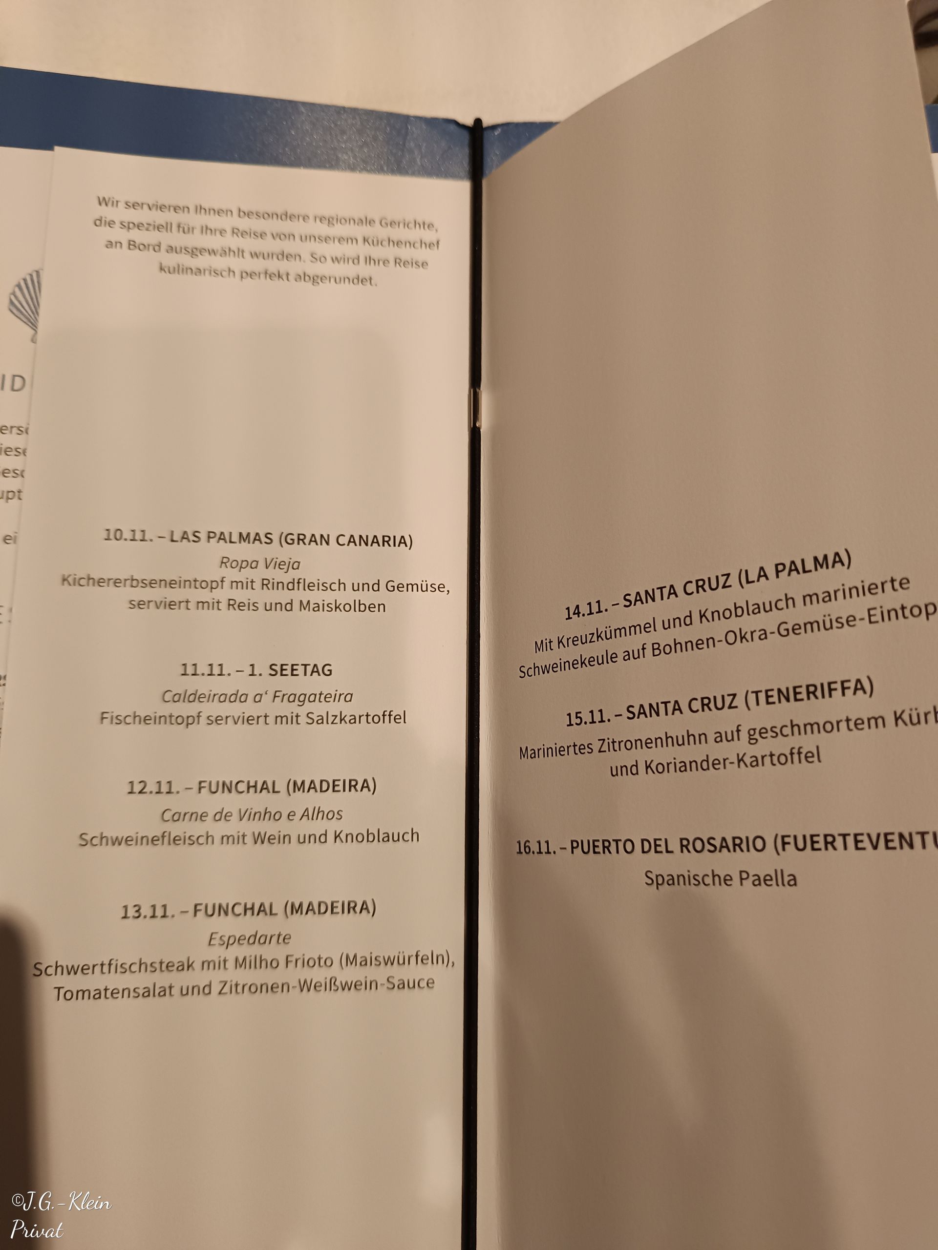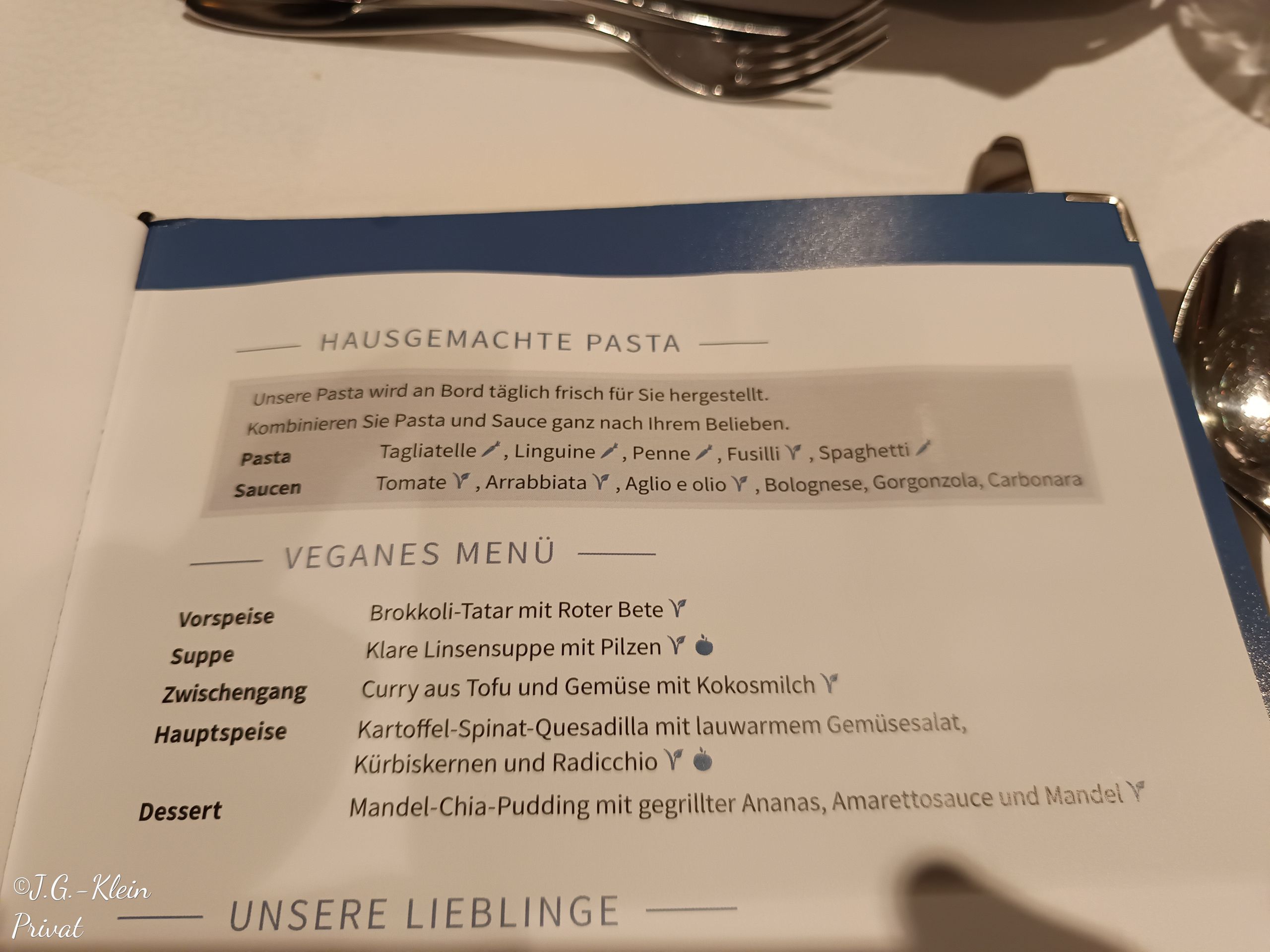Für das Abendessen haben wir uns für das Atlantik Klassik Restaurant auf Deck 3 entschieden. Verschiedene Menüs stehen zur Auswahl und aus allem kann man sein persönliches Menü zusammenstellen. Dies ist heute meins.