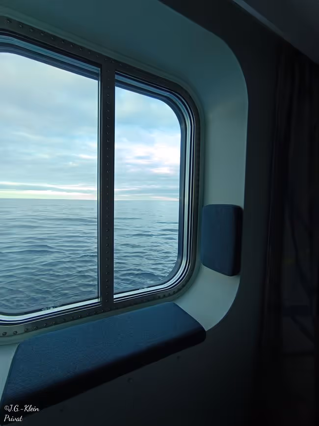 Nach einer angenehmen Nacht steht heute der Seetag an. Der einzige dieser Reise. Durch die Zeitverschiebung von 1 Stunde sind wir doch früher wach.