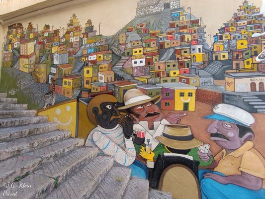 Auf dem Weg durch die Gassen findet man schöne Treppen, Geschäfte, Malereien und mehr.