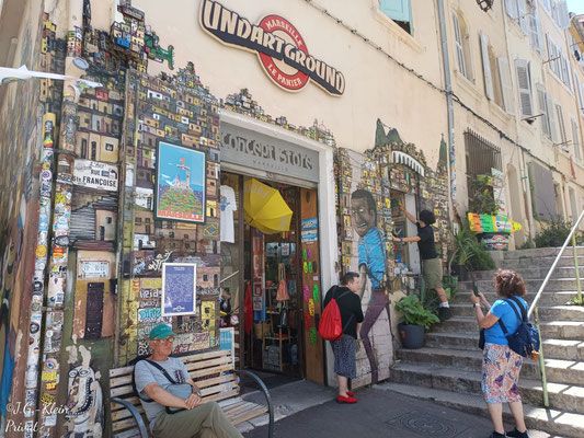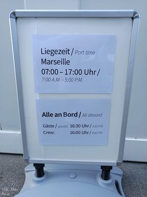 Wir sind heute zum 2. Mal in diesem Jahr in Marseille. Vom Liegeplatz geht es wieder zur Bushaltestelle des kostenlosen Hafenshuttle. Einfach der Markierung am Boden folgen. Dieser fährt ab 09:00 Uhr ca. alle 35min nach Joliette. Wenige Meter von der Metro Station entfernt. Wir gehen aber an der Kathedrale und dem Museum vorbei zum alten Hafen. Am Quai du Port findet man die Startstationen des Touristenzuges "Les Petits Trains de Marseille" und des Hop on Hop off. Wir entscheiden uns heute für den Hop on Hop off.