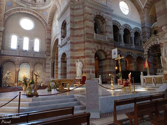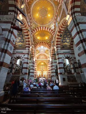 An der Haltestelle Basilika Notre-Dame de la Garde steigen wir aus um uns in Ruhe die Basilika von Innen und Aussen anzusehen und den Blick über die Stadt und das Meer zu genießen.
