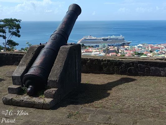 Morne Bruce Garrision. Von hier hat man einen tollen Blick über die Stadt.