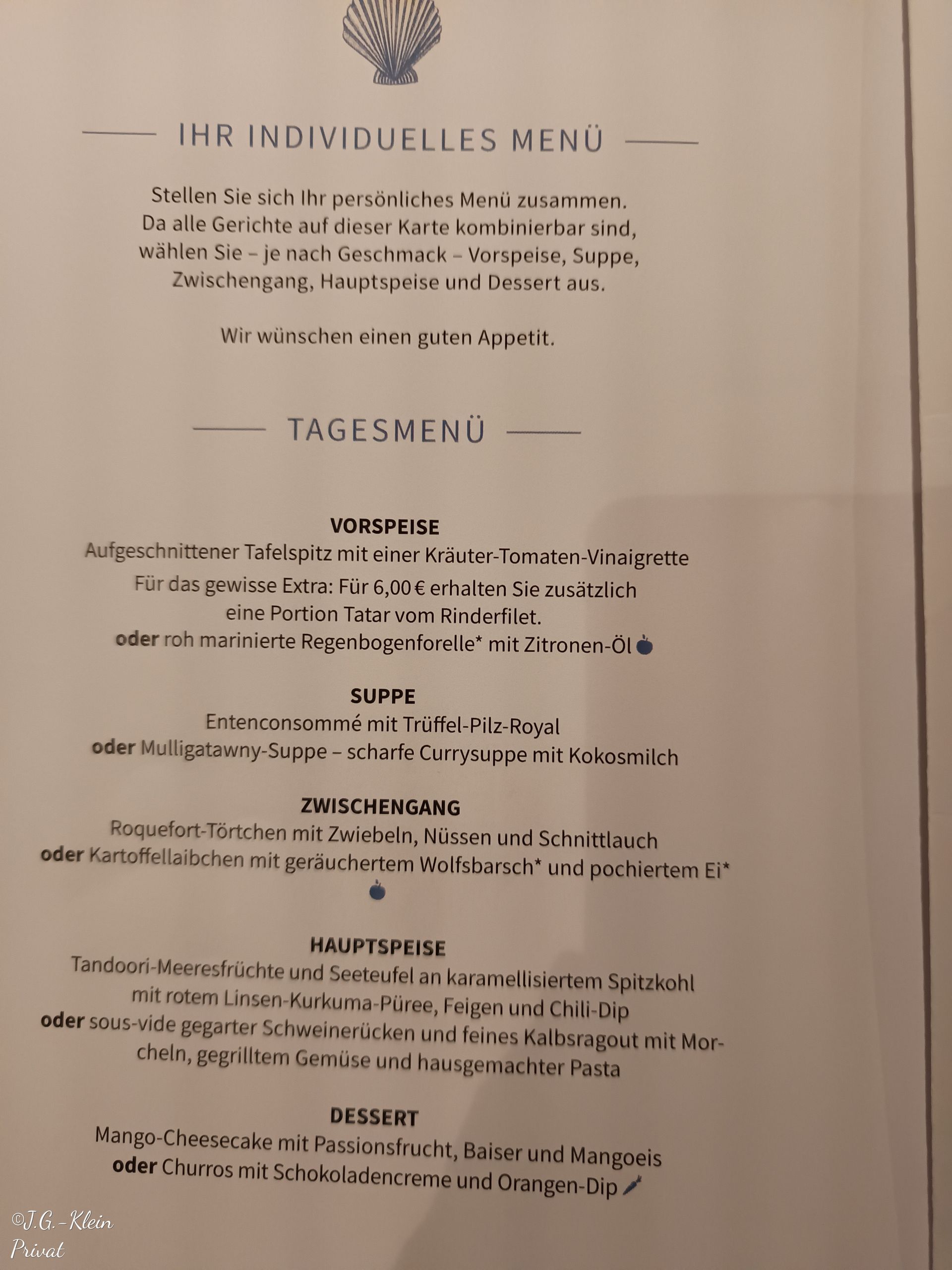 Nun bleibt noch unser heutiges Abendessen.